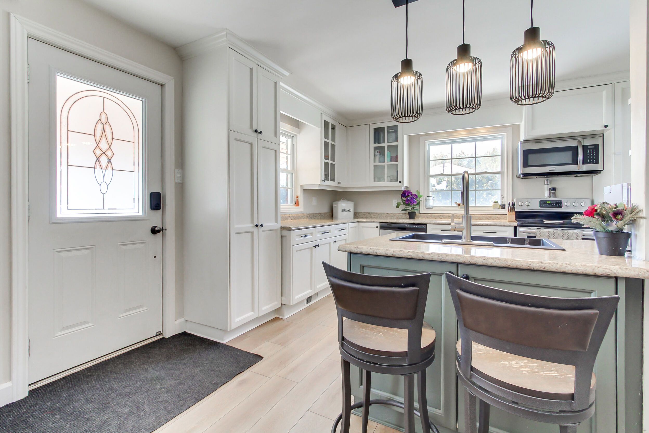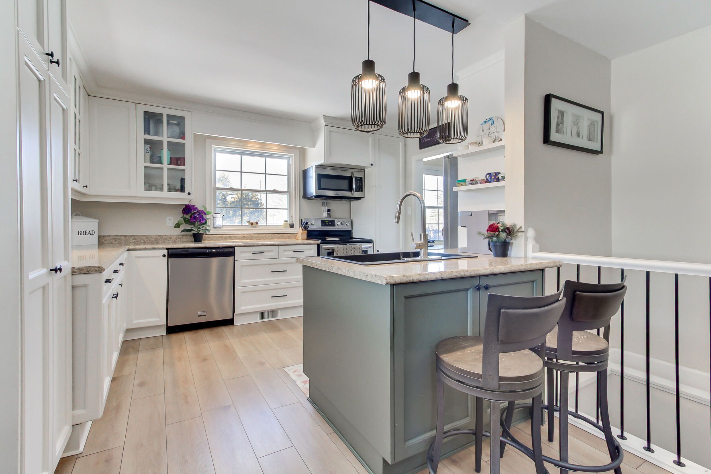 • Renovated kitchen with generous counter space and dining area walkout.