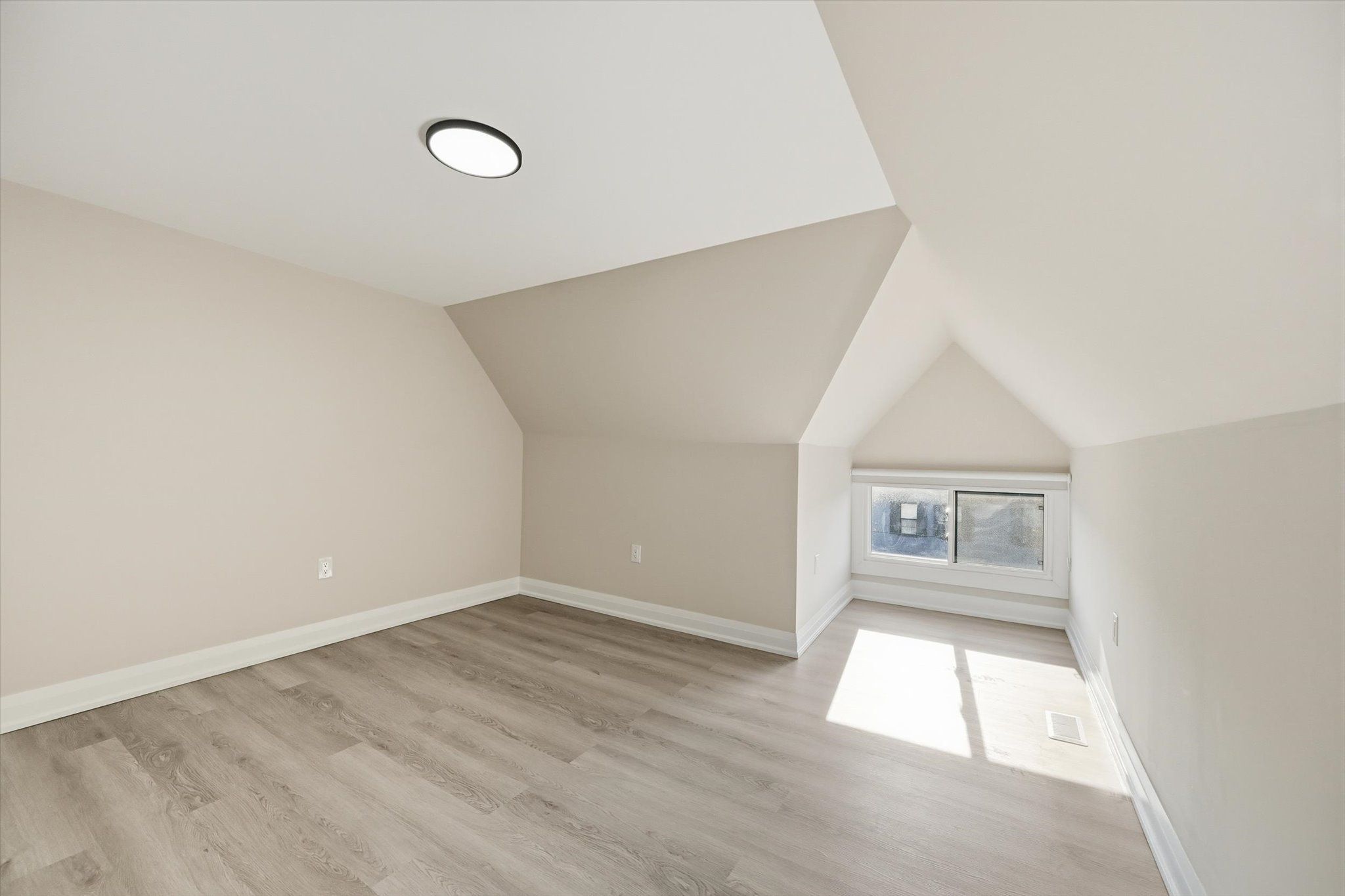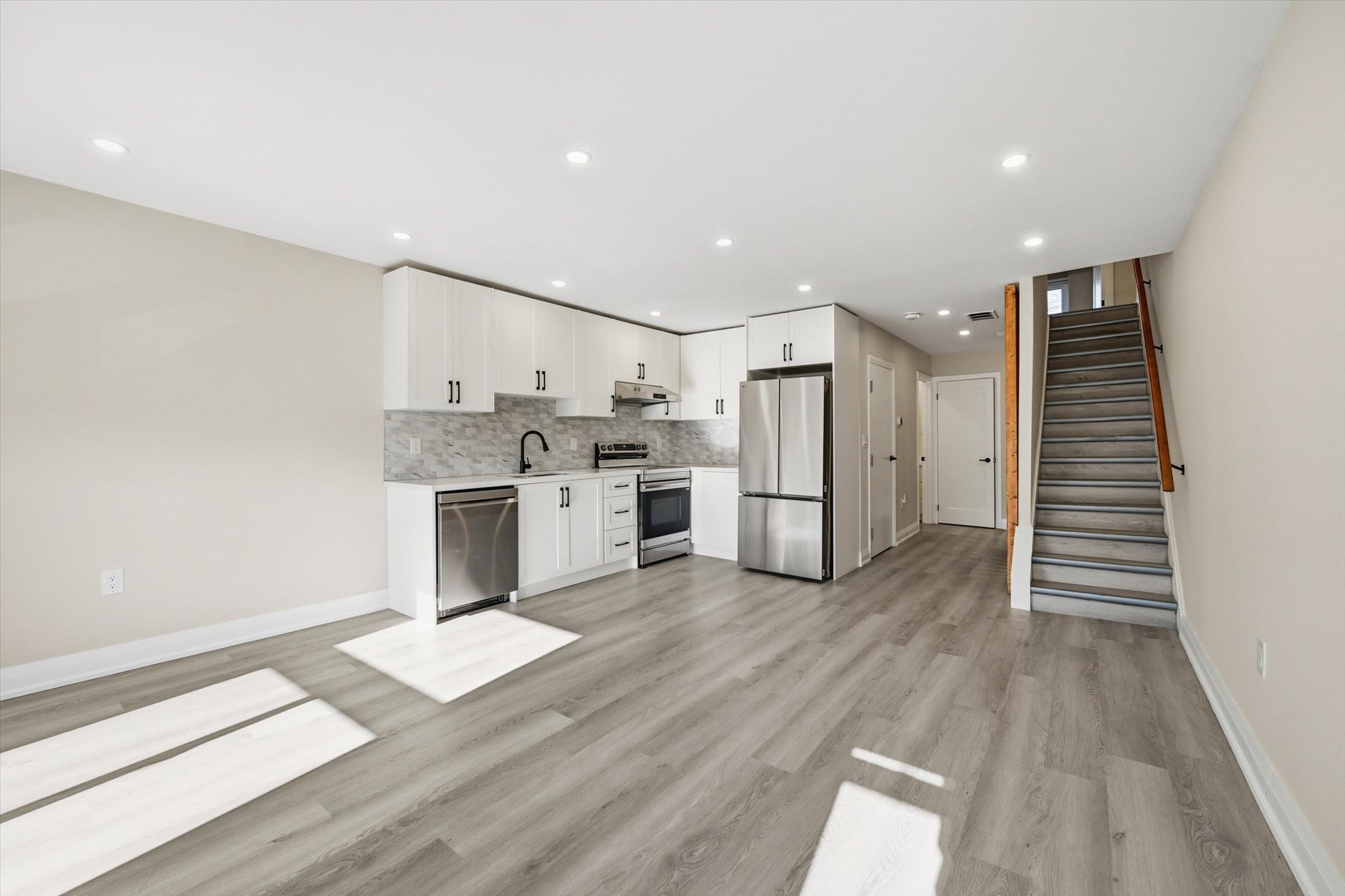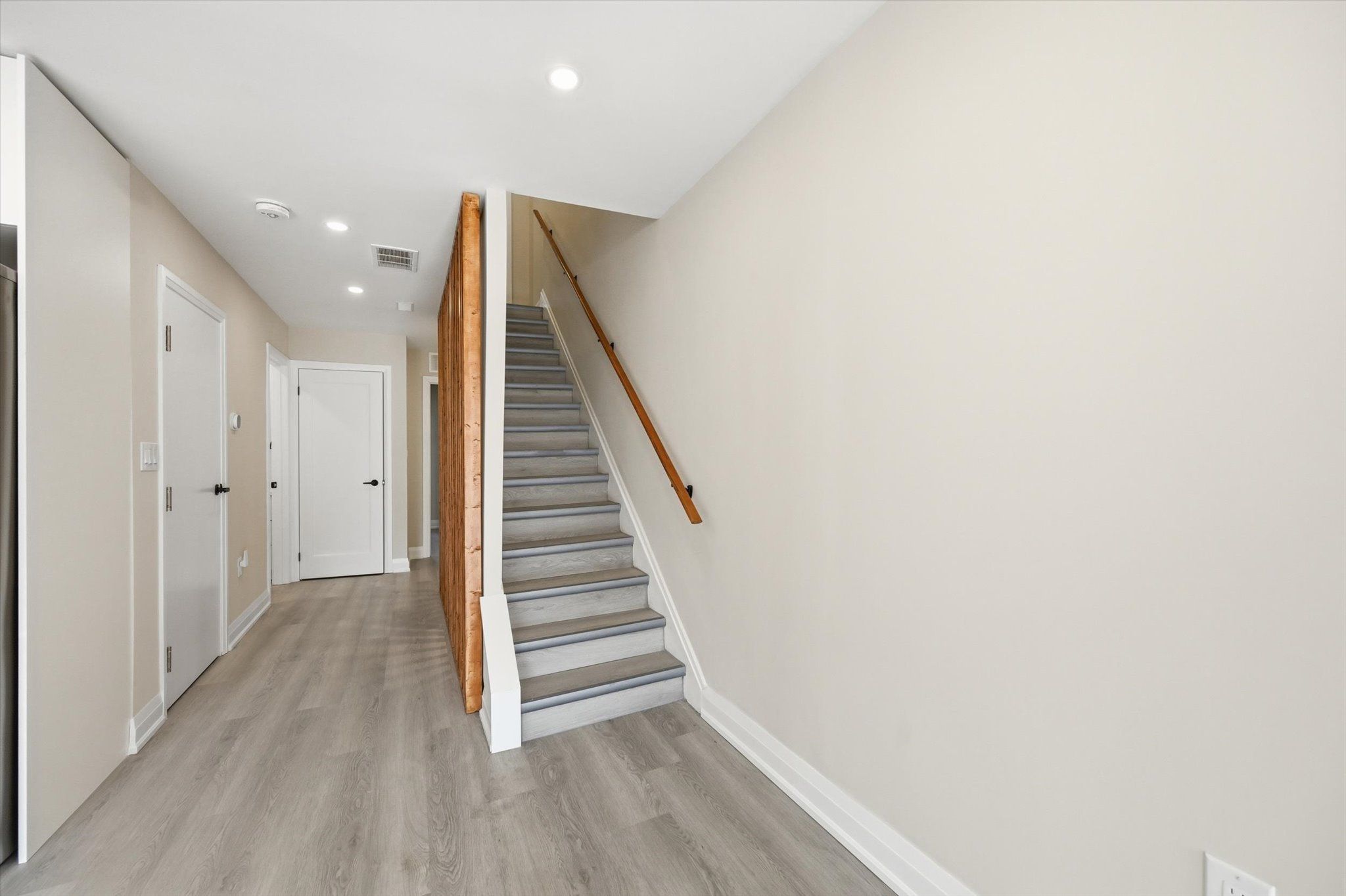 Brand new, never lived in upper unit spanning the second and third floors, offering a rare and very spacious two level layout. This fully renovated legal unit features a custom kitchen with quartz countertops, stainless steel appliances, dishwasher, new fixtures, and lighting throughout. The open concept main level is ideal for everyday living, with bedrooms privately located on the upper floor. Additional features include bright tiled bathrooms, in suite laundry, an efficient furnace and air conditioning system, a separate hydro meter, a private entrance, and reserved rear parking. Ideally located in hamilton's gibson neighbourhood, close to the go station, hamilton general hospital, shopping, downtown amenities, and major commuter routes including the qew, highway 403, and the red hill valley parkway. Tenant pays hydro and 50% gas/water. Some photos have been virtually staged.