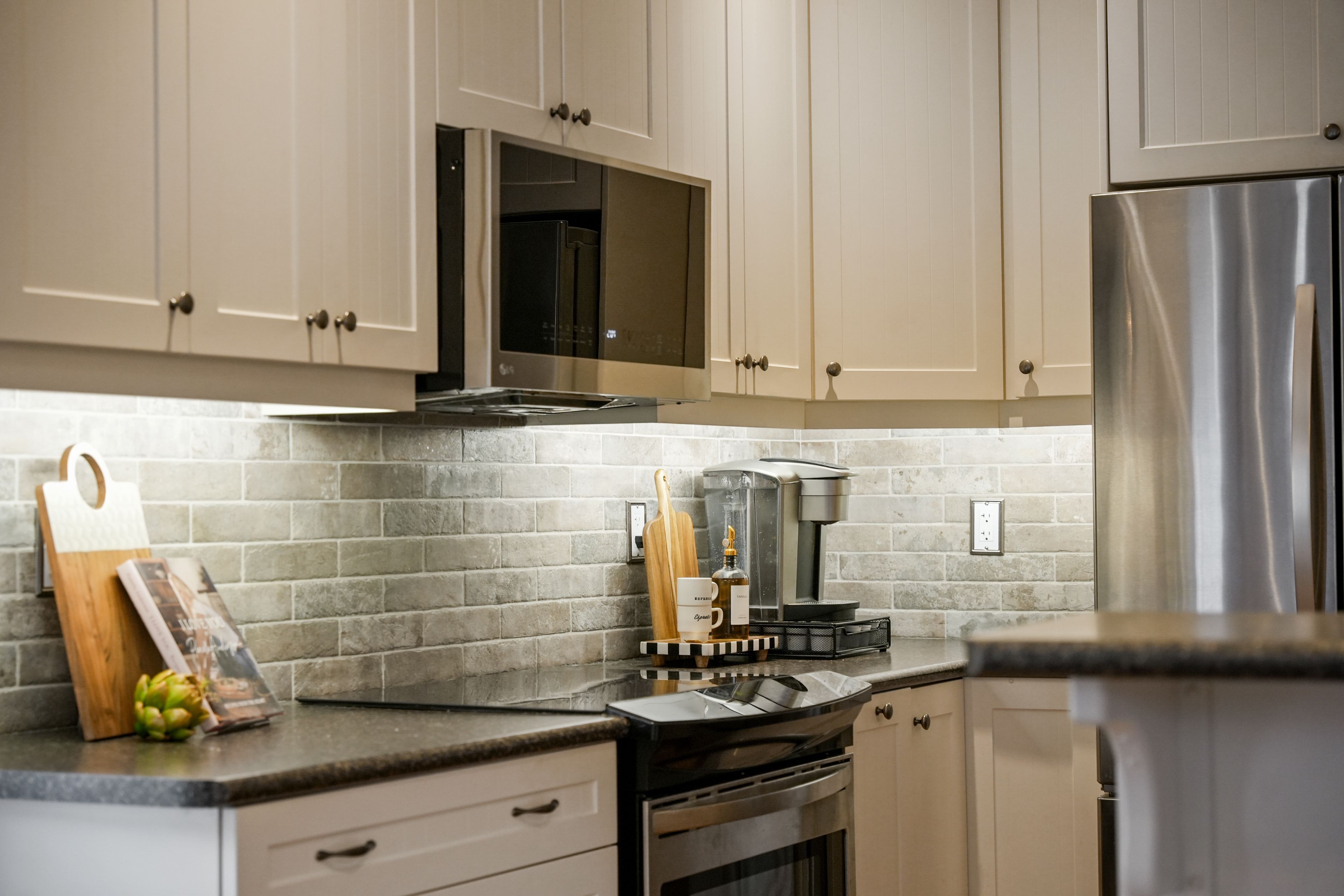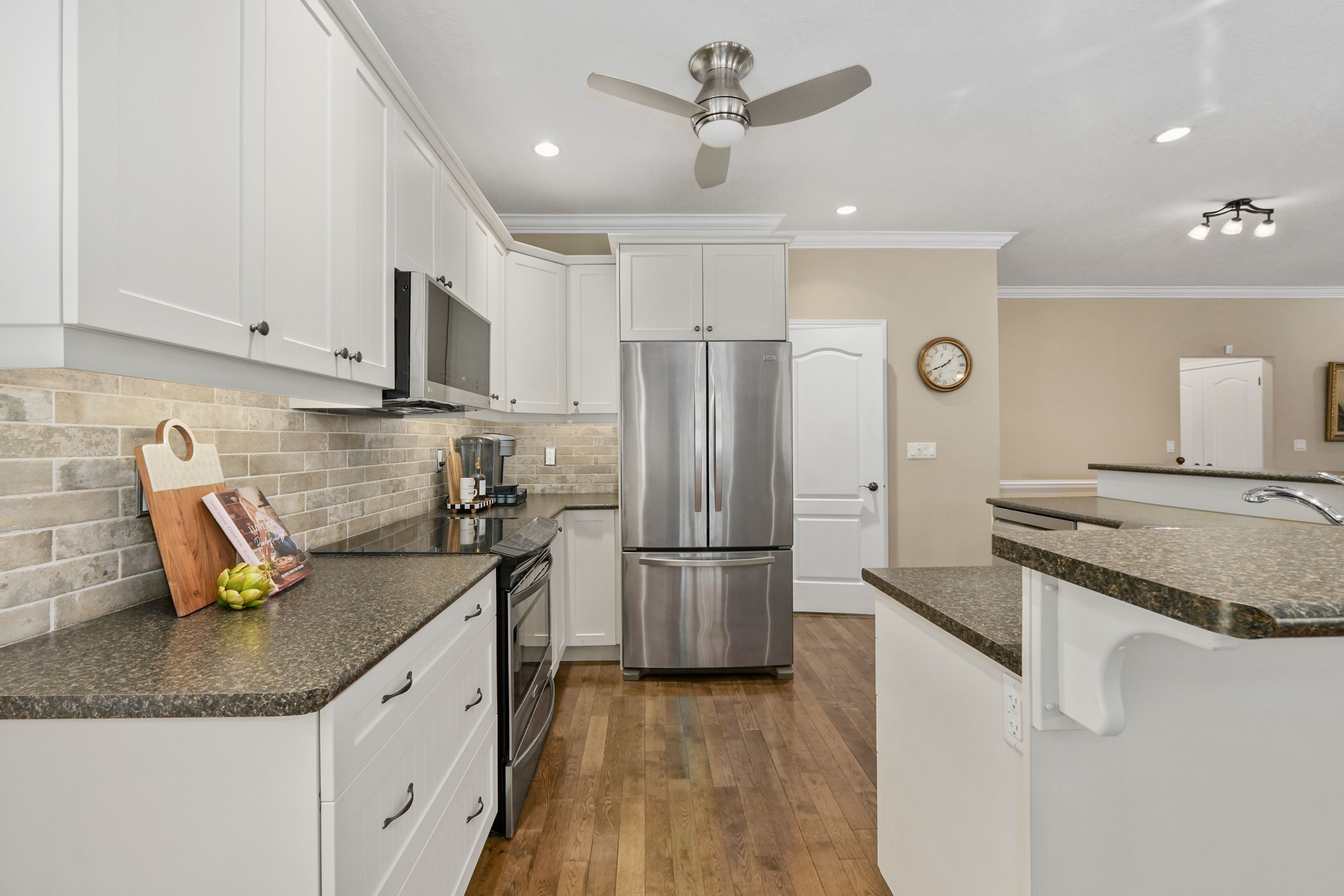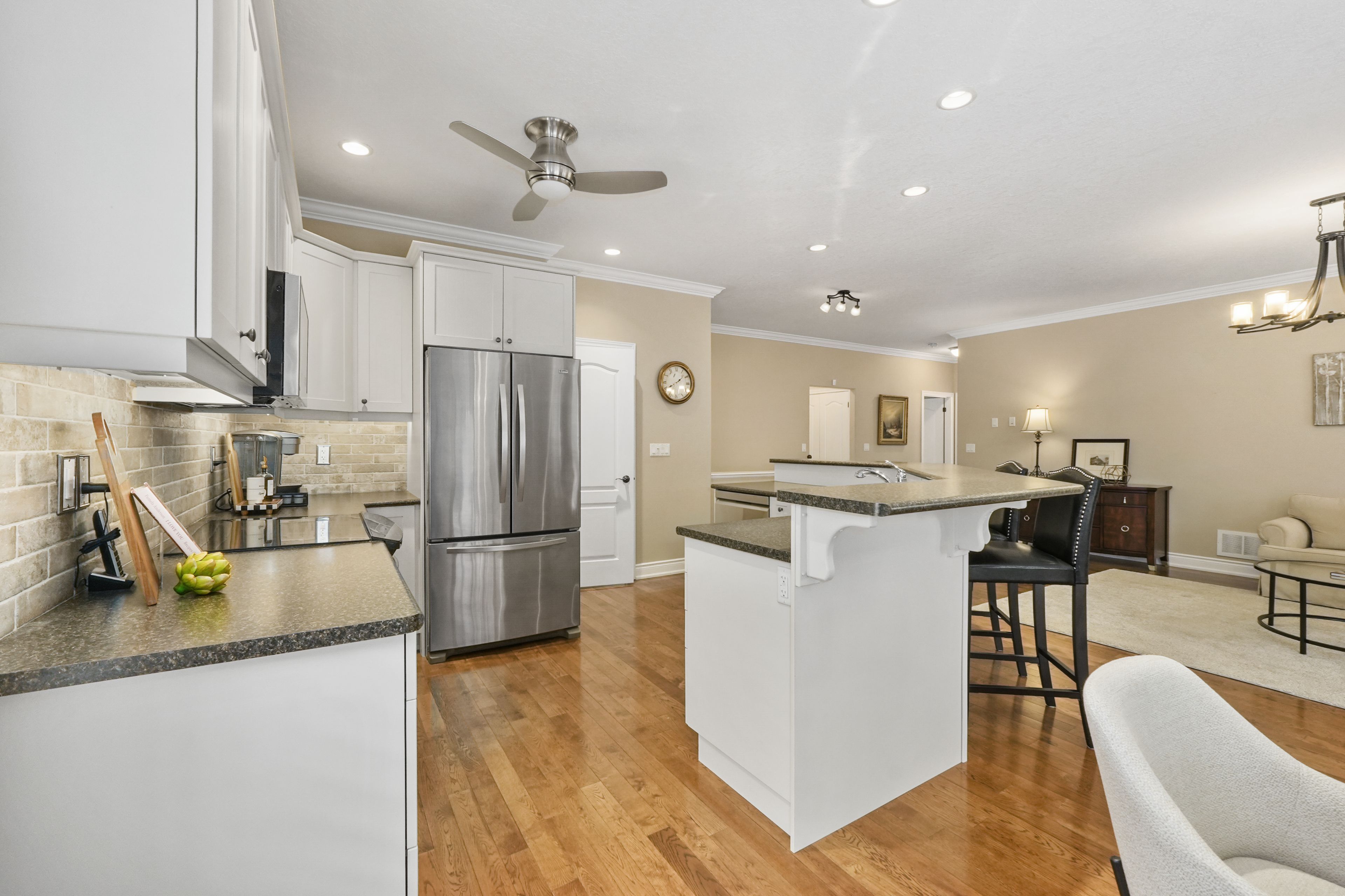 • Well-designed kitchen with stainless steel appliances and a large island.