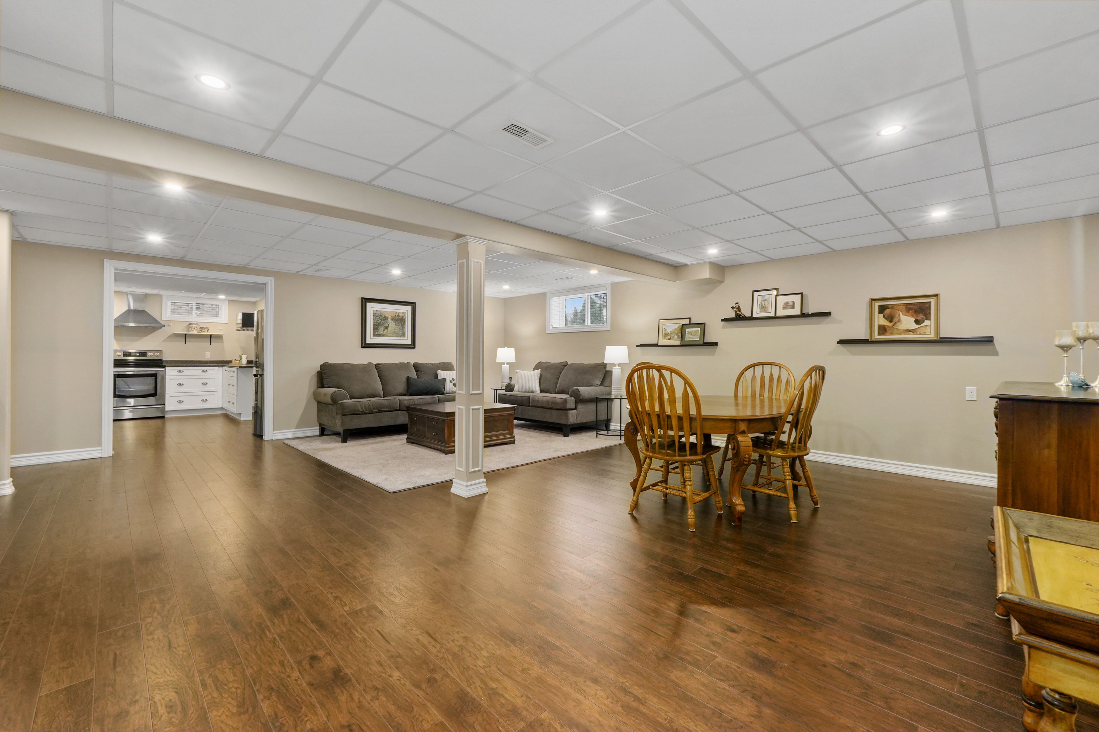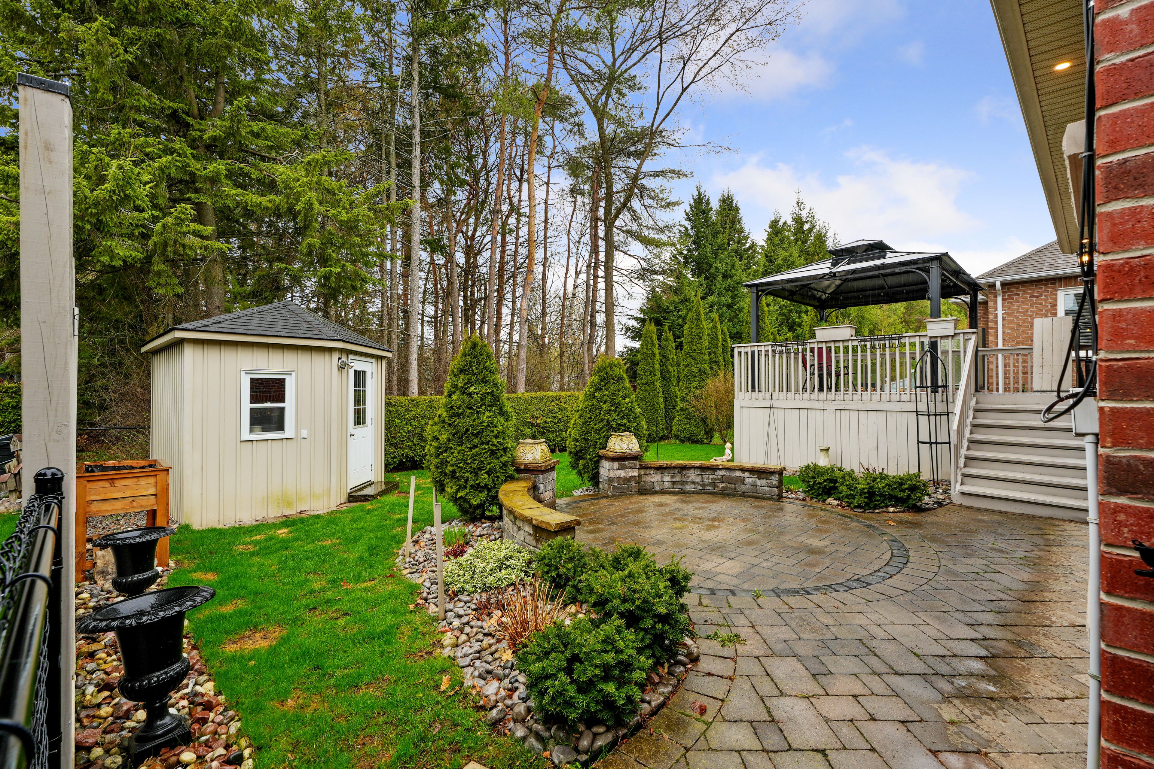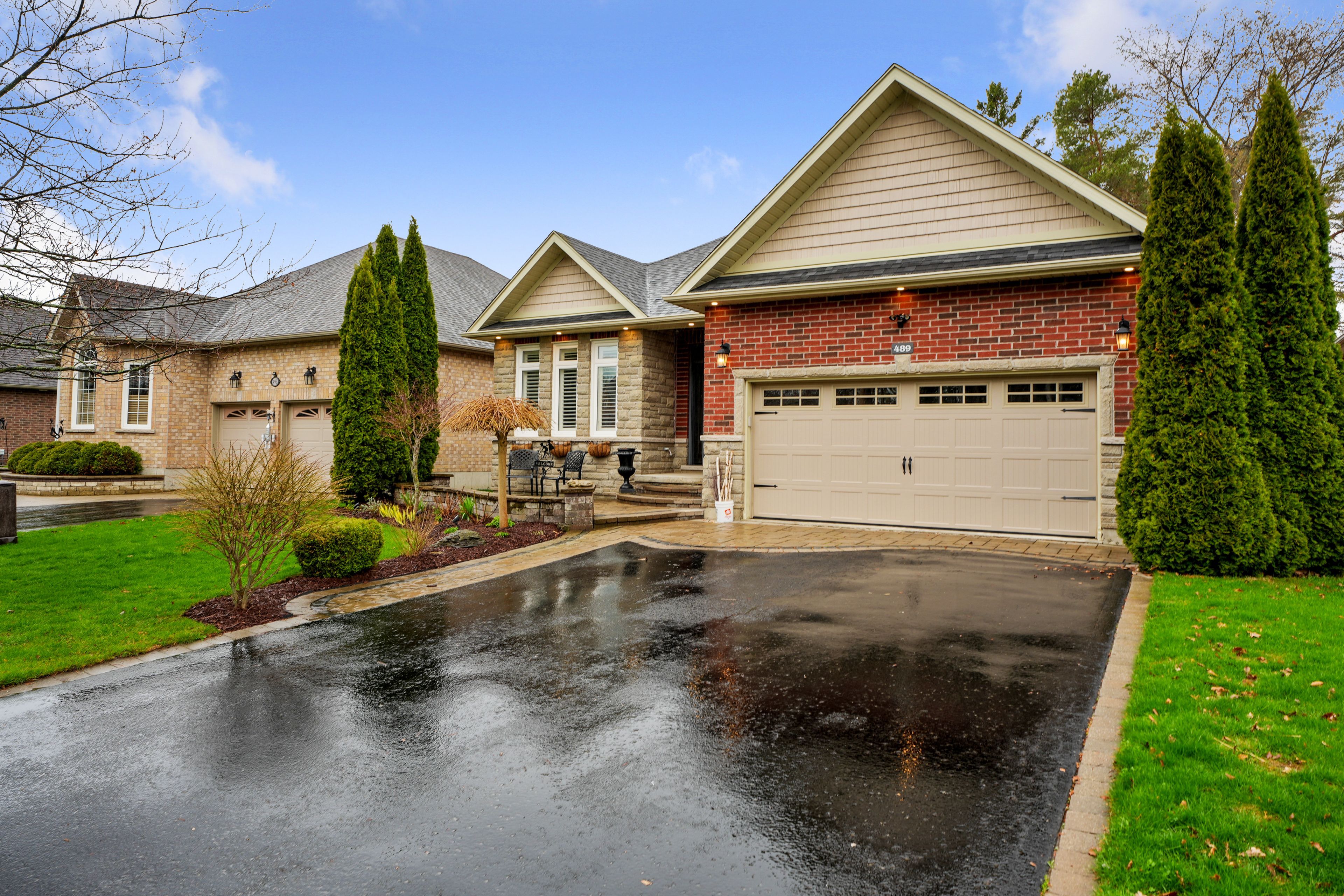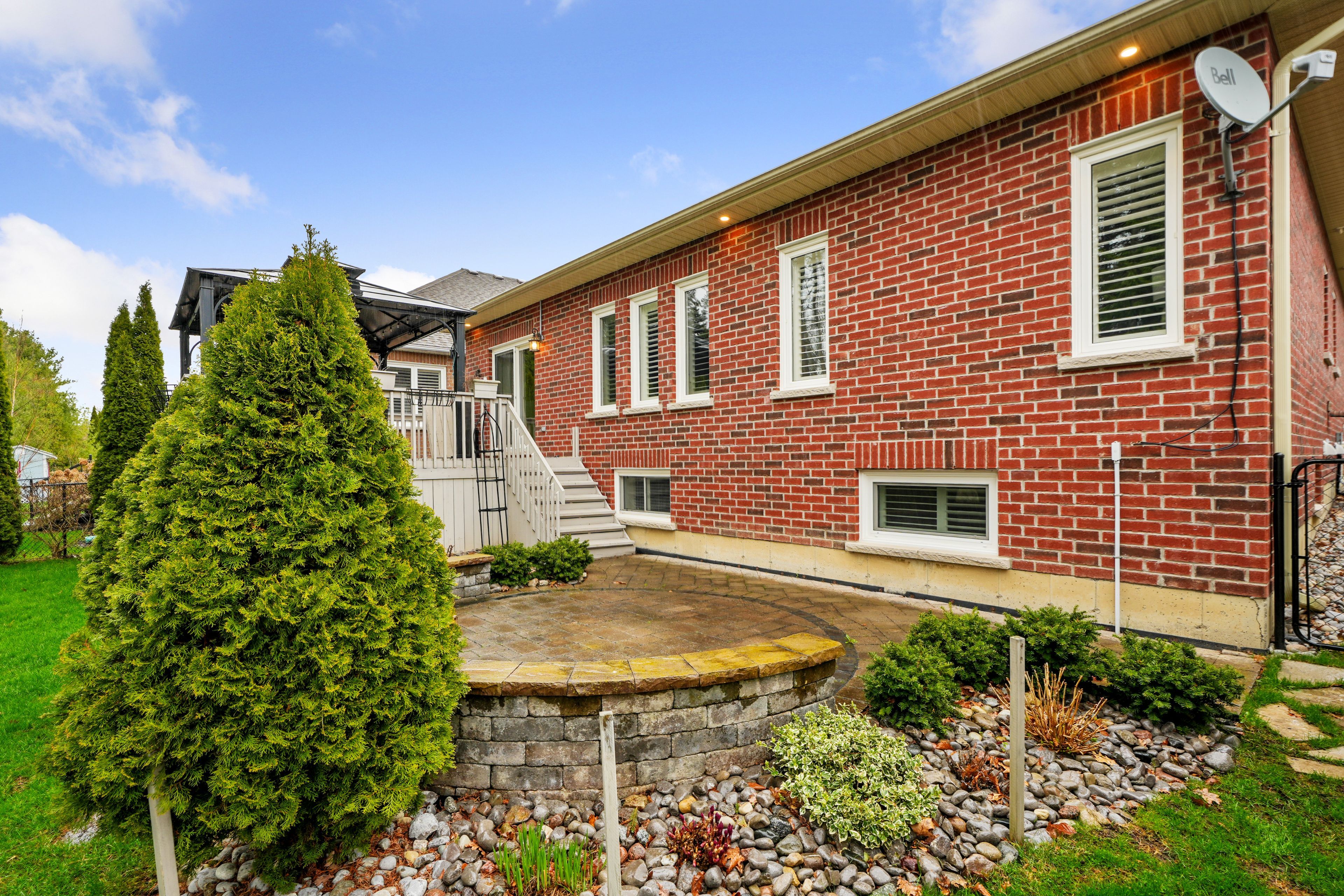 Beautifully designed bungalow overflowing with curb appeal, complete with a fully finished basement and separate kitchen, offering exceptional flexibility for modern living. Step inside to an open-concept principal living space featuring a carpet-free layout, elegant crown moulding, and recessed lighting that creates a warm and inviting atmosphere. The spacious living area is filled with natural light from multiple windows, while the dining area offers a seamless walkout, perfect for entertaining or enjoying alfresco meals in the warmer months. The kitchen is thoughtfully designed with stainless steel appliances, ample counter and cupboard space, and a large island with a raised breakfast bar, serving as the heart of the home. The main floor continues with a spacious primary suite featuring a tray ceiling and a private ensuite with a glass shower enclosure. A guest bedroom, full bathroom, and a convenient laundry room with direct access to the garage complete this level. The lower-level in-law suite provides incredible versatility, offering a large rec room with built-ins, a dedicated dining or games area, a well-appointed kitchen, an additional bedroom with an egress window, a bathroom, and generous storage space-ideal for extended family or multi-generational living. Outside, enjoy a fenced backyard designed for both relaxation and entertaining, featuring a deck, patio, gazebo with soft ambient lighting for summer evenings, a custom-built shed with connected electricity, and beautifully cultivated gardens. Thoughtful exterior enhancements include downlights in the front and rear soffits for attractive nighttime illumination, along with convenient lighting at the side garage door and on the shed. Perfectly situated just moments from everyday amenities with easy access to the 401, this home delivers the ideal balance of comfort, style, and convenience. An exceptional opportunity to enjoy turnkey living with space for everyone, all under one roof.