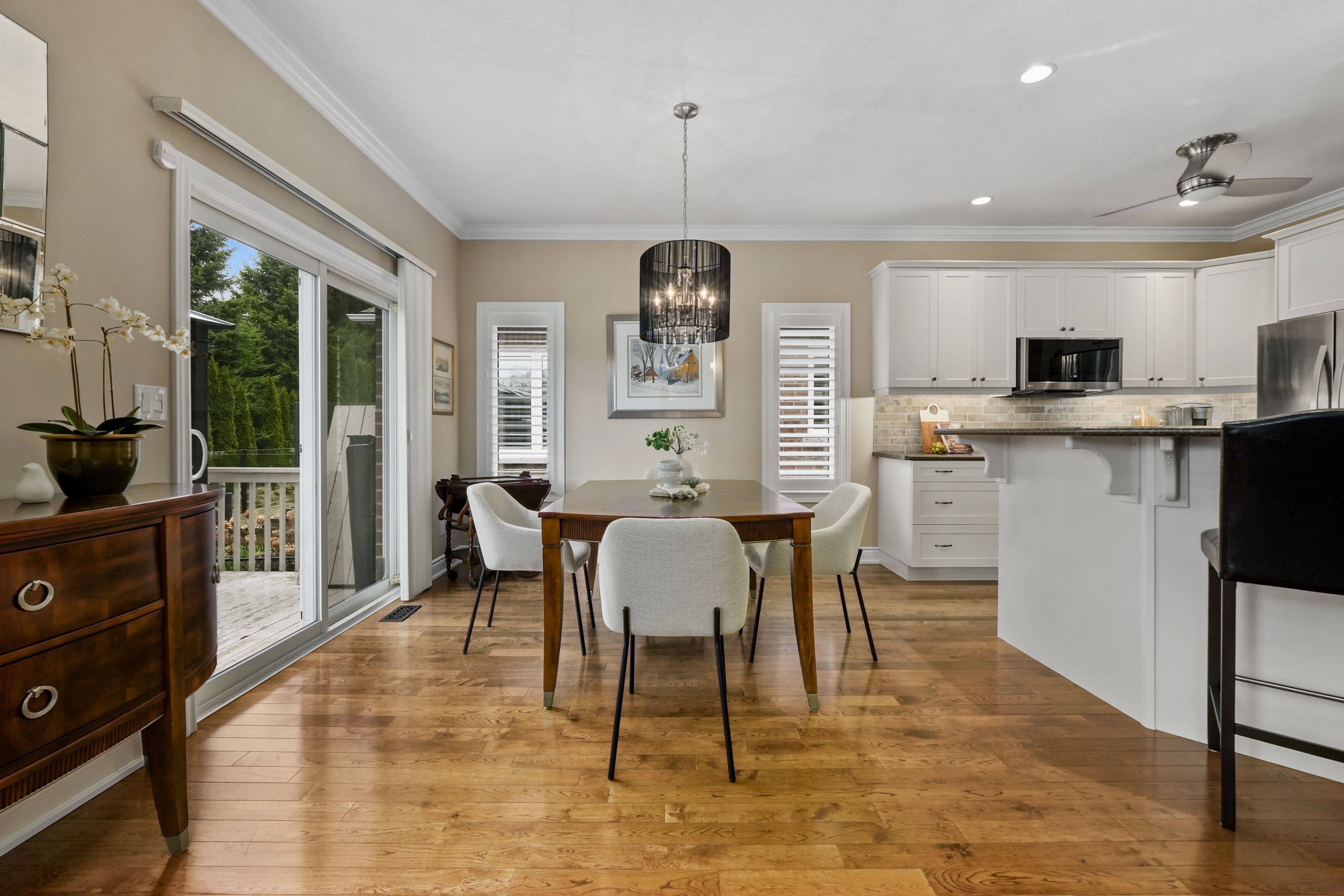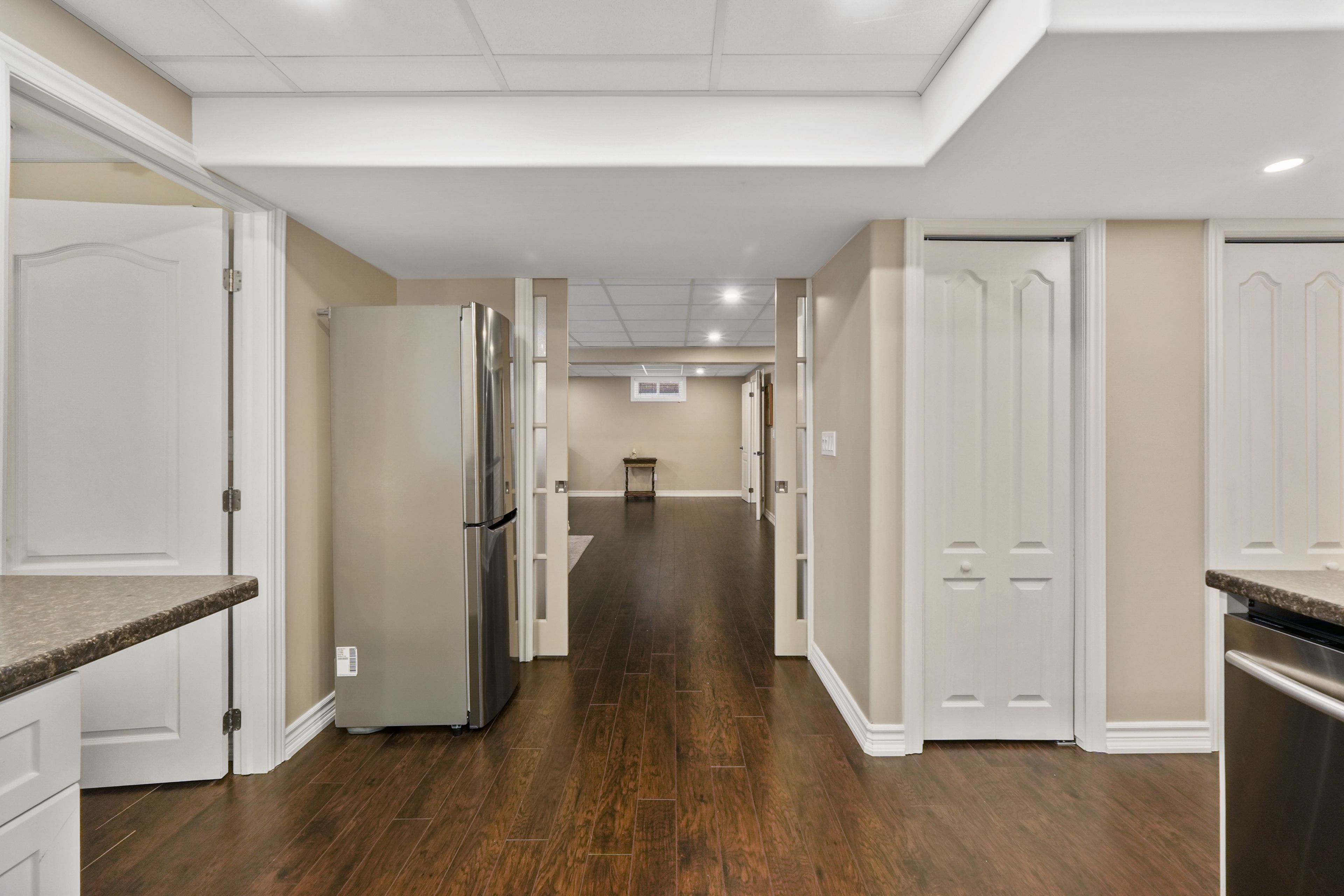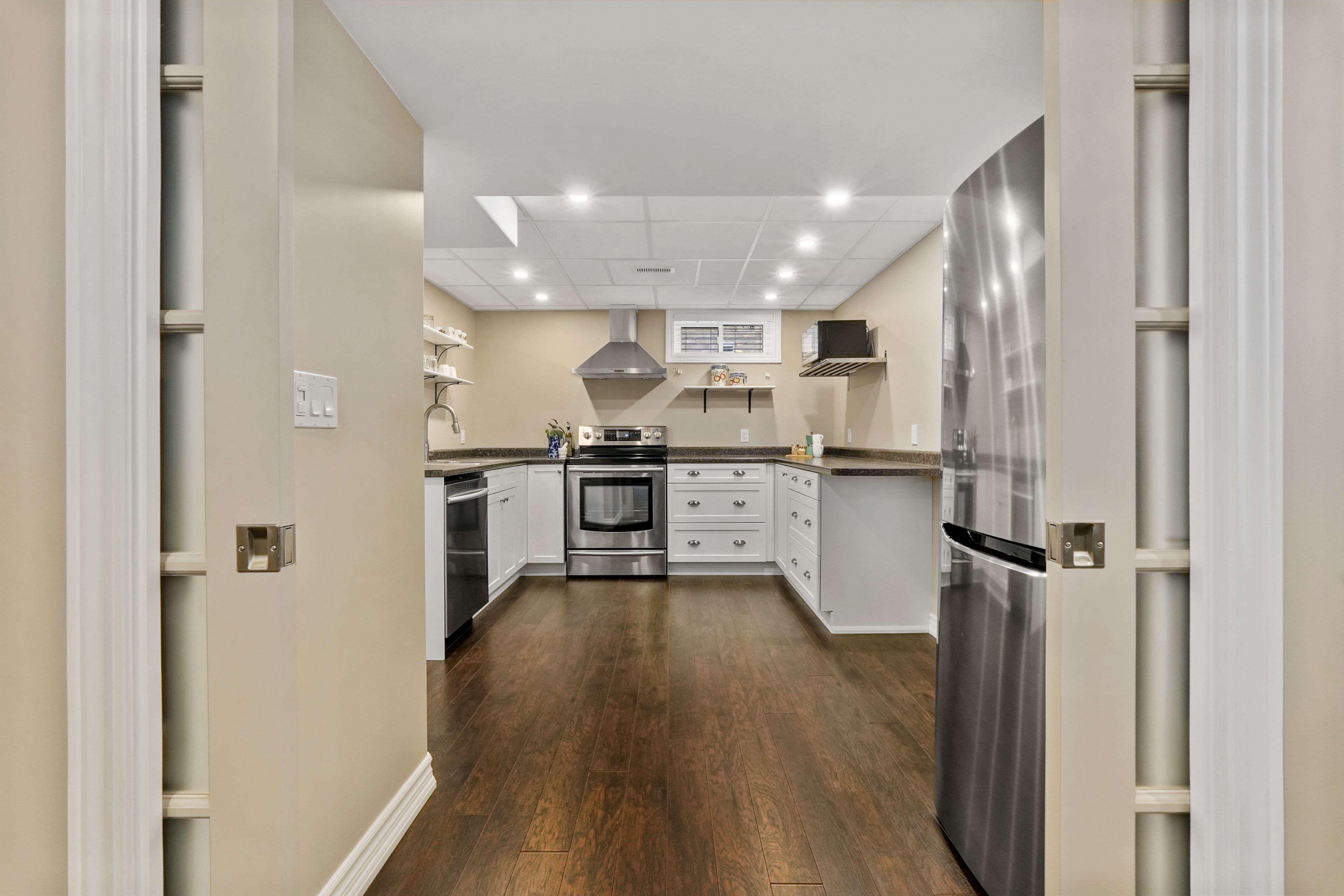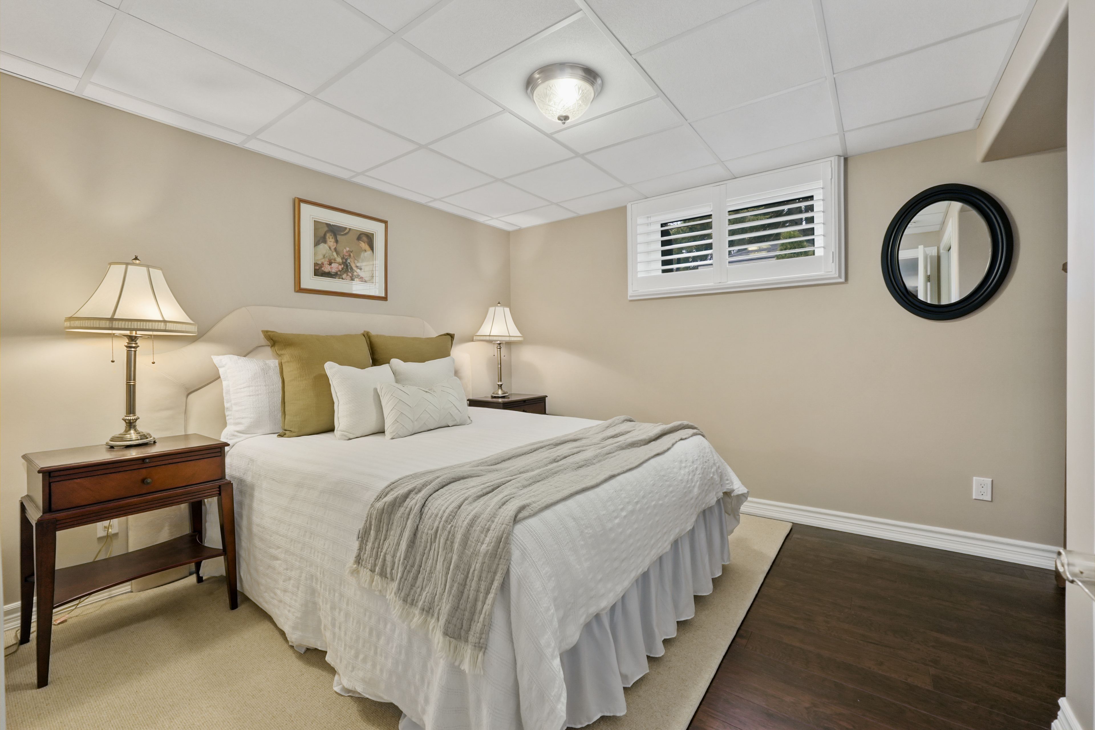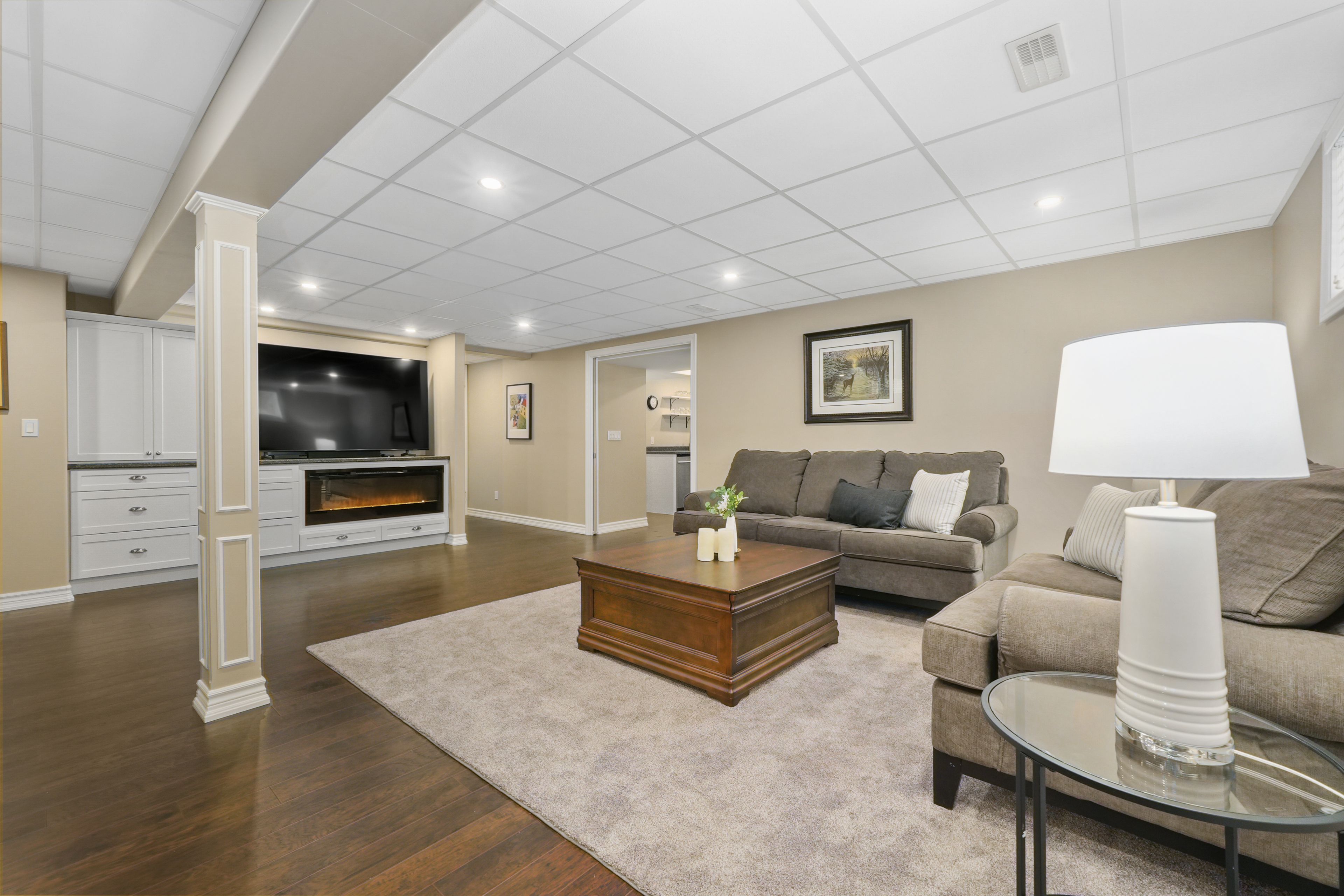 Beautifully designed bungalow overflowing with curb appeal, complete with a fully finished basement and separate kitchen, offering exceptional flexibility for modern living. Step inside to an open-concept principal living space featuring a carpet-free layout, elegant crown moulding, and recessed lighting that creates a warm and inviting atmosphere. The spacious living area is filled with natural light from multiple windows, while the dining area offers a seamless walkout, perfect for entertaining or enjoying alfresco meals in the warmer months. The kitchen is thoughtfully designed with stainless steel appliances, ample counter and cupboard space, and a large island with a raised breakfast bar, serving as the heart of the home. The main floor continues with a spacious primary suite featuring a tray ceiling and a private ensuite with a glass shower enclosure. A guest bedroom, full bathroom, and a convenient laundry room with direct access to the garage complete this level. The lower-level in-law suite provides incredible versatility, offering a large rec room with built-ins, a dedicated dining or games area, a well-appointed kitchen, an additional bedroom with an egress window, a bathroom, and generous storage space-ideal for extended family or multi-generational living. Outside, enjoy a fenced backyard designed for both relaxation and entertaining, featuring a deck, patio, gazebo with soft ambient lighting for summer evenings, a custom-built shed with connected electricity, and beautifully cultivated gardens. Thoughtful exterior enhancements include downlights in the front and rear soffits for attractive nighttime illumination, along with convenient lighting at the side garage door and on the shed. Perfectly situated just moments from everyday amenities with easy access to the 401, this home delivers the ideal balance of comfort, style, and convenience. An exceptional opportunity to enjoy turnkey living with space for everyone, all under one roof.