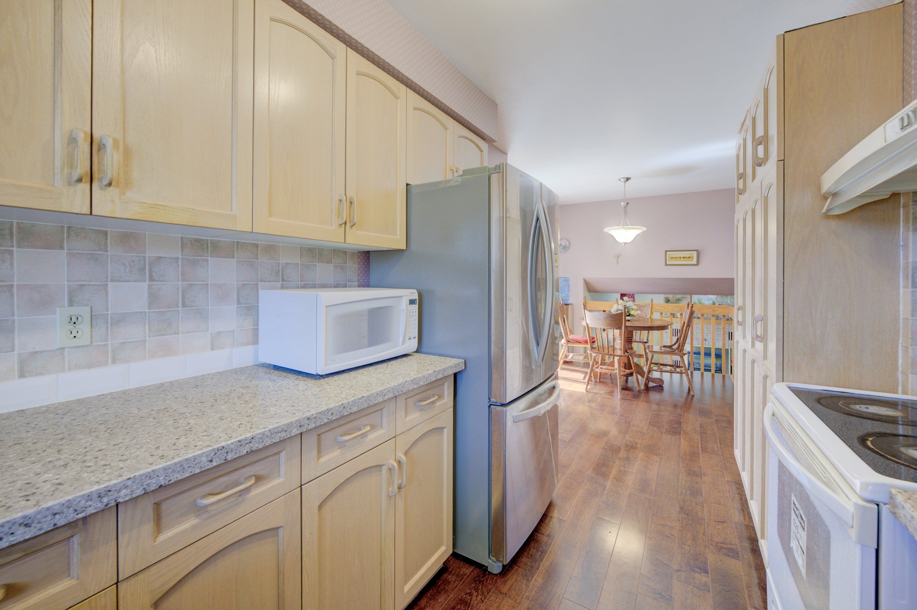 • Eat-in kitchen with walkout to a large deck with hot tub.