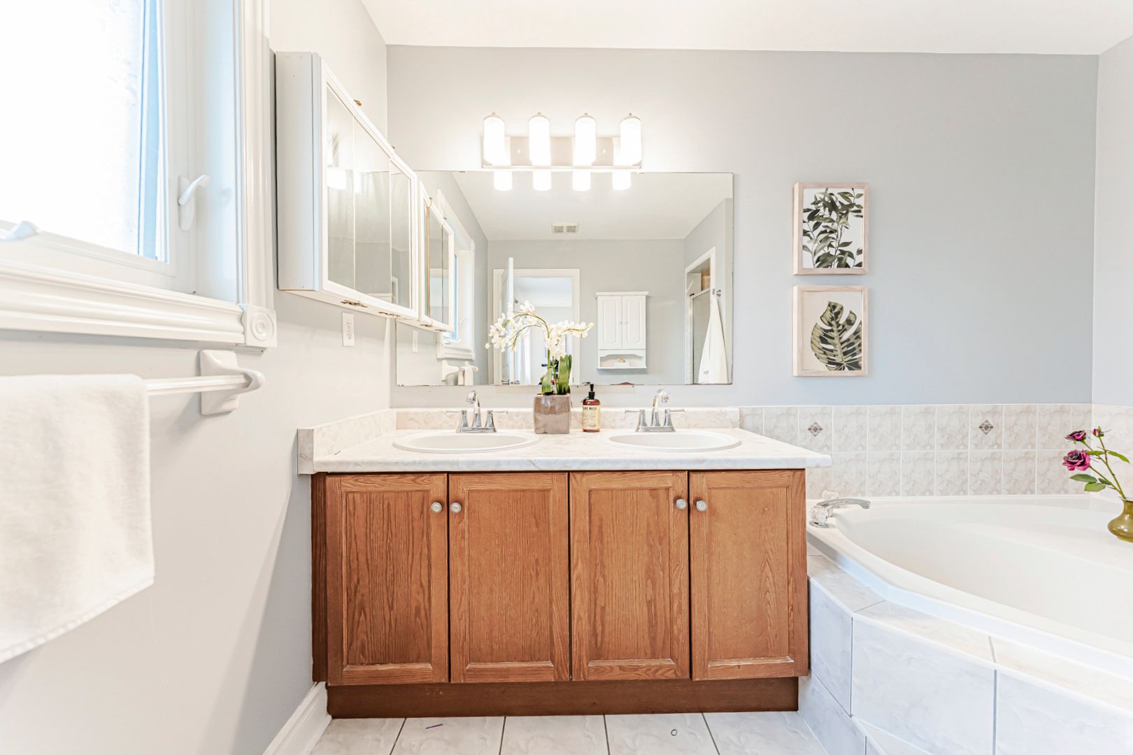 Spacious and updated 5 bedroom family home located on a family-friendly street in wedgewood creek, oakville. Top ranking school district (munn's public school ranks 74/3052 and iroquois ridge high school ranks 8/747). Lovely landscaping with interlocking stone walkway along raised stone lined gardens with perennials and evergreens. Private, fully fenced rear yard offering large composite wood deck, built-in bench seating & privacy lattice screening. Hardwood floors through entire house, gas fireplace, deep baseboards & much more! Generous open concept living & dining room; beautiful kitchen with richly stained maple cabinetry, large pantry, moveable island, mosaic pencil glass & stone tile backsplash & stainless steel appliances. Spacious breakfast area with walkout to deck & rear yard. Generous open concept family room with inviting gas fireplace. Handy main floor den/office. Large bright master retreat with 2 large closets & additional walk-in closet & luxurious 5-piece master ensuite. Four additional bright bedrooms & 2 extra-large 4-piece baths (1 as dedicated ensuite for bedroom #4). Surrounded by ponds, forests, valleys, parks and trails. Close to the uptown core! Shopping is only 5 minutes' walking distance. Quiet yet convenient! A piece of oasis in the city core! Plus, its fun and family-friendly community. Annual neighbourhood street party is held in september. Don't miss this gem and street party fun!