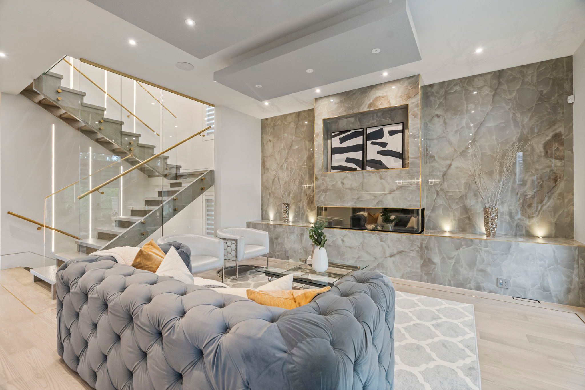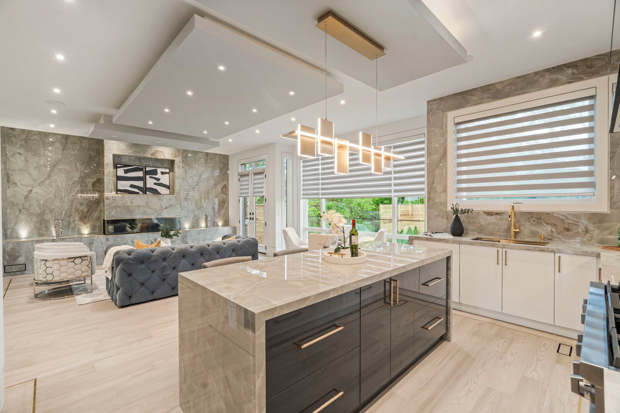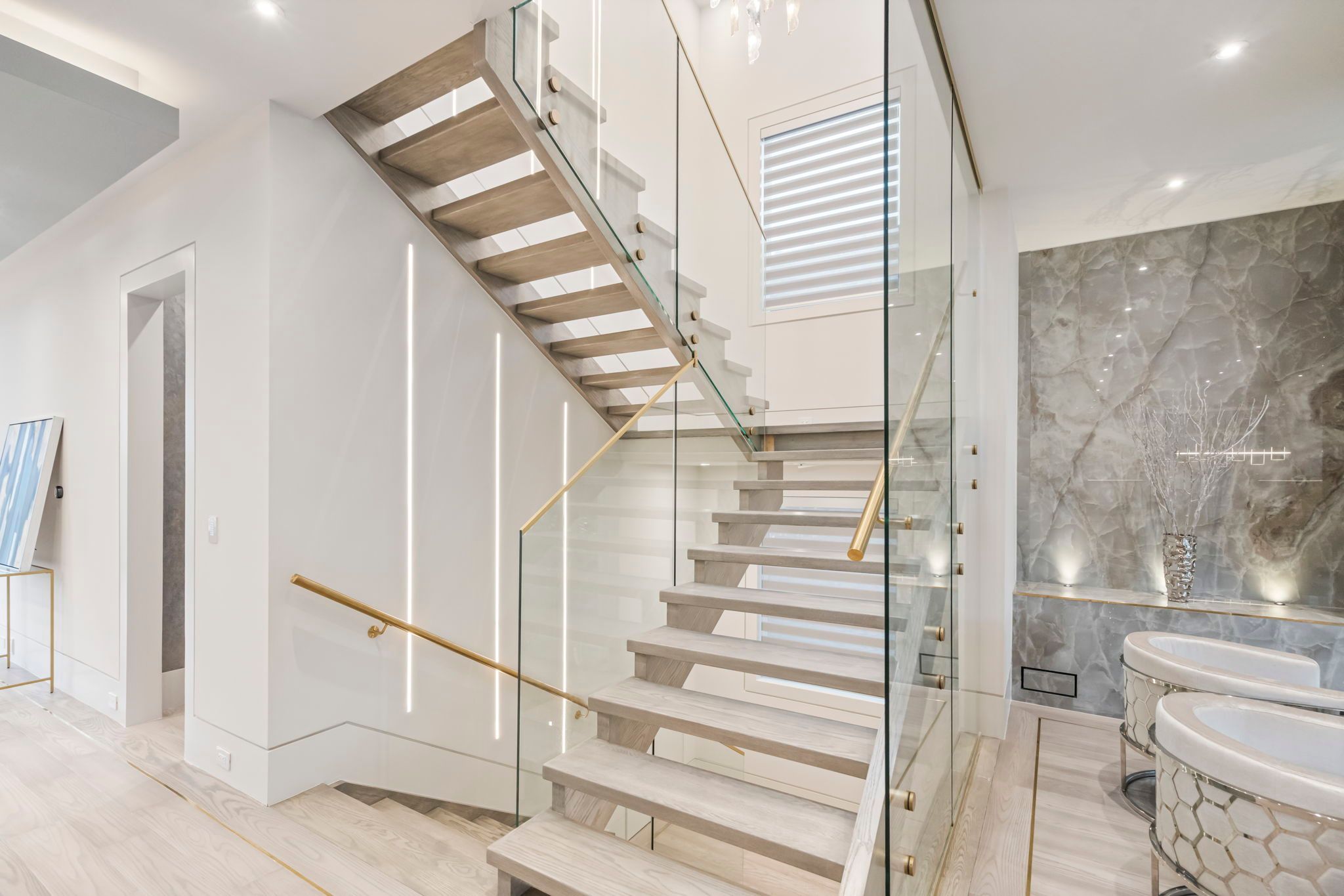 Welcome to an exquisite custom-built residence, perfect for family life & entertaining. Nestled within a prime location in a desirable newotonbrook east, this contemporary 4+1 bedroom home boasts coveted luxury features. Captivated by the stunning indian precast exterior, complemented by professional landscaping, custom interlock, & stunning night lighting. The entrance leads to a grand foyer & office featuring impressive 13' ceilings. Dramatic open-concept layout & design found th/out the home. The interior is expansive & adorned with drop ceilings & hidden lights, boasting bespoke chandeliers, floor-to-ceiling windows, linear fireplaces, brass on all floors,exuding elegance & sophistication. The wine cellar display & custom-cut hardwood floors w/ brass trim add further allure. The gourmet kitchen is a chef's dream, equipped w/ high-end built-in appliances. The family room, designed w/ italian imported porcelain, drop ceilings, pot lights, & a walk-out to an expansive wooden deck overlooking the backyard, is perfect for outdoor gatherings. Ascend the custom-designed staircase w/ a glass railing, oversized skylight, & large window, bathing the space in natural light. Discover the elegant south-facing primary suite, featuring an opulent 6-pics ensuite, fireplace, & walk-in closet flooded w/ skylight-poured natural light. Each additional bedroom boasts its own ensuite finished w/ italian imported porcelain tile walls & heated floors. The magnificent l/l features soaring ceilings, heated porcelain tile floors, & a stunning rec room w/ a wet bar illuminated by natural light from large windows. 2 walk-up access points & an additional nanny suite w/ a closet & heated en-suite complete this space. Outside, the vast landscaped backyard is surrounded by double-height privacy fences, offering a serene oasis. Steps away from renowned schools, shops, & eateries. This home truly offers the ultimate blend of luxury, comfort, & convenience.