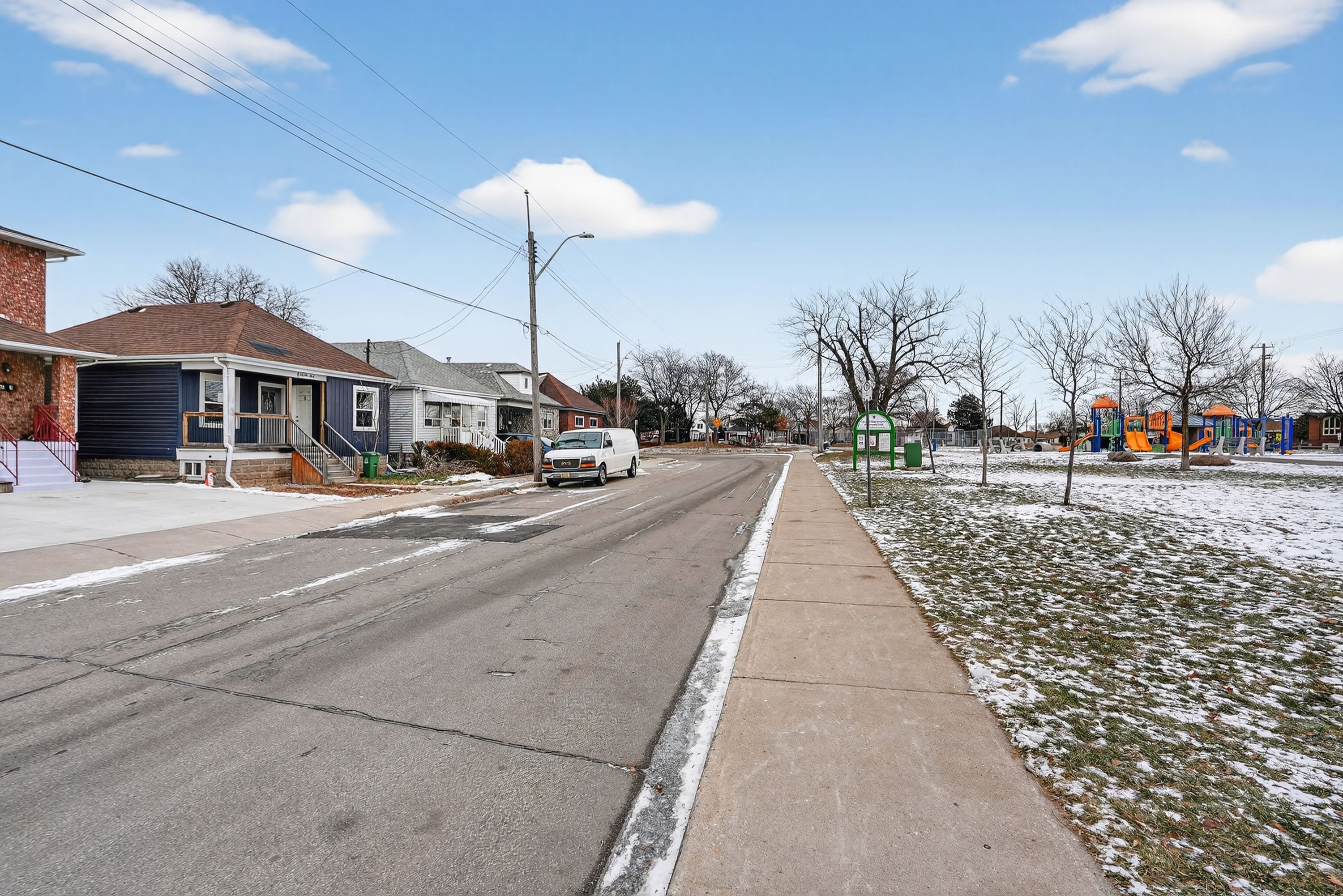 Parkside living ... Set directly across from andrew warburton park, 49 allan ave delivers the kind of location and versatility that buyers in hamilton are actively searching for. This well-maintained 3-bedroom bungalow blends comfortable main-level living with future flexibility, all within walking distance to schools, public transit, shopping, and just minutes to qew access. A covered front porch creates an inviting first impression and opens into a bright open concept living, dining, and kitchen layout designed for easy everyday living. The updated kitchen is both stylish and functional, featuring crisp white cabinetry, a classic backsplash, and gleaming countertops. From here, step out to the back deck and fully fenced yard - ideal for summer entertaining, pets, or outdoor hobbies. The main level continues with three well-proportioned bedrooms, an updated 4-piece bathroom, and a conveniently updated laundry closet, keeping daily routines simple and efficient. A standout feature is the separately accessed basement, with entry located at the front of the home. This partially finished lower level includes a roughed-in recreation room, bedroom, and 4-piece bath, offering excellent in-law suite potential or flexible space for extended family, guests, or future customization. Virtual staging has been used to highlight layout possibilities and help visualize the home's full potential. With its park-side setting, thoughtful updates, and adaptable floor plan, 49 allan ave presents a compelling opportunity for buyers seeking long-term value in a well-connected hamilton neighbourhood. Click on multimedia for virtual tour, floor plans & more.