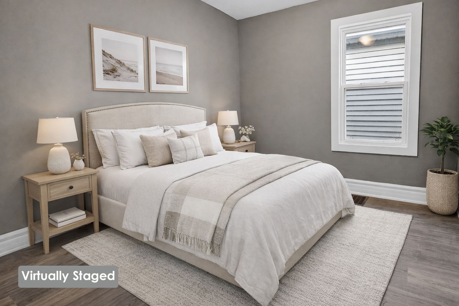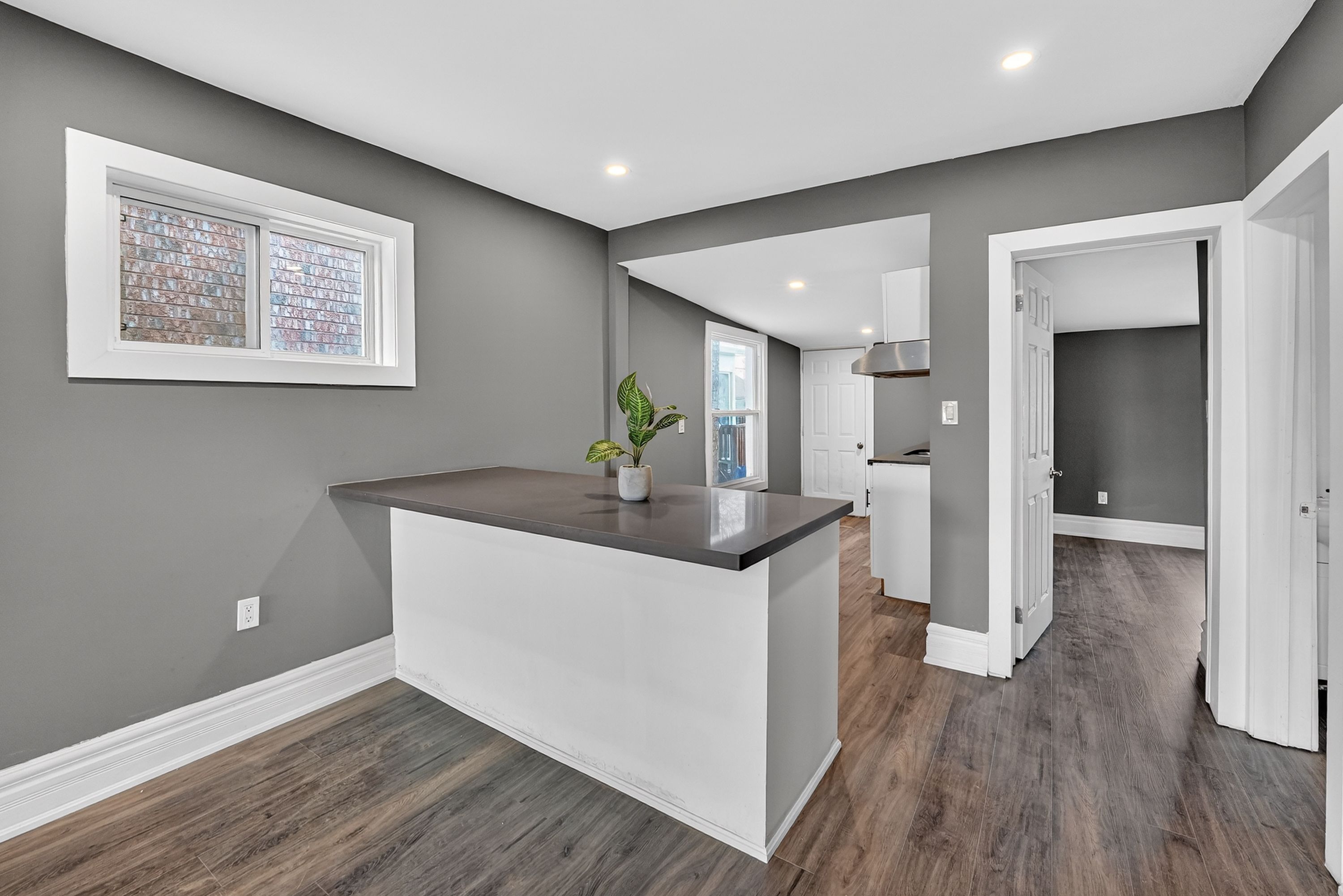 Parkside living ... Set directly across from andrew warburton park, 49 allan ave delivers the kind of location and versatility that buyers in hamilton are actively searching for. This well-maintained 3-bedroom bungalow blends comfortable main-level living with future flexibility, all within walking distance to schools, public transit, shopping, and just minutes to qew access. A covered front porch creates an inviting first impression and opens into a bright open concept living, dining, and kitchen layout designed for easy everyday living and boasts brand new flooring throughout. The updated kitchen is both stylish and functional, featuring crisp white cabinetry, a classic backsplash, and gleaming countertops. From here, step out to the back deck and fully fenced yard - ideal for summer entertaining, pets, or outdoor hobbies. The main level continues with three well-proportioned bedrooms, an updated 4-piece bathroom, and a conveniently updated laundry closet, keeping daily routines simple and efficient. A standout feature is the separately accessed basement, with entry located at the front of the home. This partially finished lower level includes a roughed-in recreation room, bedroom, and 4-piece bath, offering excellent in-law suite potential or flexible space for extended family, guests, or future customization. Virtual staging has been used to highlight layout possibilities and help visualize the home's full potential. With its park-side setting, thoughtful updates, and adaptable floor plan, 49 allan ave presents a compelling opportunity for buyers seeking long-term value in a well-connected hamilton neighbourhood. Shingles 2026. Click on multimedia for virtual tour, floor plans & more.