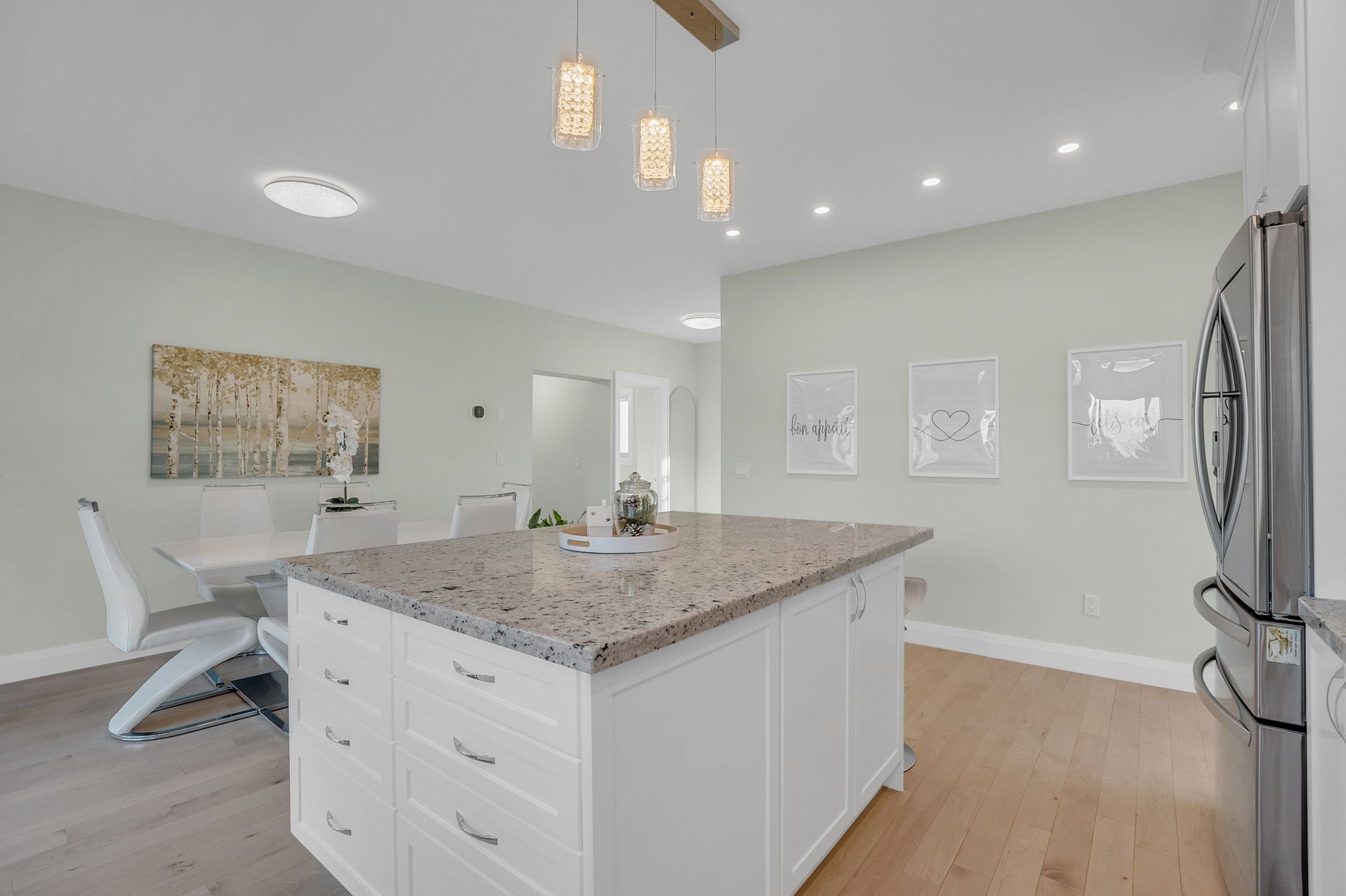 • State-of-the-art kitchen with stainless steel appliances and an oversized island.