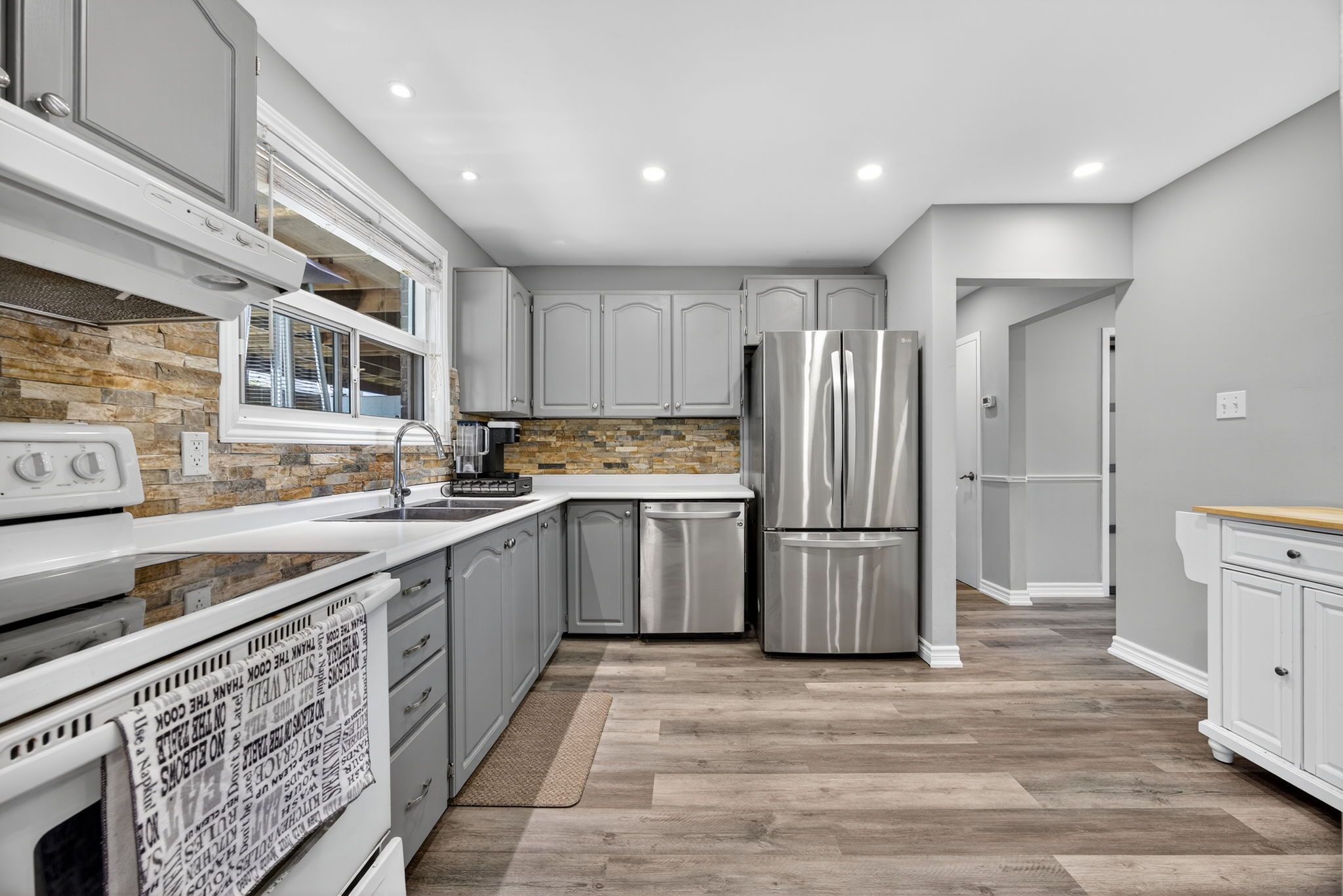 Great value for this home in a lovely friendly small town that is a great spot to raise a family with a very low crime rate, good schools and an active community. A short walk to school, and the town centre. Great double paved driveway allows for side by side winter parking with ease, large fenced lot with covered deck which can be enjoyed year round. Inside has a suitable layout with dining room with walk out to deck making cooking and bbqing easy, spacious kitchen, 4 bedrooms, and a finished basement. New roof in 2023. Great location for anyone needing to commute to the city or airport areas. This has always been a saleable and desirable street.