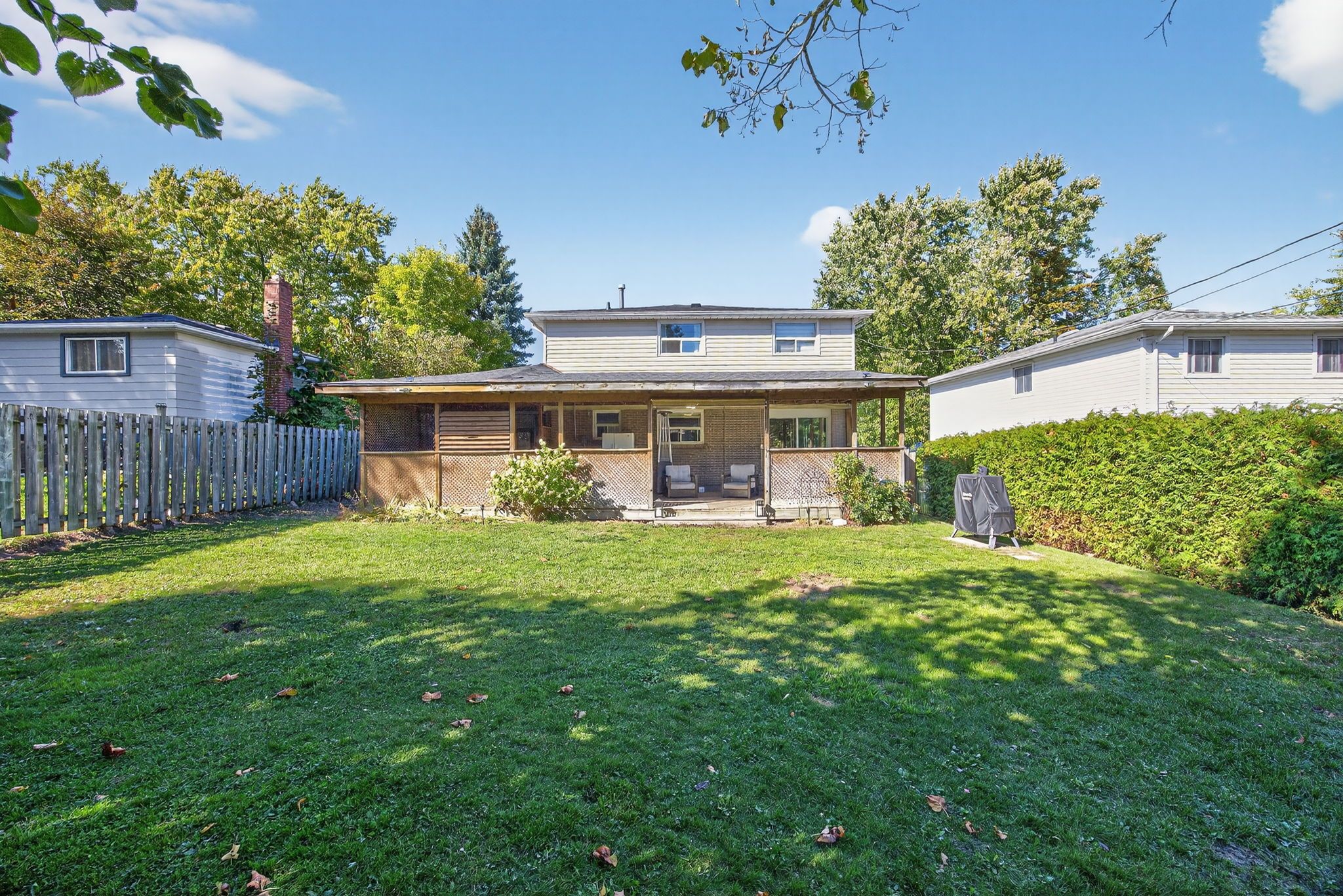 • Large fenced lot with a covered deck for year-round enjoyment.