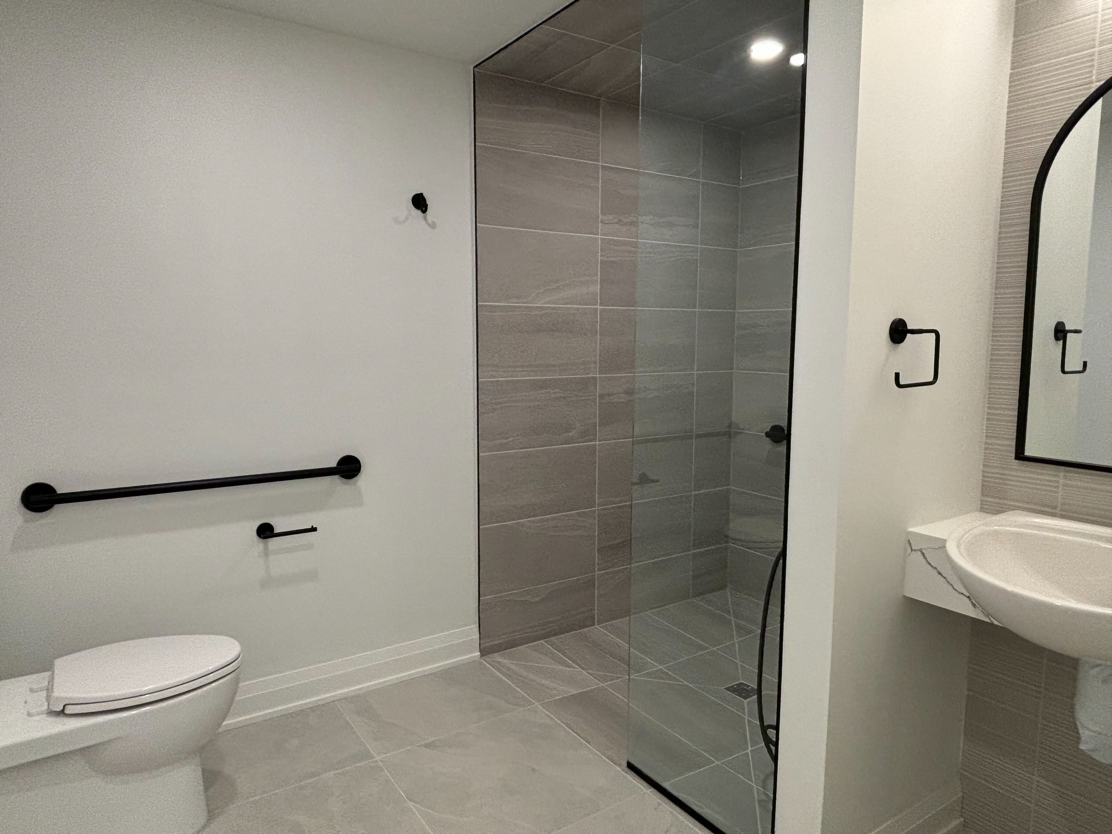 Brand new & never lived in! Welcome to evelyn! This stunning 2-bedroom, 2-bathroom suite is accessible, thoughtfully designed to support mobility needs with ease and comfort. Accessibility features include wheelchair access, over 60 inch turn radius for easy maneuverability, one bathroom has been designed to be fully accessible with roll-in shower, grab bars, and a modified bathroom counter. In addition to its accessibility, the suite boasts luxurious upgrades such as hardwood flooring, an open-concept living space, high ceilings, pot lights, and ensuite laundry. The kitchen is a chef's dream with granite countertops, an oversized stainless steel sink, whirlpool stainless steel appliances, ample storage, and under-cabinet lighting. A large private balcony offers the perfect spot for relaxing or entertaining. Ideally located just steps from southlake hospital and close to major highways and go transit, this home also offers quick access to vibrant main street newmarket, known for its charming shops, cafes, restaurants, and community amenities. Designed with energy efficiency in mind, the unit includes modern systems and appliances that help reduce energy consumption and lower monthly costs. Utilities are separately metered for added convenience. Please note: parking and locker are not included, but both are available for rent (locker from $45+/month, parking $170/month, subject to availability).
