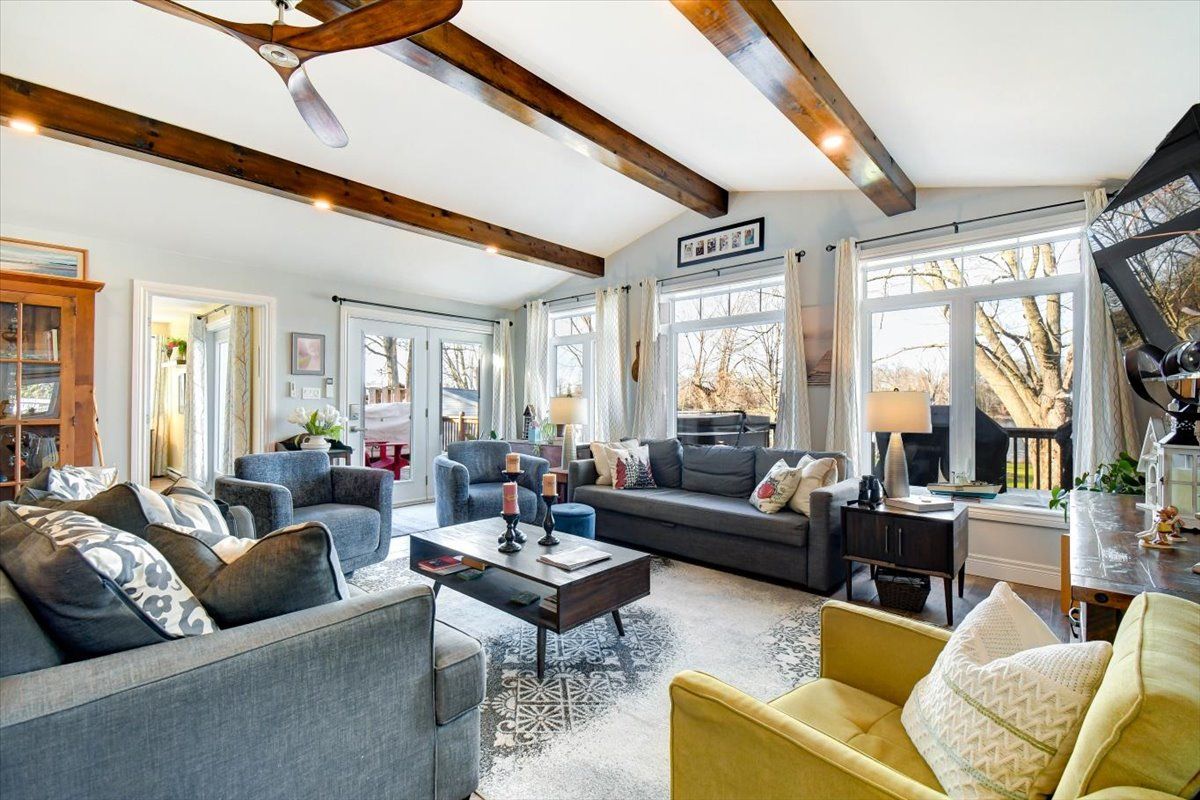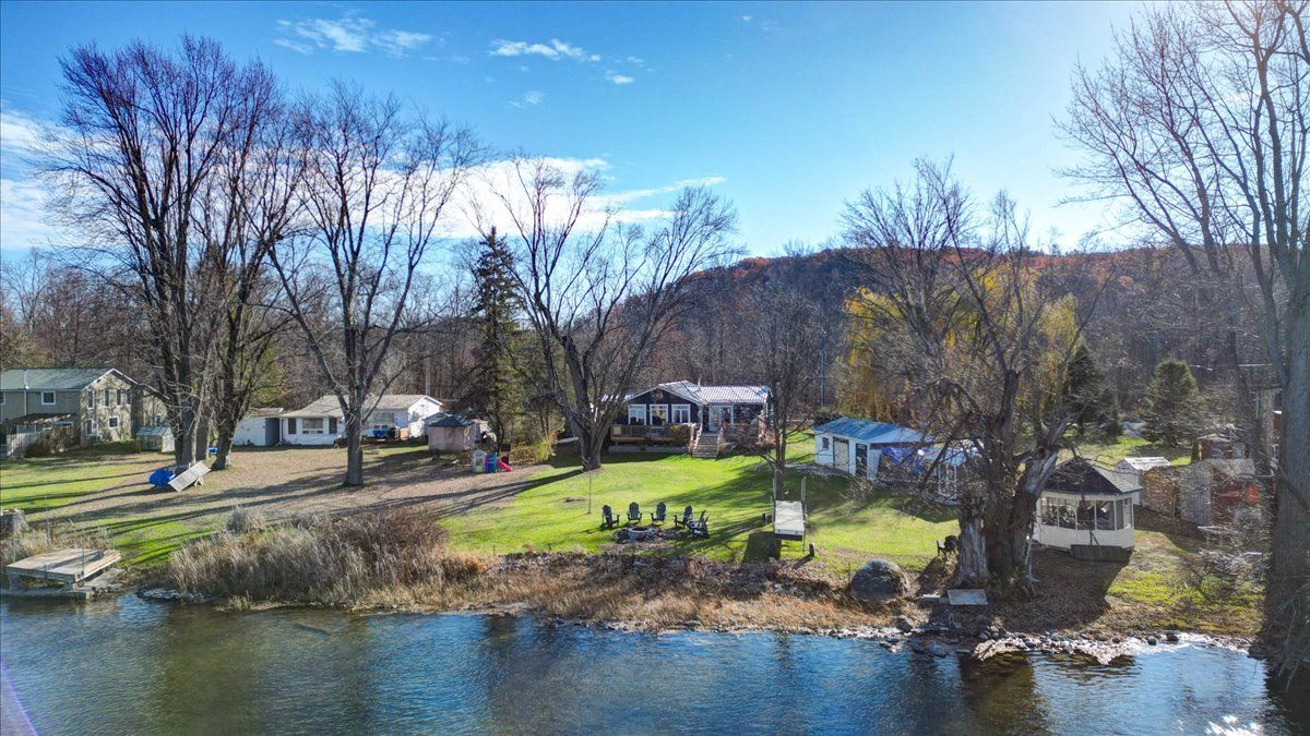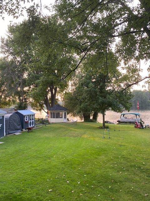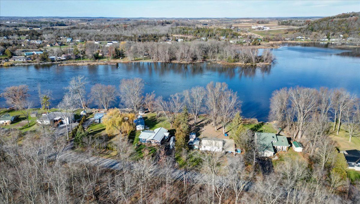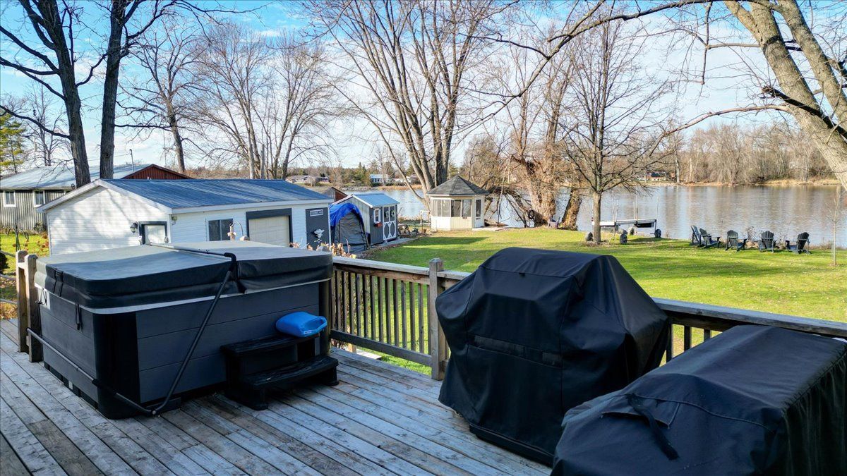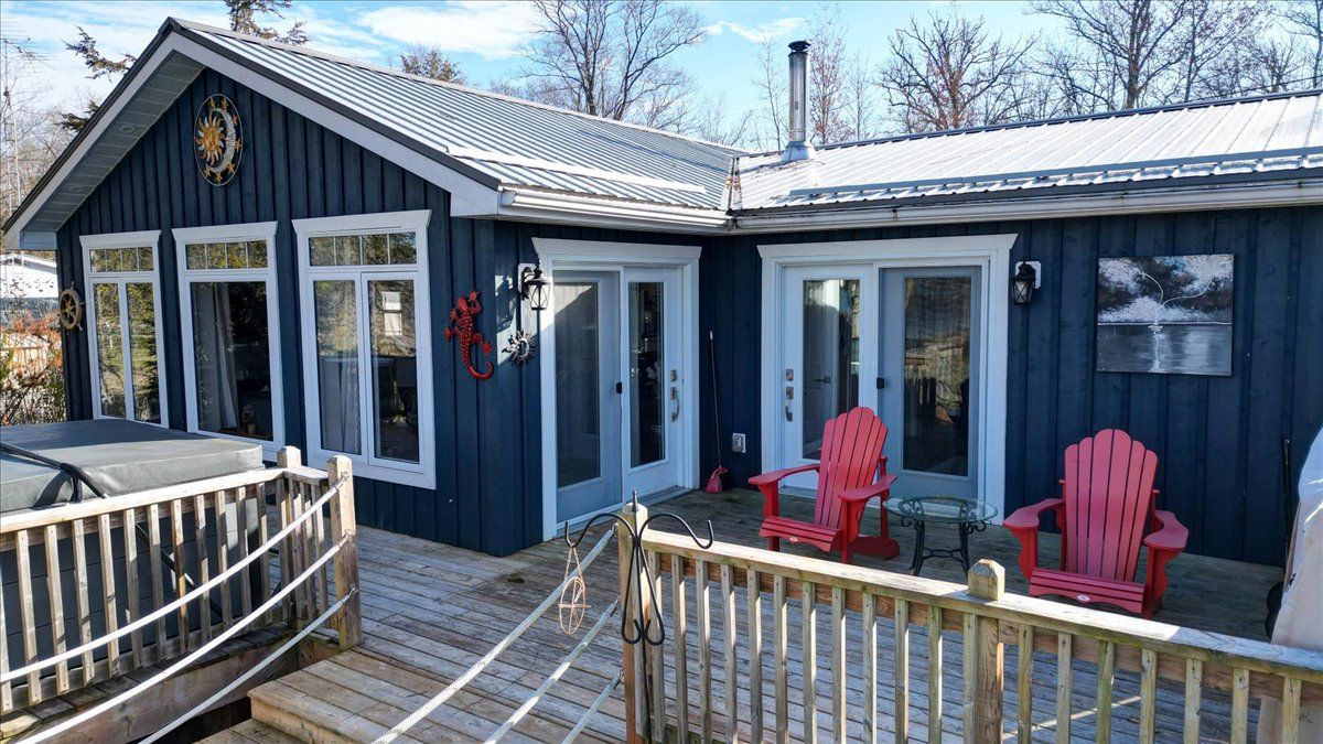 Welcome to this exceptional waterfront property, offering the perfect blend of comfort, charm, and year-round relaxation. This well maintained 2-bedroom, 2-bath home sits on just over . 5 acre landscaped lot with breathtaking sunset views and direct access to the water, allowing you to enjoy peaceful living and fishing right from your own dock. Step inside to an inviting open-concept kitchen, dining, and living area designed for effortless flow and natural light. The kitchen features stainless steel appliances, abundant cabinetry, and generous counter space. Striking wood beams add warmth and character, while porcelain flooring runs throughout the main living area for durability and style. A cozy wood stove creates the perfect ambiance on cooler evenings. The spacious primary bedroom boasts a private 3-piece ensuite and direct patio access, making it an ideal space for quiet mornings or enjoying fresh air before bed. The second bedroom is conveniently located next to main bathroom providing function and practicality which includes the laundry facilities, adding to the home's thoughtful layout. A practical mudroom provides additional organization and storage. Outdoor living is truly exceptional here. Relax and unwind on the deck, complete with a hot tub, or gather around the fire pit for evenings under the stars. The property also includes a charming screened-in gazebo, perfect for bug-free summer nights, as well as a workshop and a delightful she shed-ideal for hobbies, storage, or creative space. The beautifully landscaped grounds enhance the home's tranquil atmosphere, with open sightlines to the water and incredible sunset views that never gets old. Whether you're looking for a year-round residence or a peaceful getaway, this property offers unmatched comfort, and riverside living. Don't miss the opportunity to make this stunning waterfront home your own.