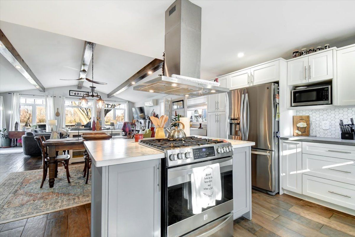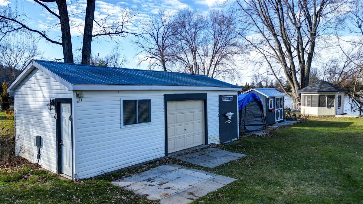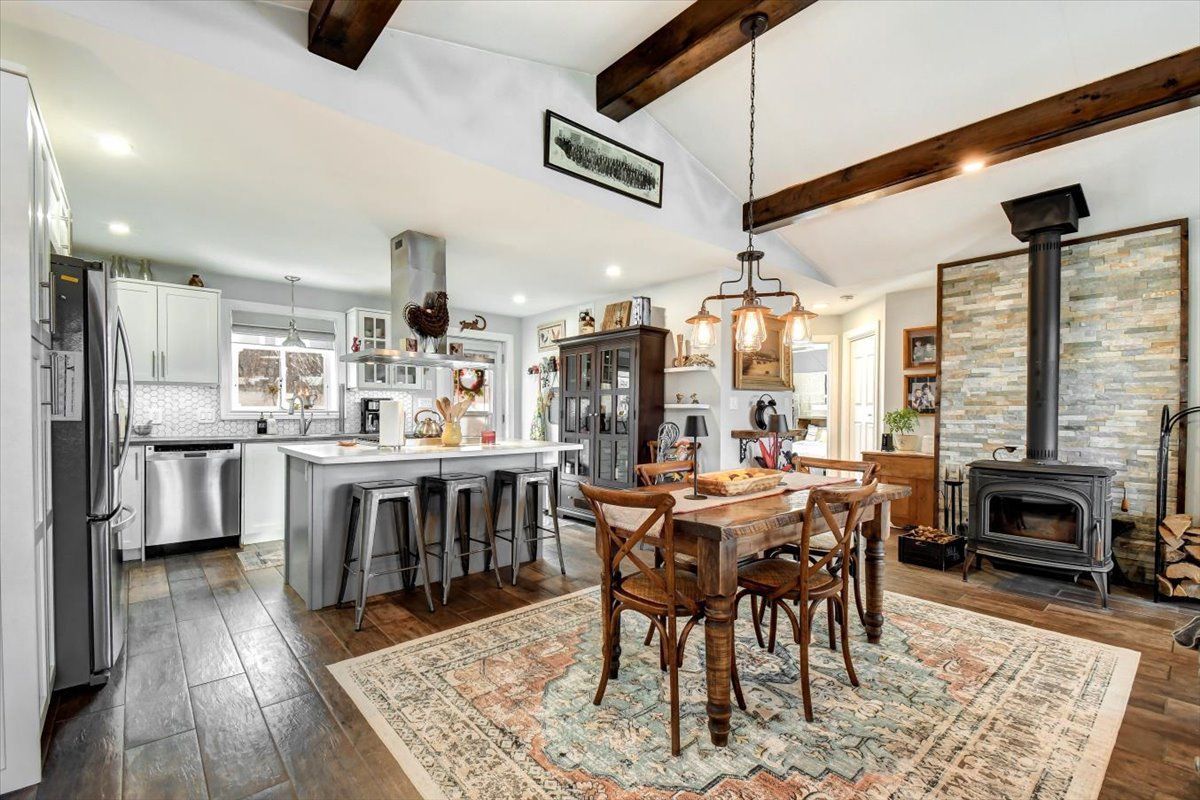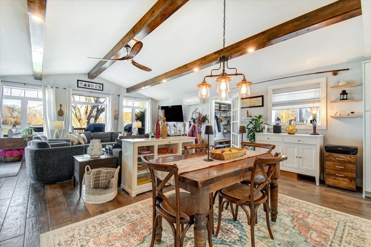 Welcome to this exceptional waterfront property, offering the perfect blend of comfort, charm, and year-round relaxation. This well maintained 2-bedroom, 2-bath home sits on just over . 5 acre landscaped lot with breathtaking sunset views and direct access to the water, allowing you to enjoy peaceful living and fishing right from your own dock. Step inside to an inviting open-concept kitchen, dining, and living area designed for effortless flow and natural light. The kitchen features stainless steel appliances, abundant cabinetry, and generous counter space. Striking wood beams add warmth and character, while porcelain flooring runs throughout the main living area for durability and style. A cozy wood stove creates the perfect ambiance on cooler evenings. The spacious primary bedroom boasts a private 3-piece ensuite and direct patio access, making it an ideal space for quiet mornings or enjoying fresh air before bed. The second bedroom is conveniently located next to main bathroom providing function and practicality which includes the laundry facilities, adding to the home's thoughtful layout. A practical mudroom provides additional organization and storage. Outdoor living is truly exceptional here. Relax and unwind on the deck, complete with a hot tub, or gather around the fire pit for evenings under the stars. The property also includes a charming screened-in gazebo, perfect for bug-free summer nights, as well as a workshop and a delightful she shed-ideal for hobbies, storage, or creative space. The beautifully landscaped grounds enhance the home's tranquil atmosphere, with open sightlines to the water and incredible sunset views that never gets old. Whether you're looking for a year-round residence or a peaceful getaway, this property offers unmatched comfort, and riverside living. Don't miss the opportunity to make this stunning waterfront home your own.