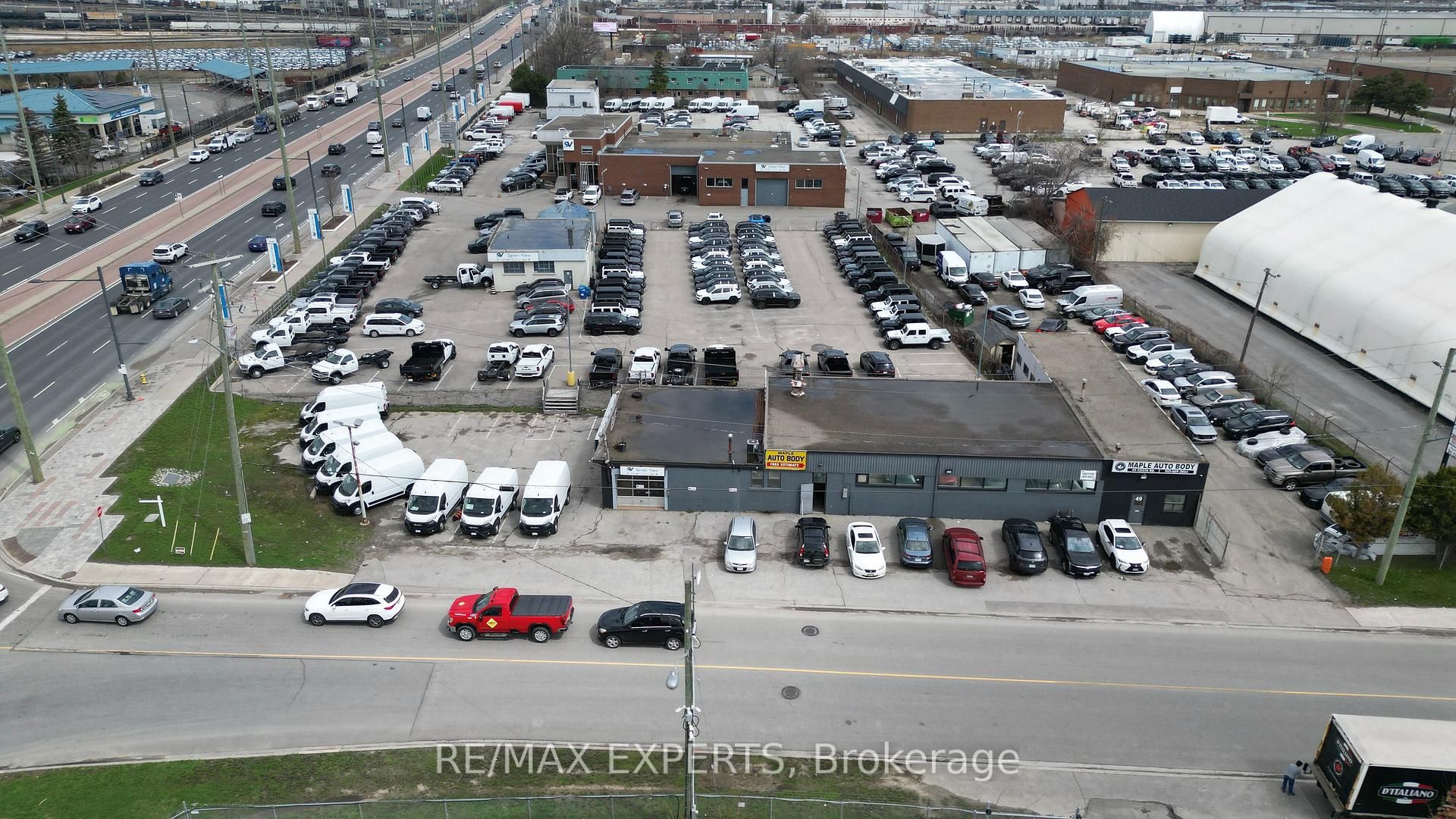 Power of sale! This is a rare opportunity to own a prominent corner lot with direct highway 7 exposure in the heart of vaughan metropolitan centre. The property has long been used for automotive repairs and auto body work, and features generous outdoor parking. It includes a 5,262 square foot industrial building, with 1,289 square feet of finished office space at the front. The office area includes an open workspace, two private offices, and a two-piece washroom. The remaining industrial/warehouse portion offers a small office, two-piece washroom, and unfinished space with 3 oversized drive-in doors. The site is serviced by 100 amp, 600 volt electrical. Located within the regional intensification corridor, the property is designated employment commercial mixed-use, allowing for a maximum height of 10 storeys. All municipal services are available, including municipal water, natural gas, storm sewers, paved roads, sidewalks, public transit, and more. Don't miss this exceptional opportunity!