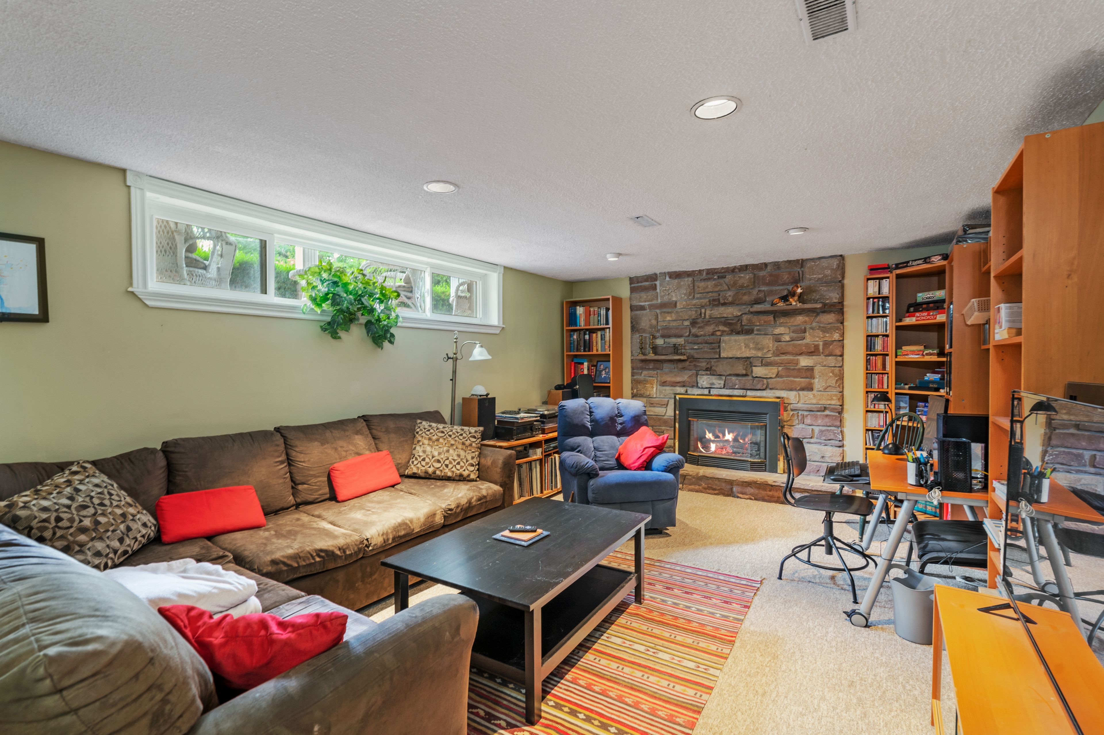 • Inviting sitting area with fireplace and private balcony off the primary bedroom.