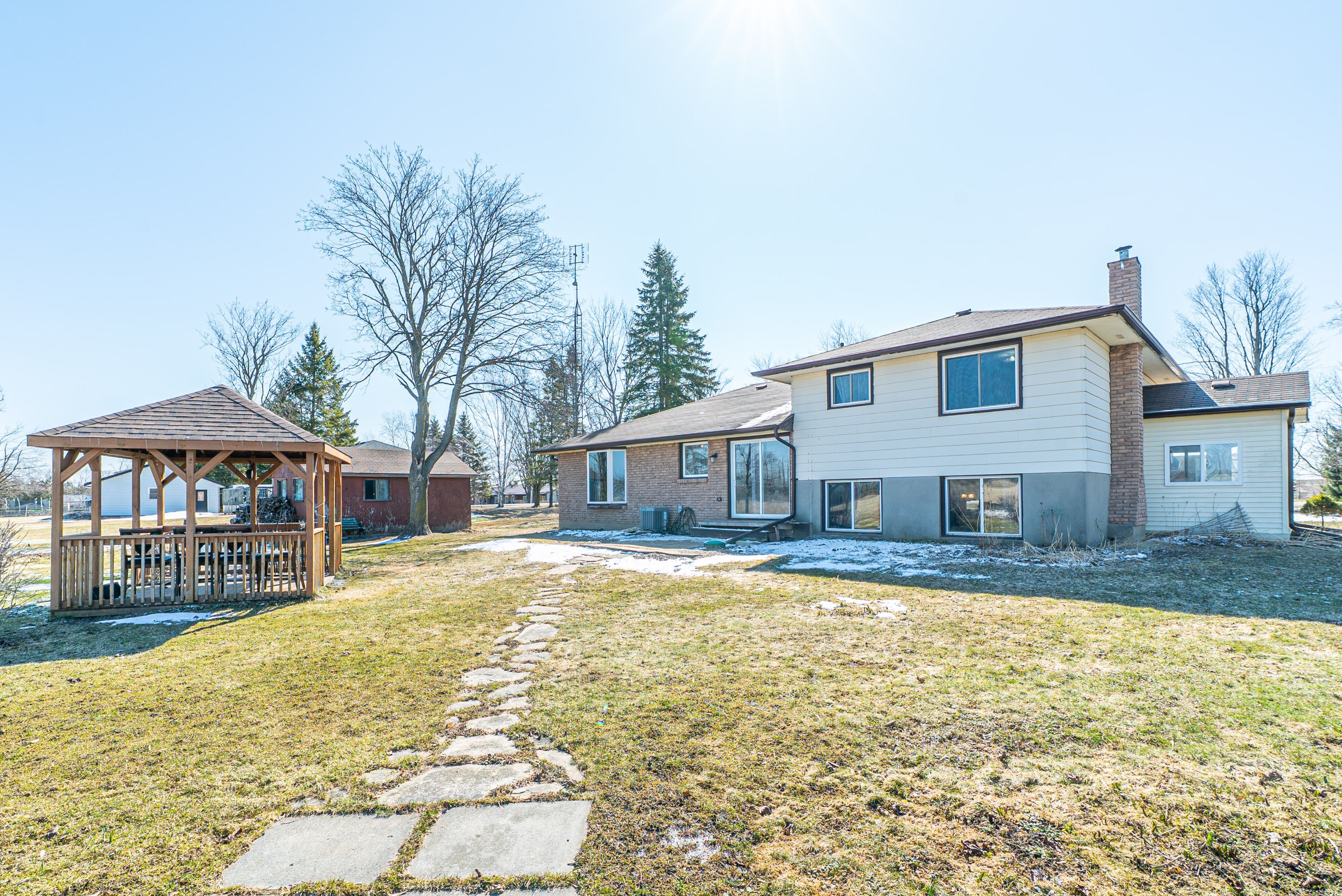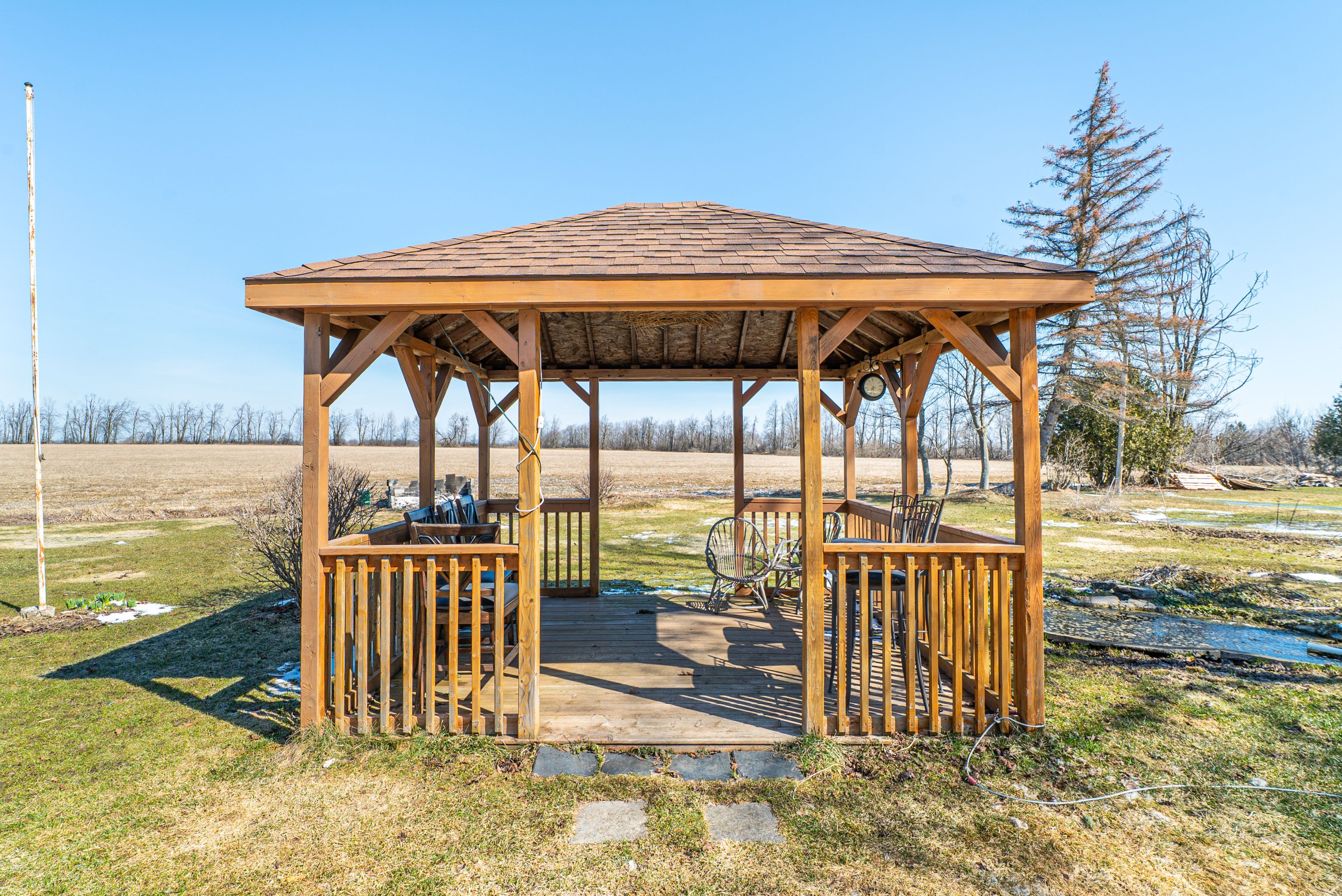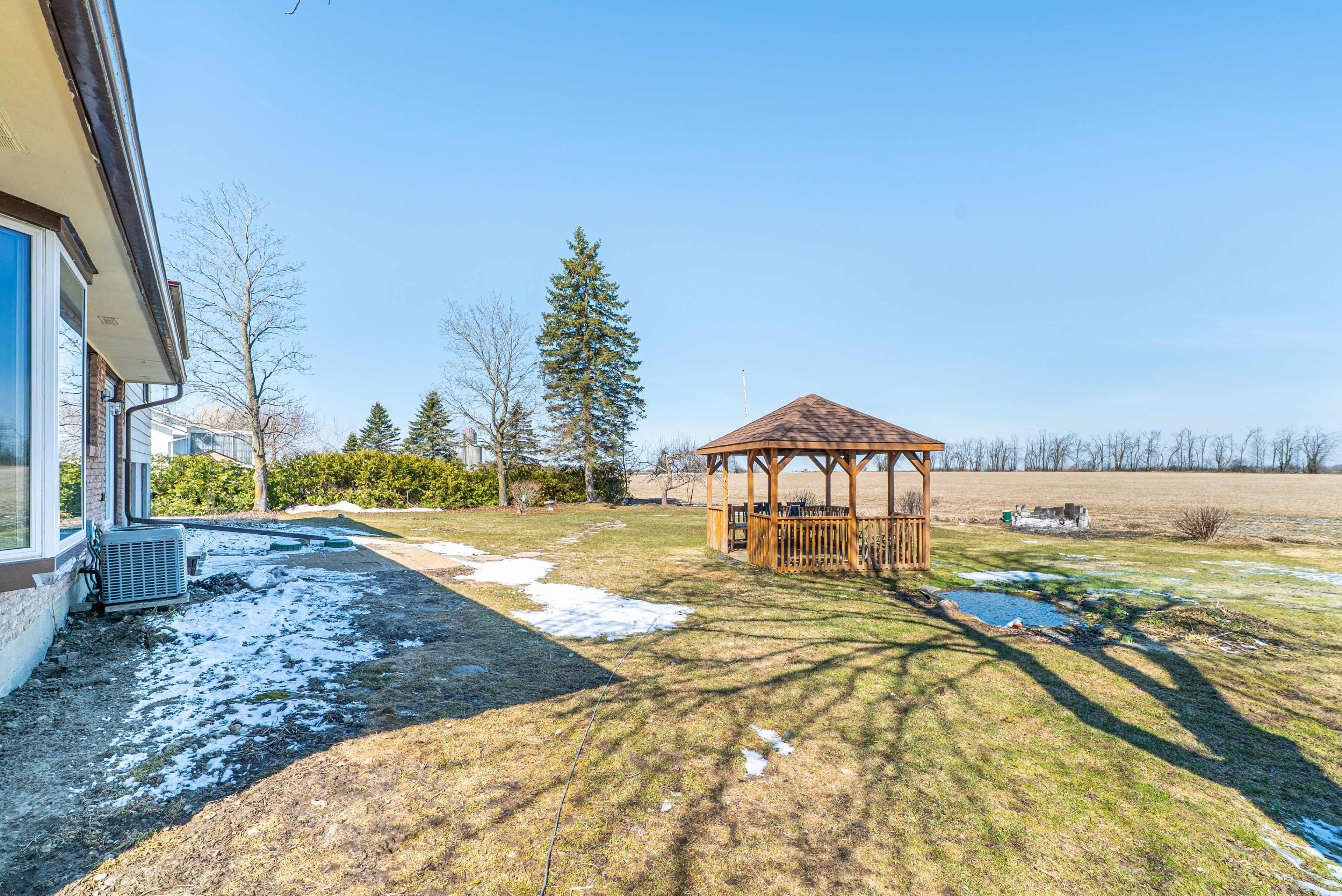 • Pleasant backyard with a gazebo and views of open fields.