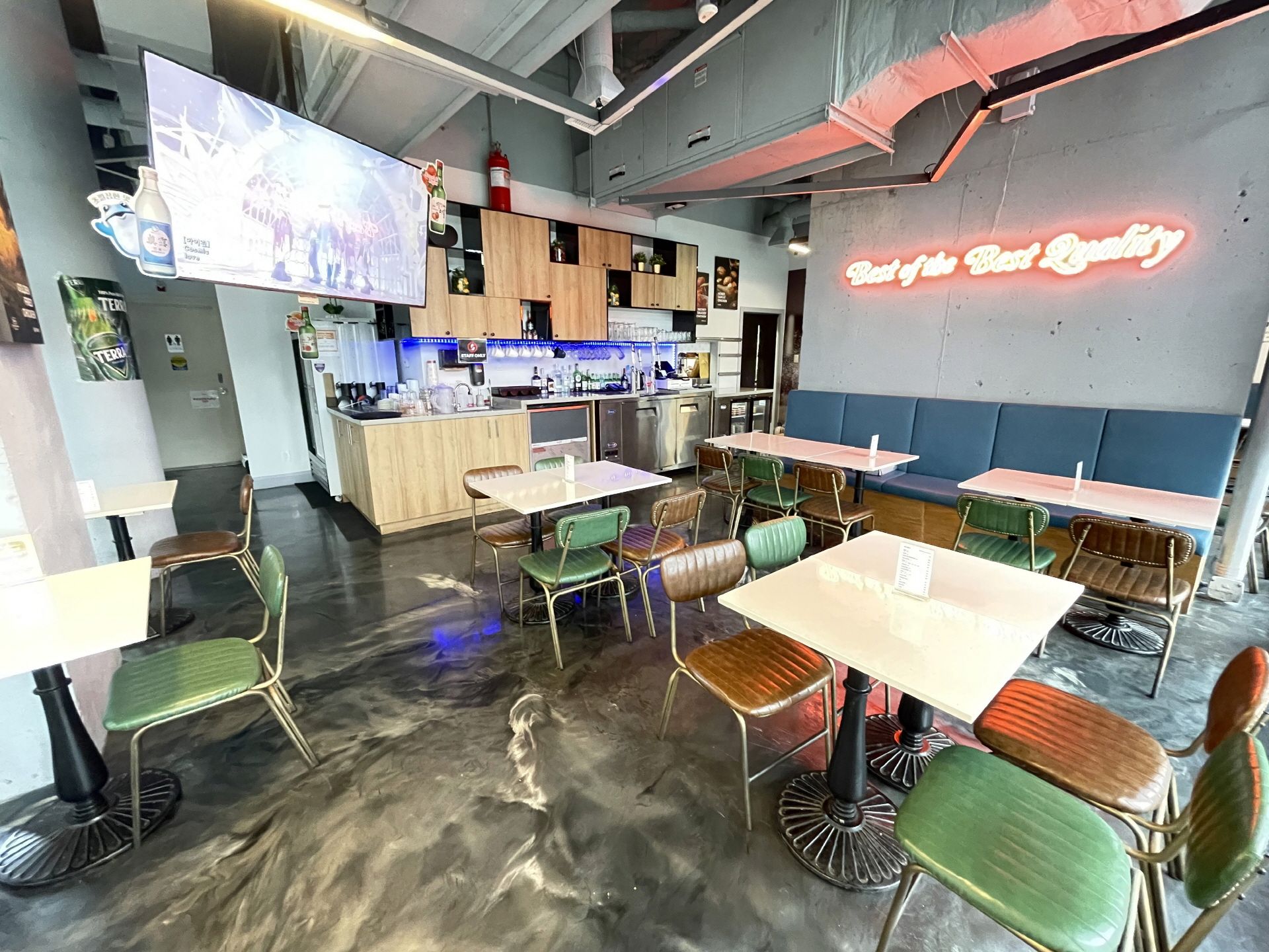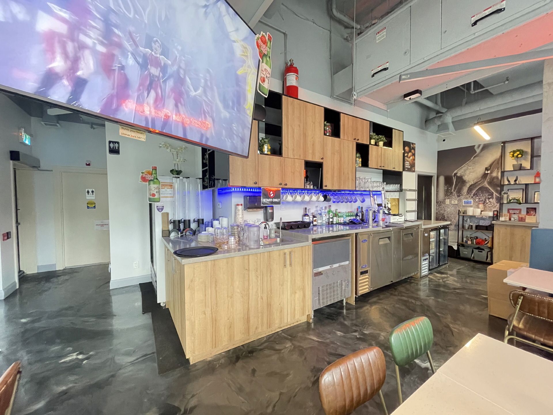Excellent location in liberty village condo commercial space. Great opportunity own a profitable franchise - weekly sales $27,000. One of the biggest k-chicken franchises. Fully equipped with 8 ft. Commercial hood, coolers, prepping area and 2 washroom etc. 40 seat (28 for llbo), 1400 sq. Ft, lease 2 years +5 years option to renew. Open 3~1:30(weekday), 3~2:30(weekend)
