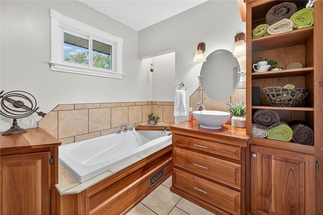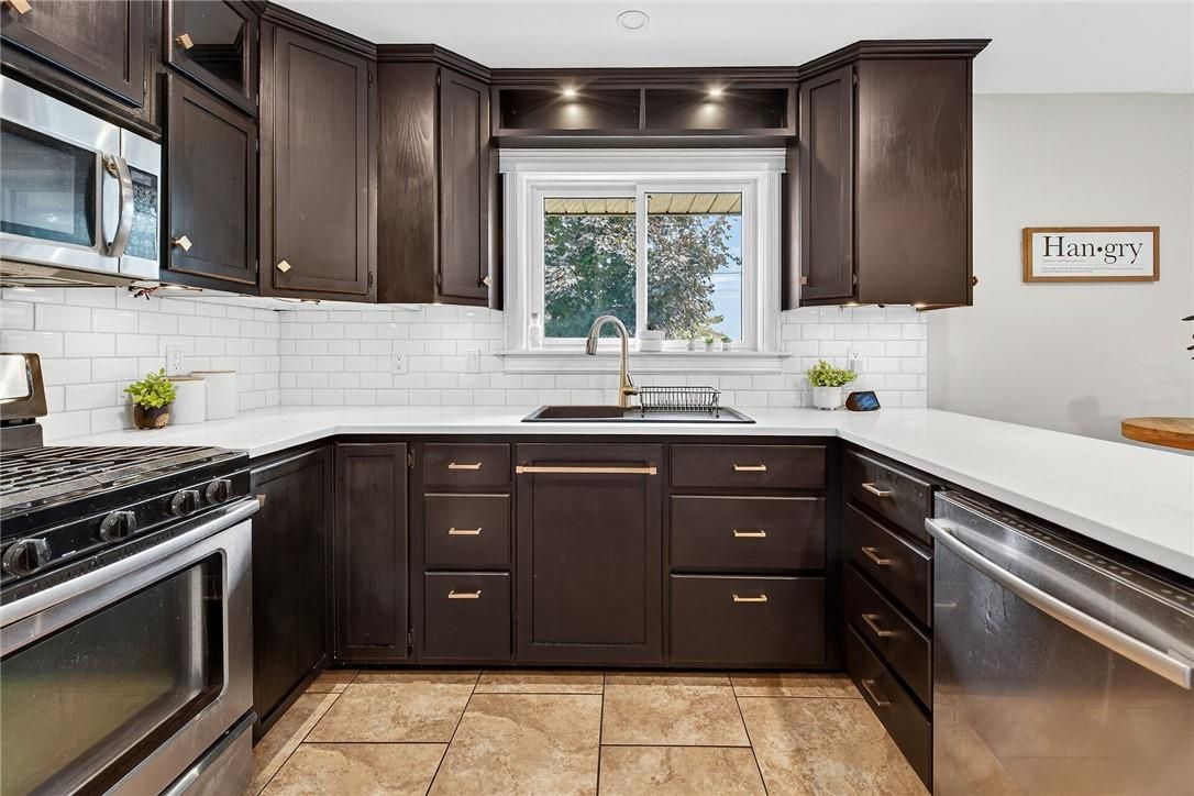• Upgraded kitchen with quartz countertops and rich cabinetry.