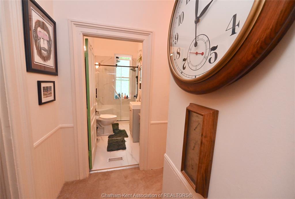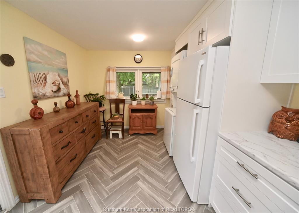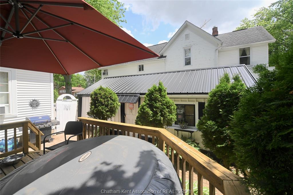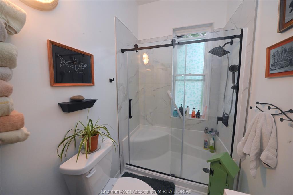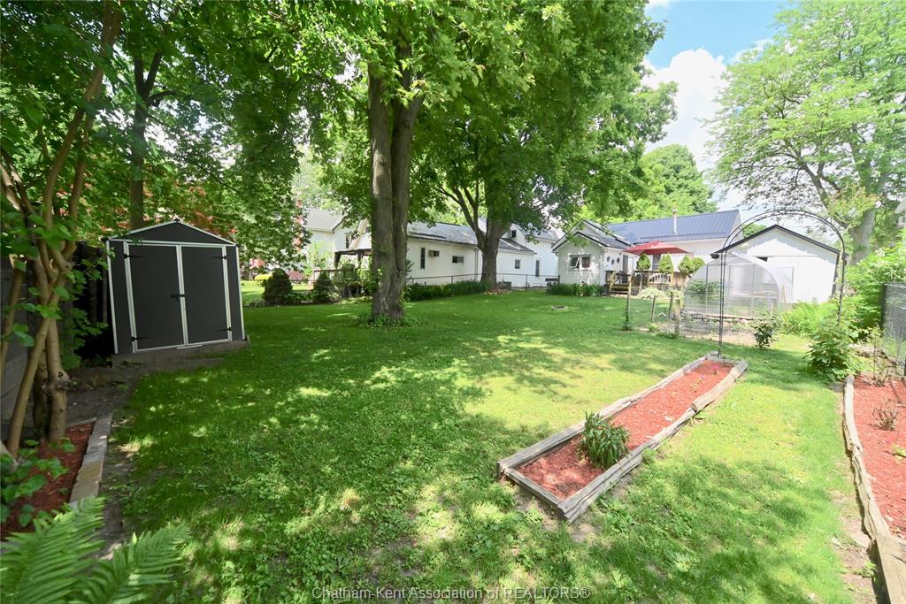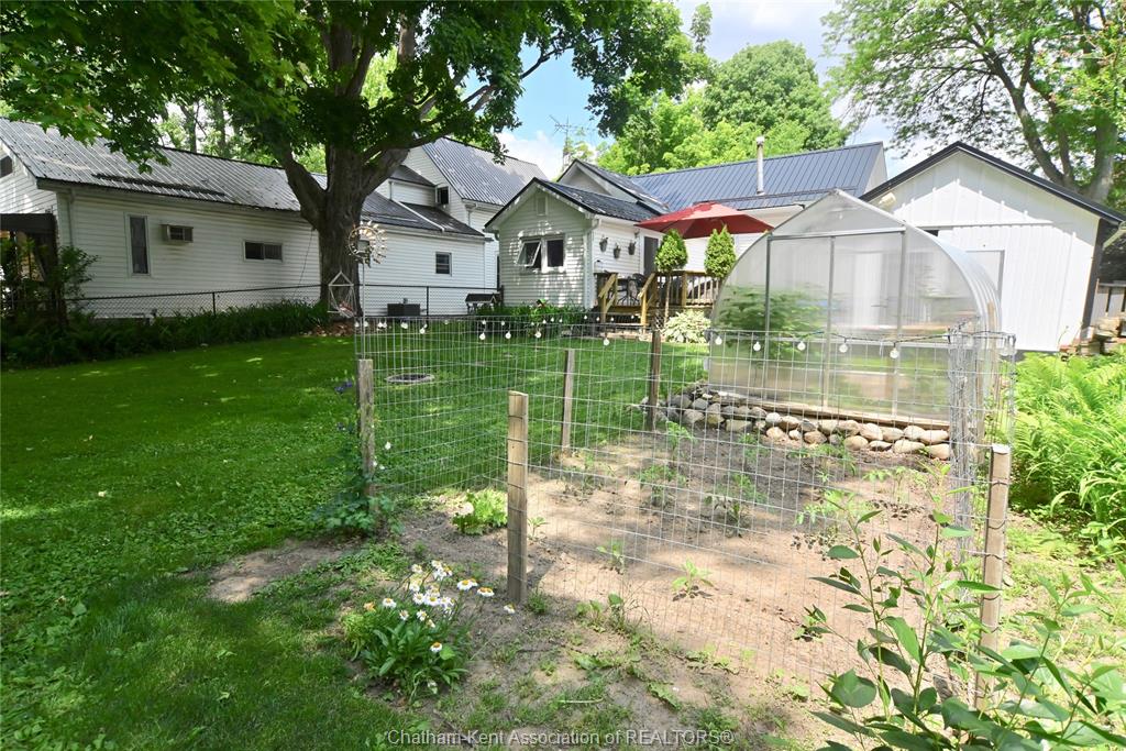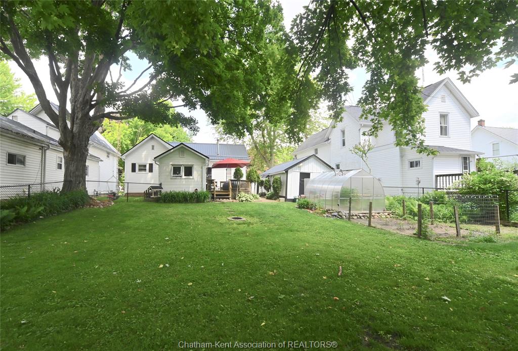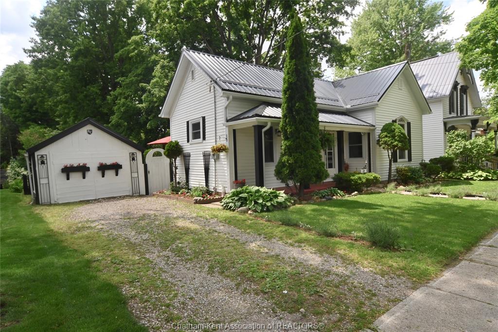 This little doll house dream is thoroughly renovated and ready for its new owner to turn the key and enjoy all of the updates. Right from the street this 3 bedroom beauty embodies all of that classic ridgetown century home charm and character with the welcoming covered front porch, trimmed out windows and original entry. Inside are high ceilings, a beautiful, bright new kitchen with laundry at the end, a skylight, and large sliding doors out to the backyard deck and patio. The new 3 piece washroom features an extra large custom tiled shower with seat, plus there's all new siding and windows, brand new furnace, and a new metal roof on the home and workshop. The workshop also makes a great storage space or extra large potting shed with hydro and lots of room, being the size of a single car garage. Gardeners will love the greenhouse with garden plot behind and the rows of berries and grapes already established for you. A handy new 12' x 8' garden shed keeps some storage out of your shop and the large, fully fenced backyard with mature trees is a great escape. This home is being sold "as is."