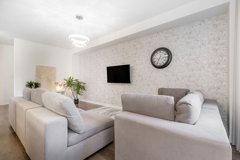 Welcome to 49 greenwood drive, angus a beautifully maintained freehold end-unit townhome built in 2018 by cassavia estate homes. Offering over 1,800 sq ft of modern living space plus an unspoiled basement with large windows, this home blends comfort, functionality, and convenience in one of angus's most desirable family-friendly neighbourhoods. Enjoy a private driveway and garage with parking for 3 cars, a fully fenced backyard with stunning gardens for the kids and dogs to play, and tranquil tree-lined views for added privacy. Inside, you'll find an oversized bright white kitchen with stainless steel appliances, a breakfast-bar island, and an open-concept layout ideal for hosting family or friends. The main level features direct entry from the garage, while upstairs offers three generous bedrooms and two full bathrooms. The primary suite feels spa-like, complete with a large walk-in closet, second closet, soaker tub, and separate shower. Convenient second-floor laundry and a water-softener system add everyday ease. This location is a commuters dream just minutes to base borden, 15 minutes to barrie, and 20 minutes to alliston, with quick access to hwy 27, hwy 90 and hwy 400. A new elementary school is being built in the subdivision, set to open in 2026, making now the perfect time to settle in. Families will love the nearby parks, playground, and21-km trail, while shopping, restaurants, fast food, grocery stores, and health-care offices are only moments away. With low property taxes, no condo fees, and a peaceful community feel, this is an exceptional opportunity for first-time buyers, down sizer's, or anyone seeking a newer, affordable home with style and space to grow!