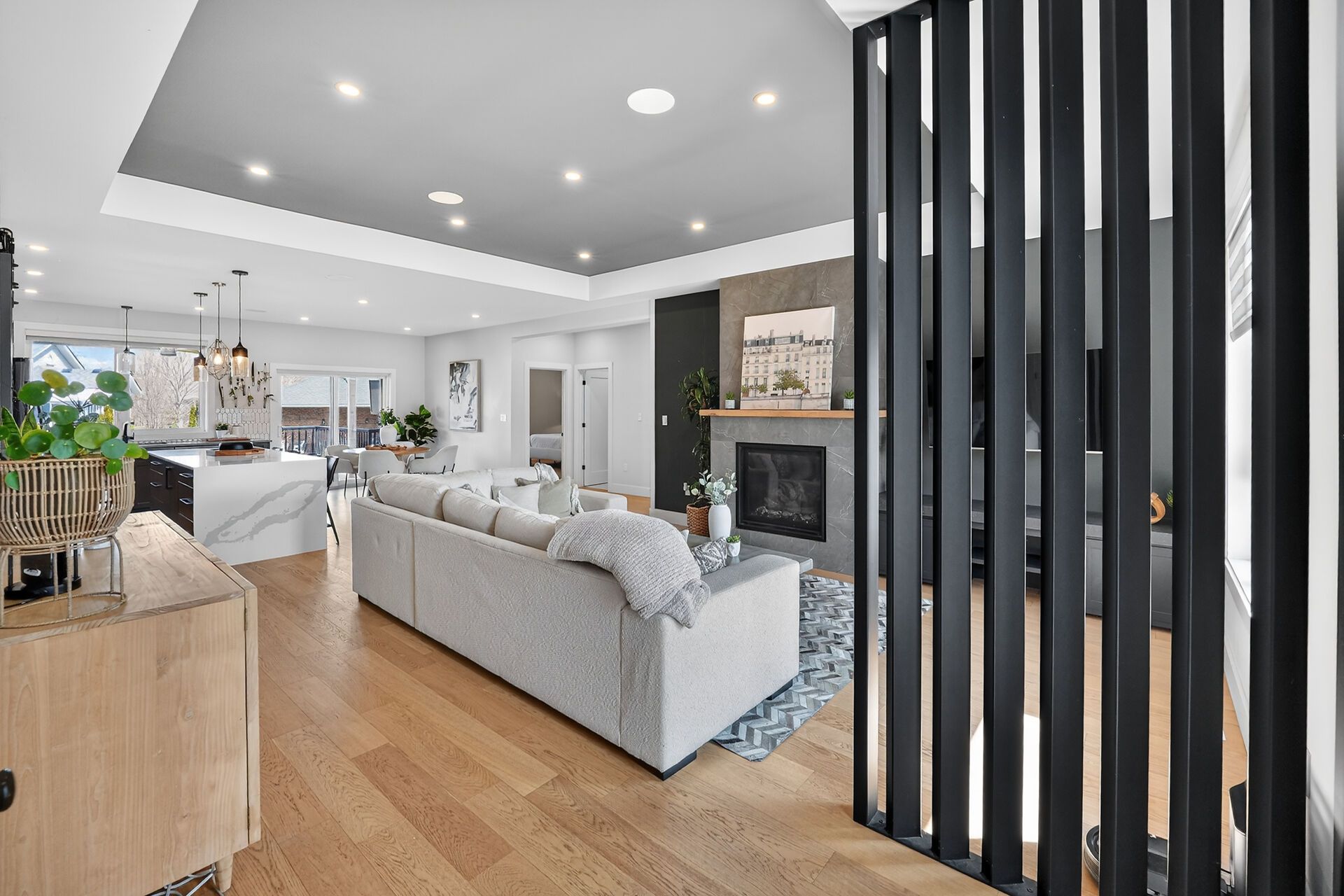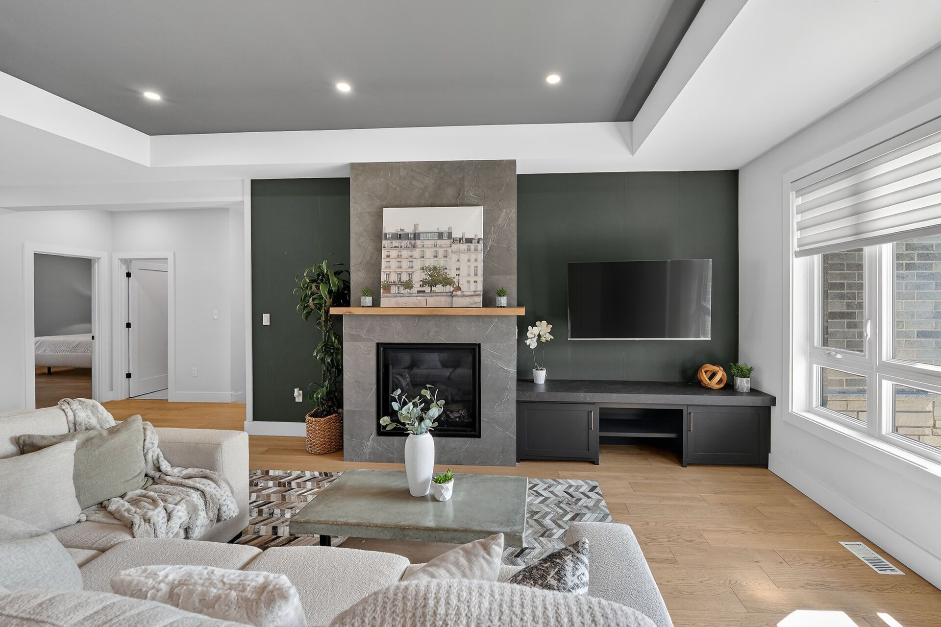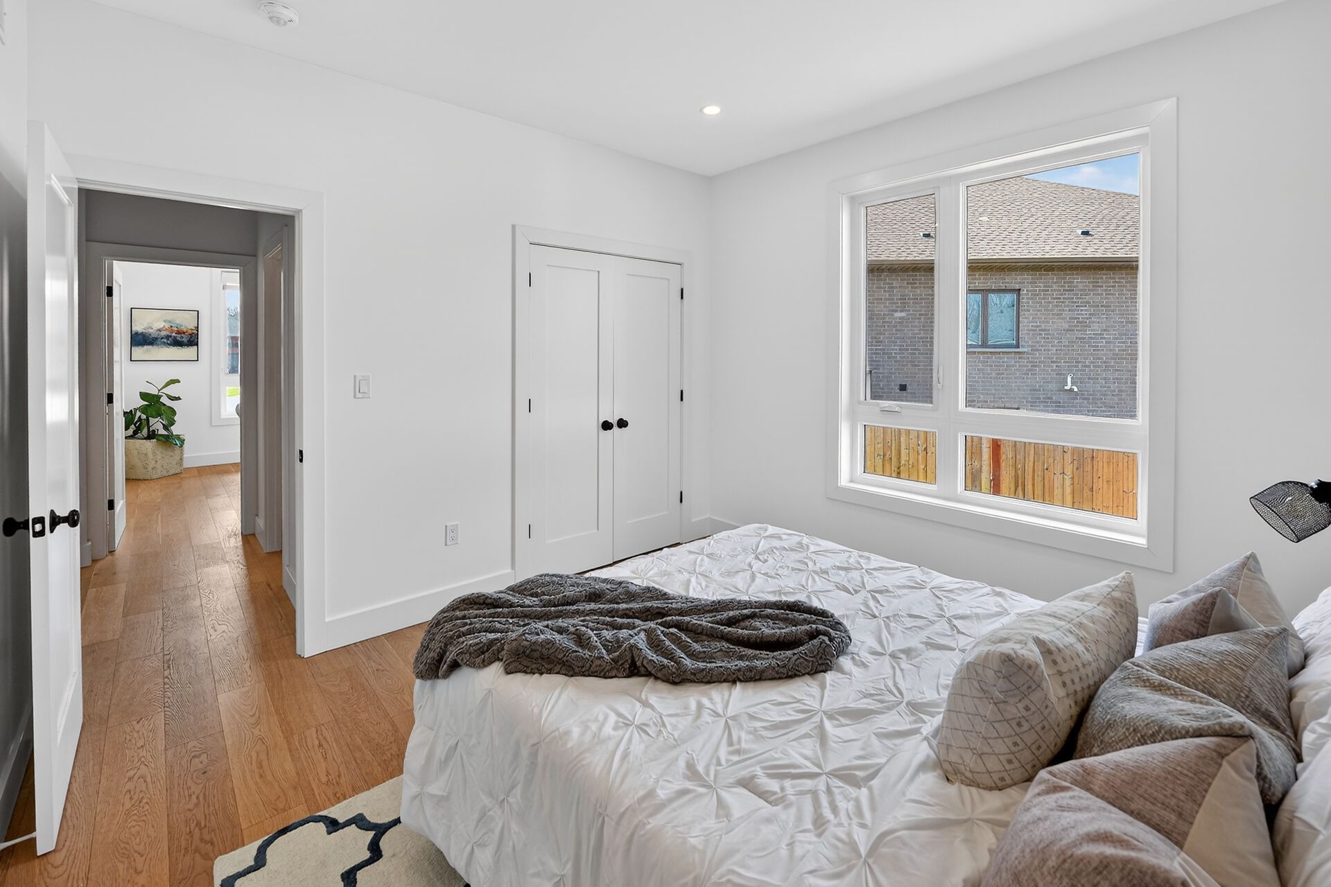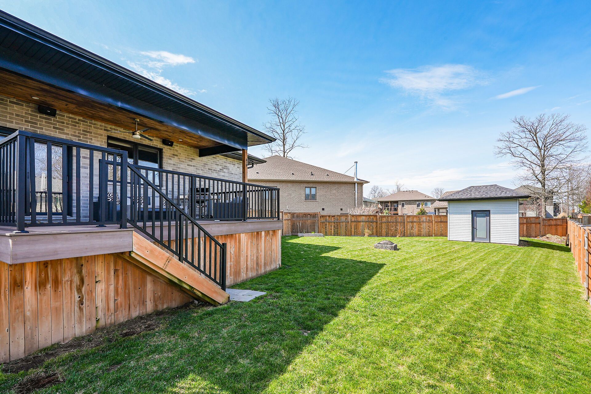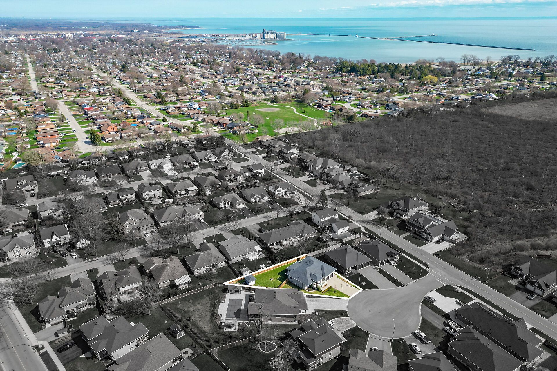 Welcome home to hickory court, a stylish, spacious bungalow impeccably presented and ideally located on a sizable, pie-shaped lot close to lakefront parks, beaches and all city amenities. Highlights of this sophisticated home include contemporary, upscale design and décor details, nine foot ceilings, sound system, hard wood floors, tiled gas fireplace, quartz counters, three main-floor bedrooms, primary bedroom ensuite (glass enclosed shower) and roomy walk-in closet. Enjoy finished lower level featuring fourth bedroom, third bathroom, large recreation room (second gas fireplace), convenient wet bar and ample storage. Impressive outdoor features include court location, aggregate drive, double-car garage (high ceiling, ev charger), front porch, glass railings, fully fenced yard and covered back porch with pot lights, tv mount and speakers. Perfectly situated close to schools, walking trails, wainfleet wetlands conservation area, popular restaurants and sugarloaf harbour marina.
