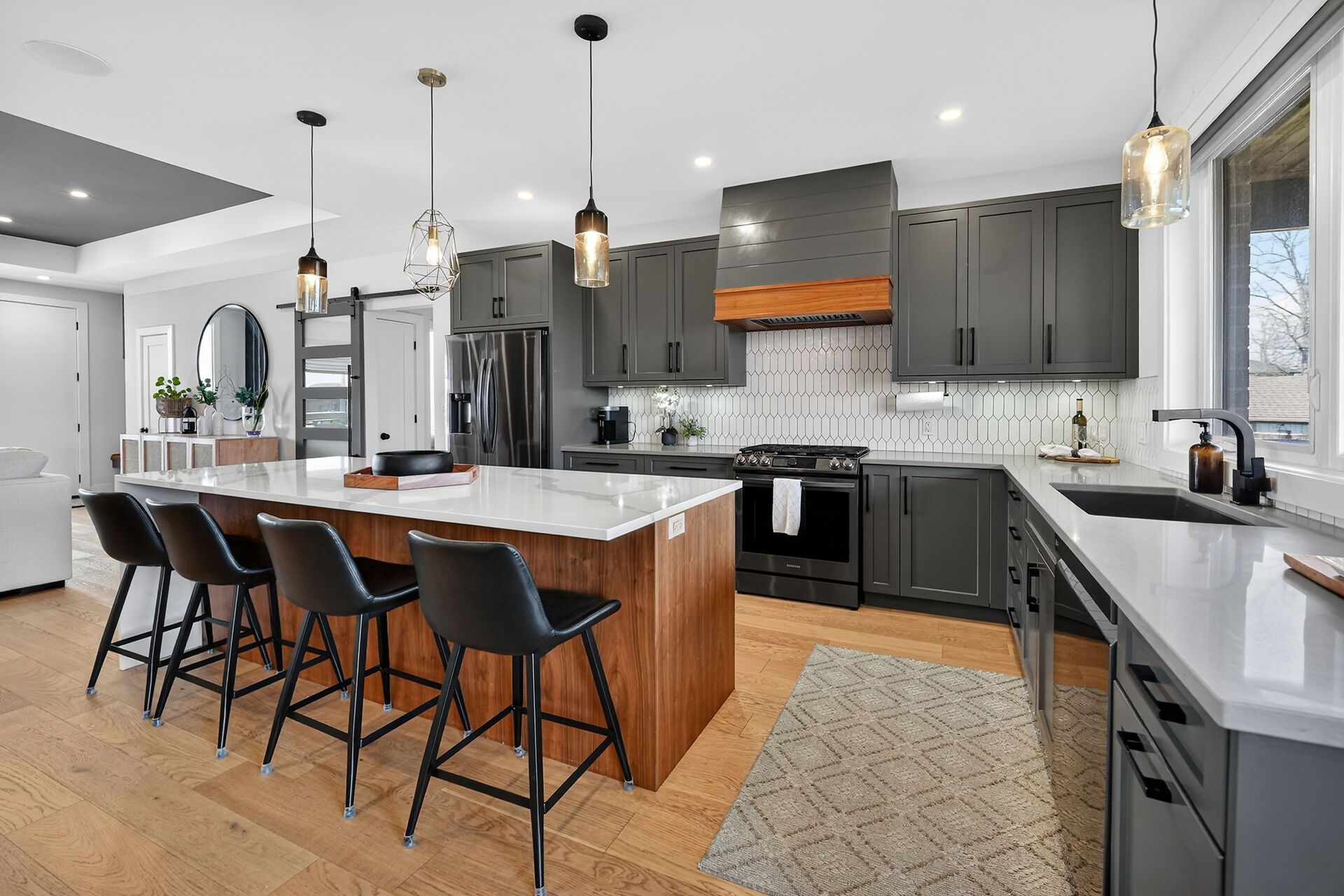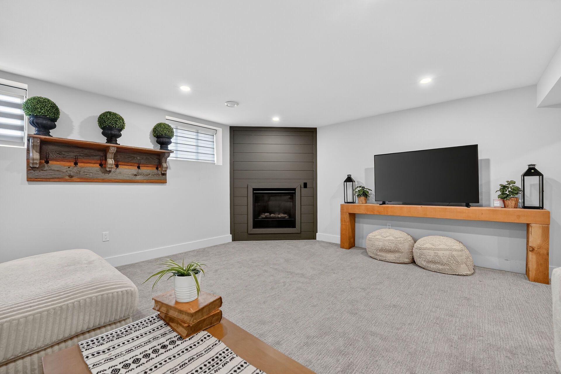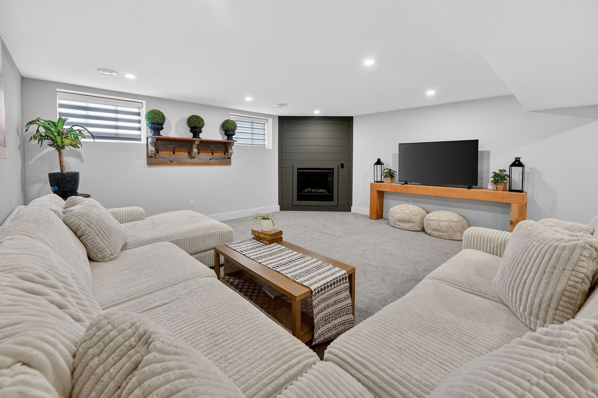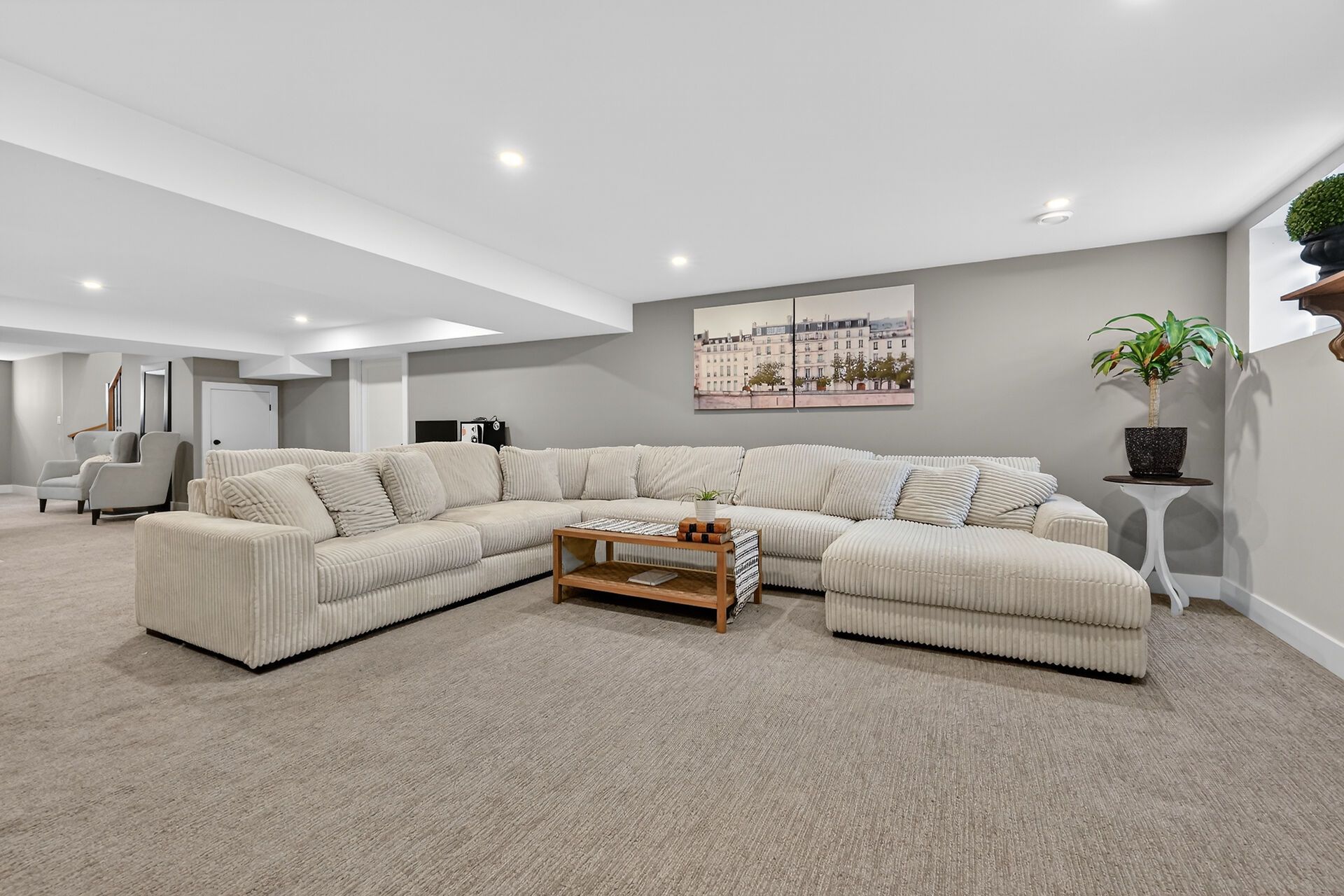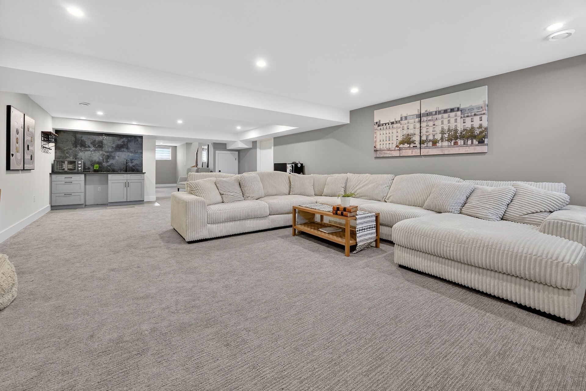 • Finished lower level includes a recreation room, fourth bedroom, and wet bar.