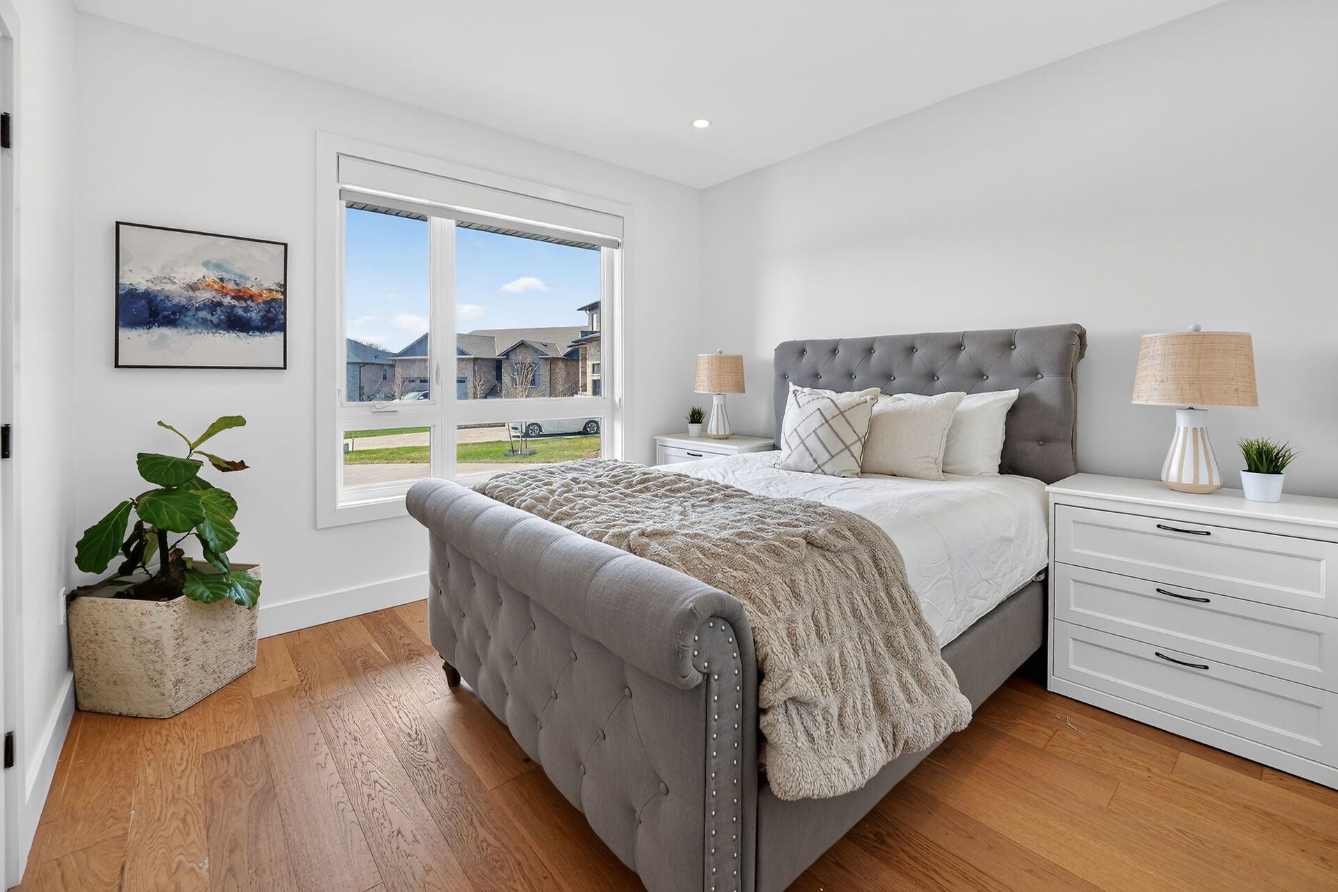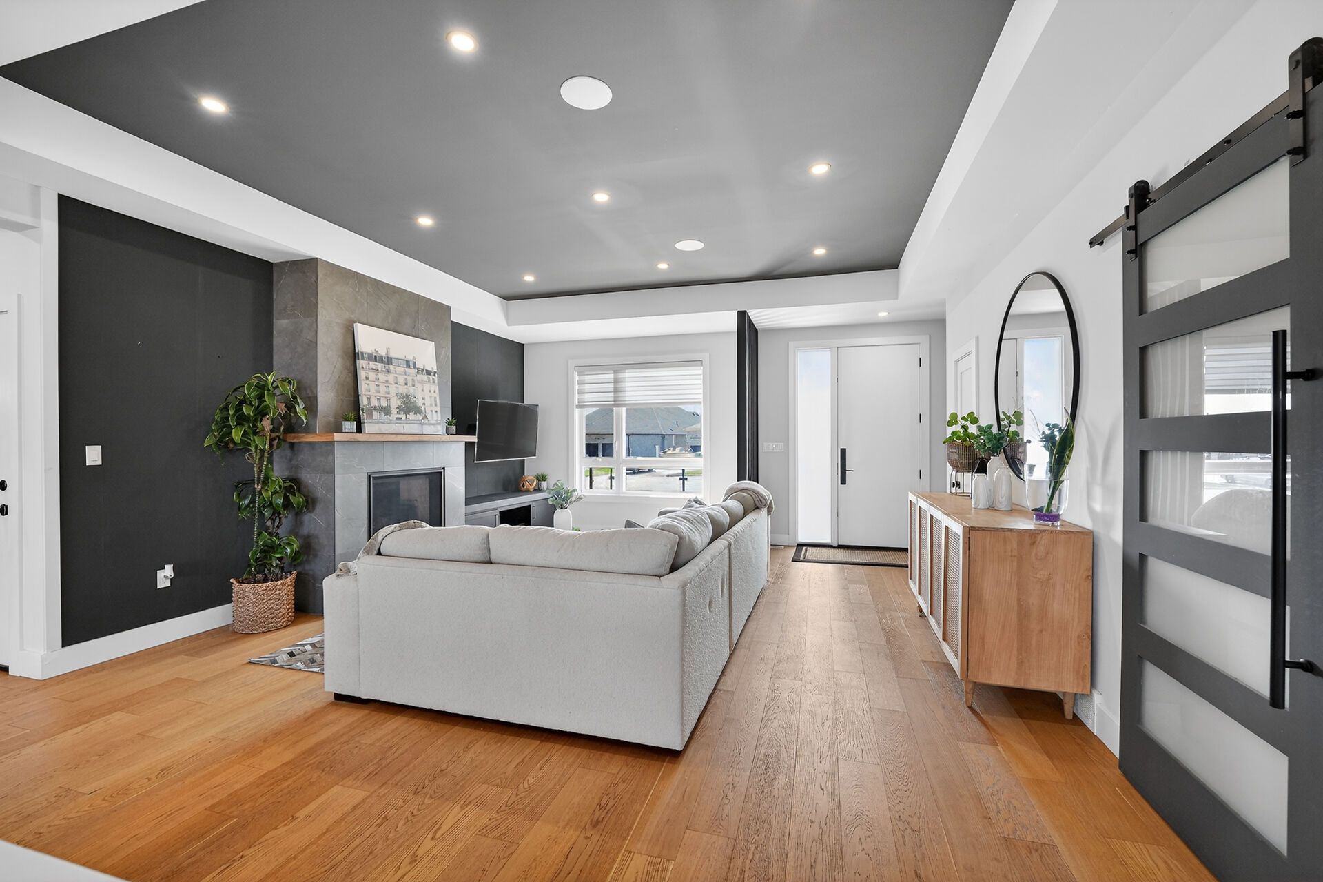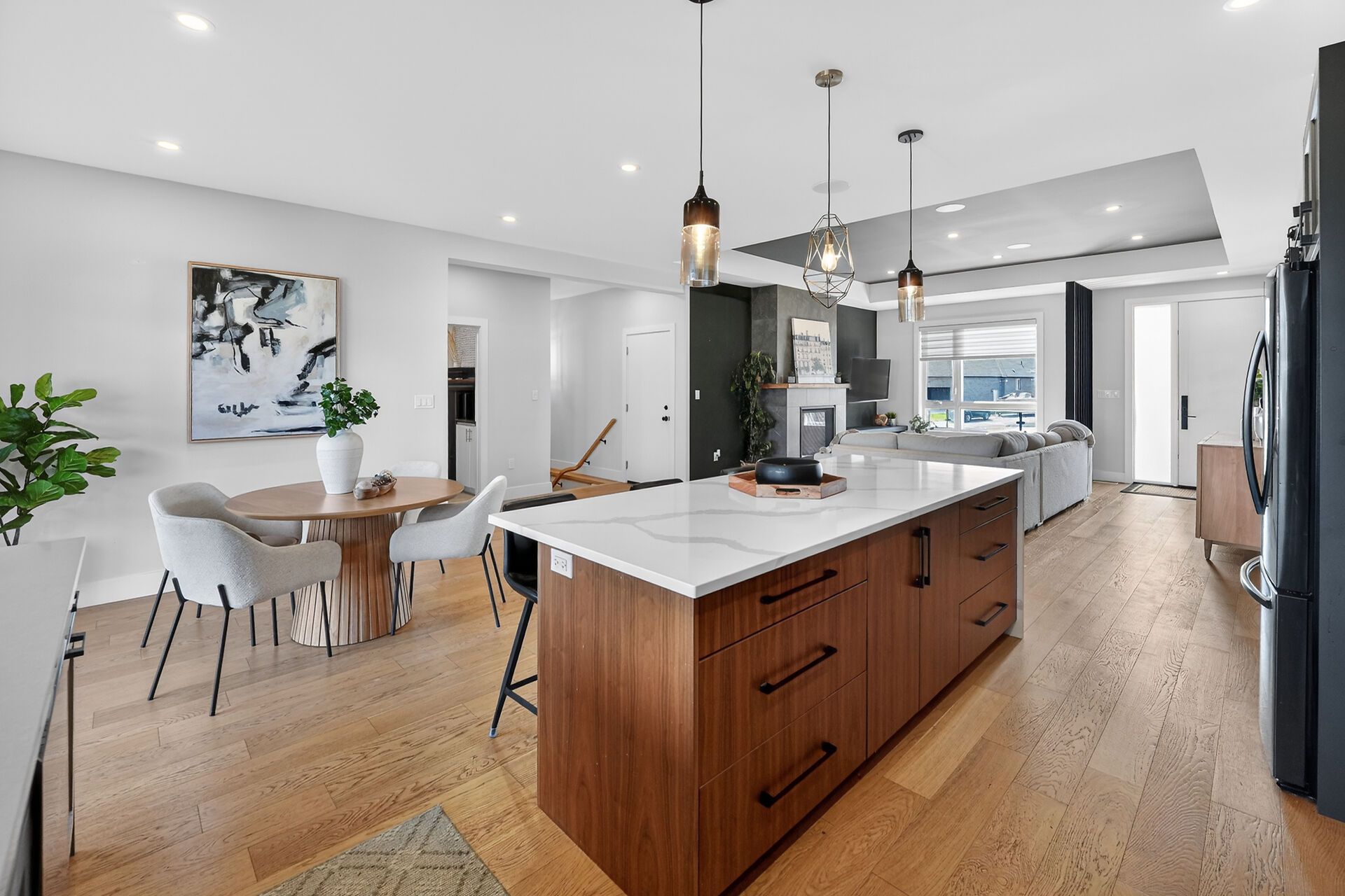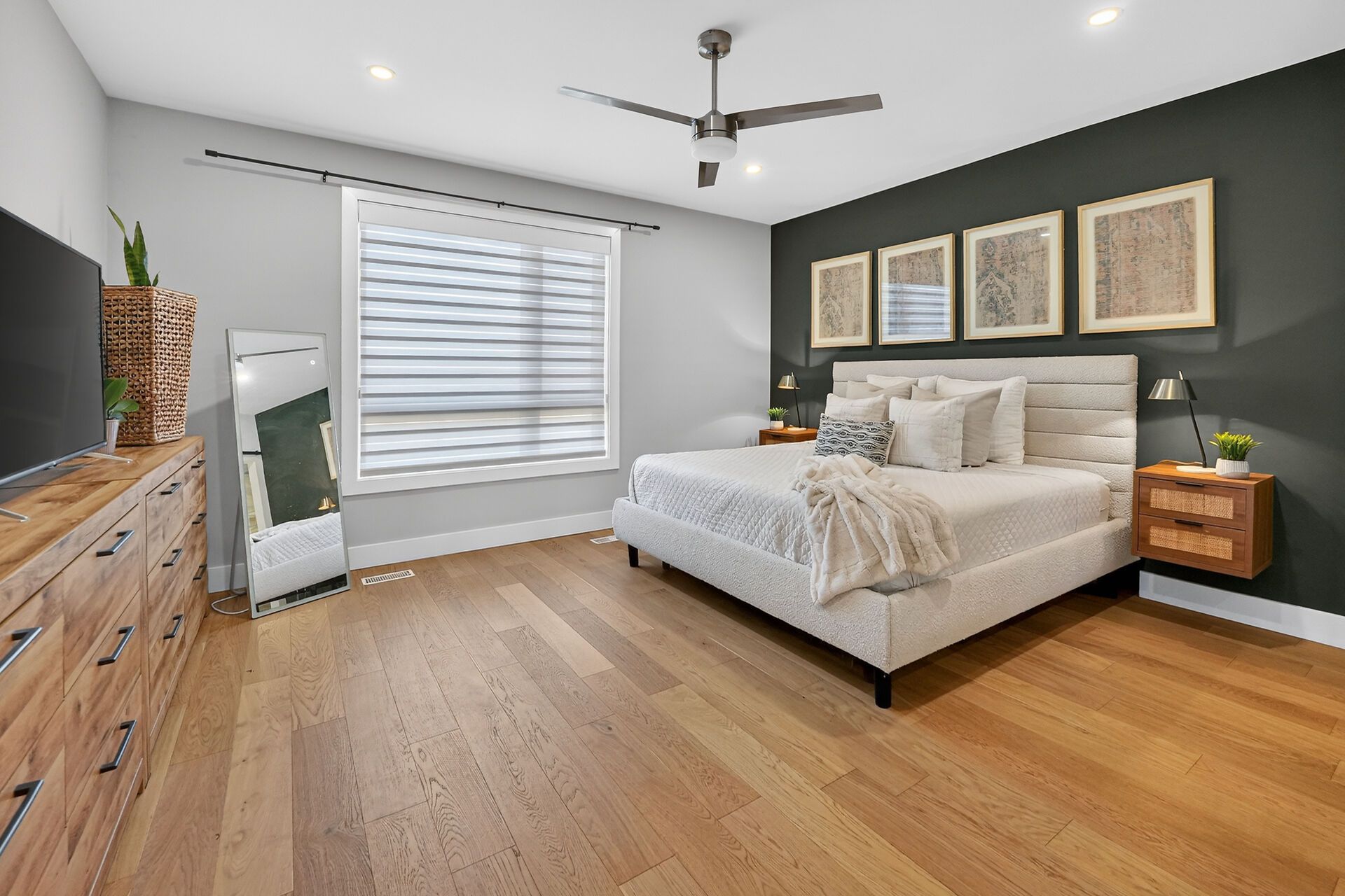 • Main floor features three bedrooms, including a primary ensuite with a walk-in closet.