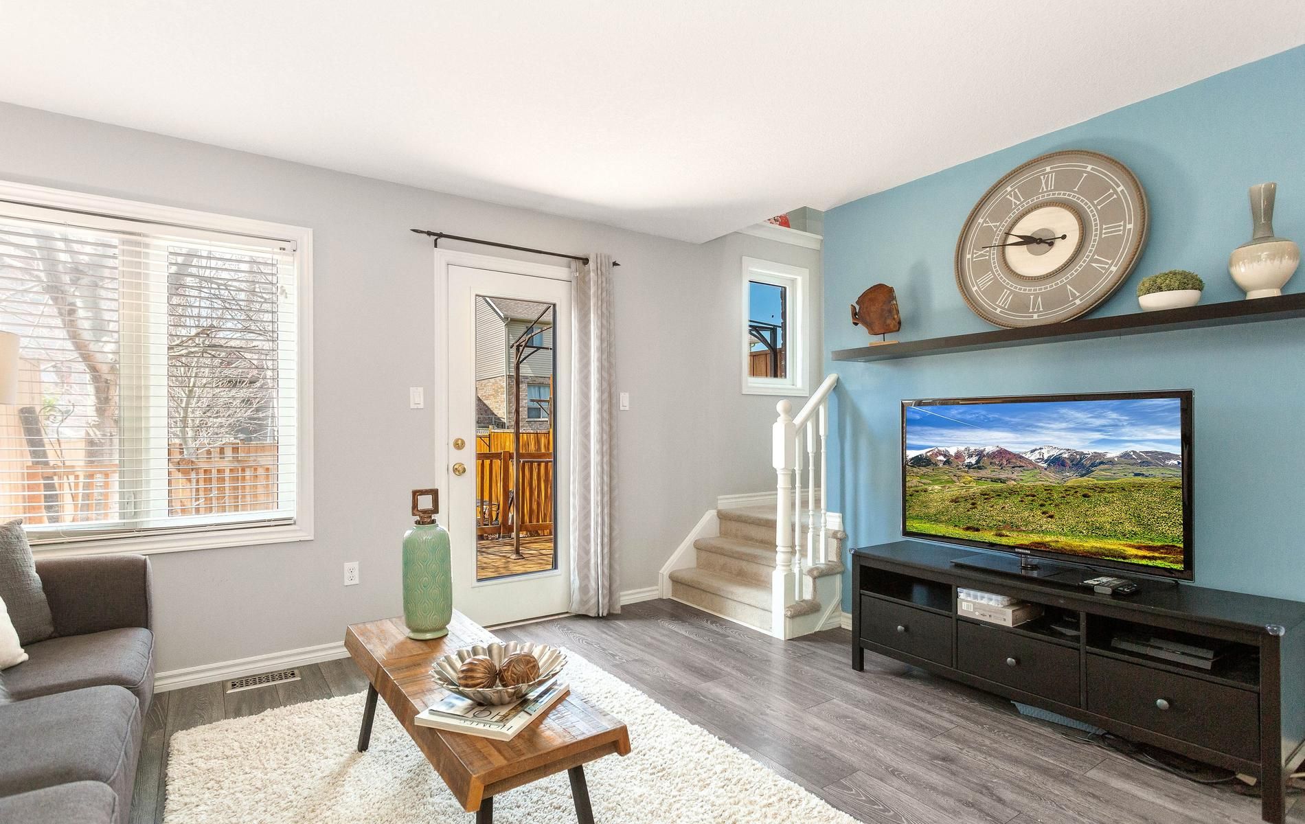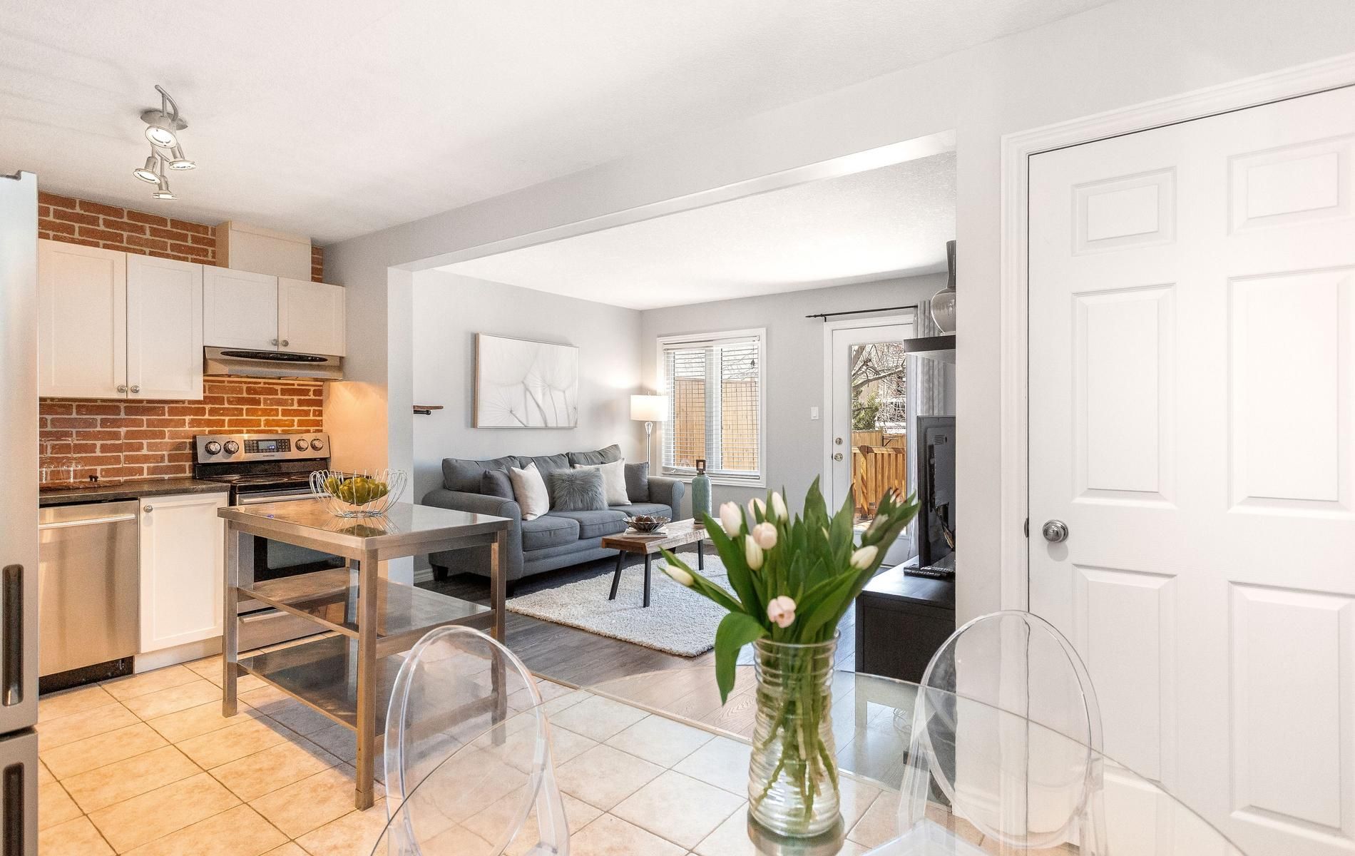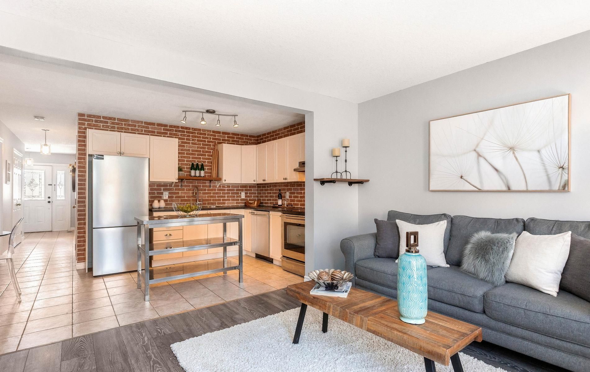 • Freehold townhome with an open concept main level for flexible living.