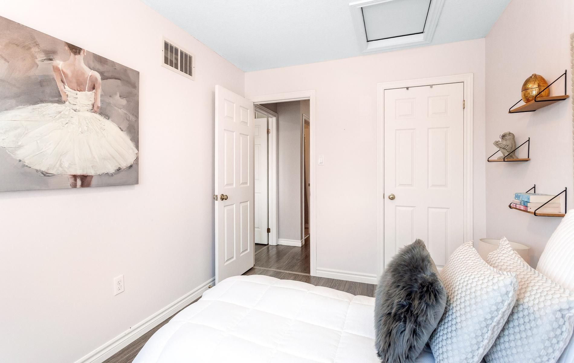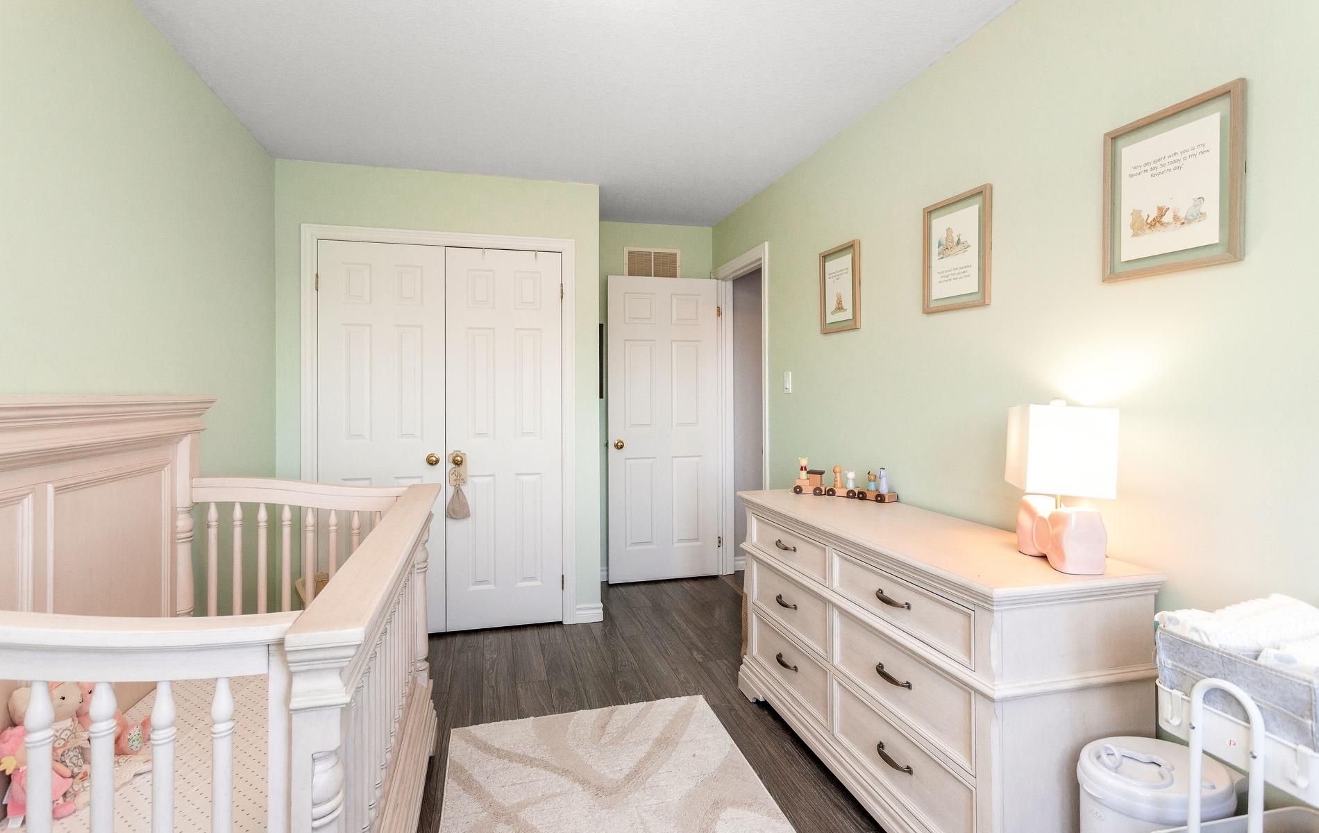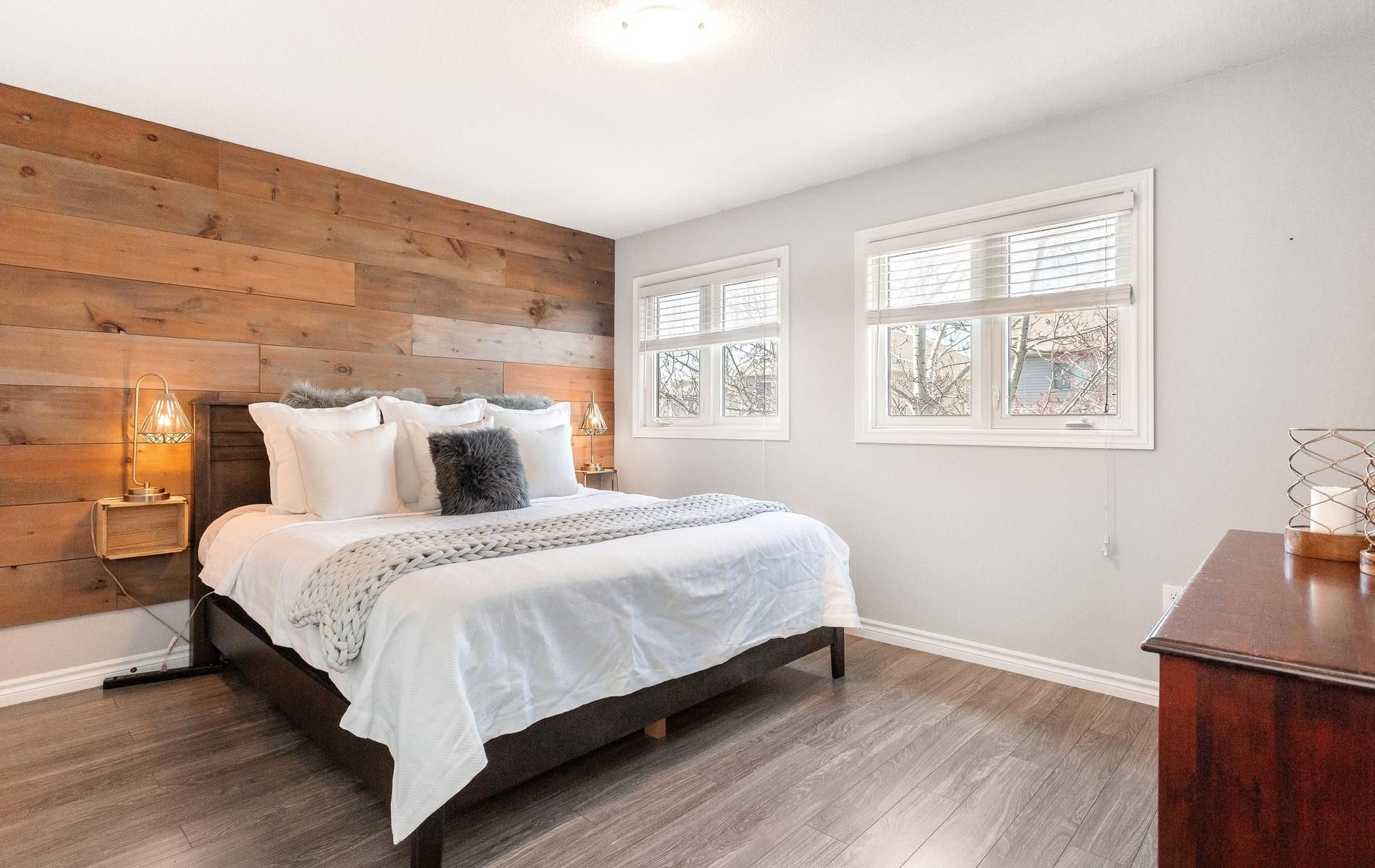 • Spacious primary bedroom with double closets and large windows.