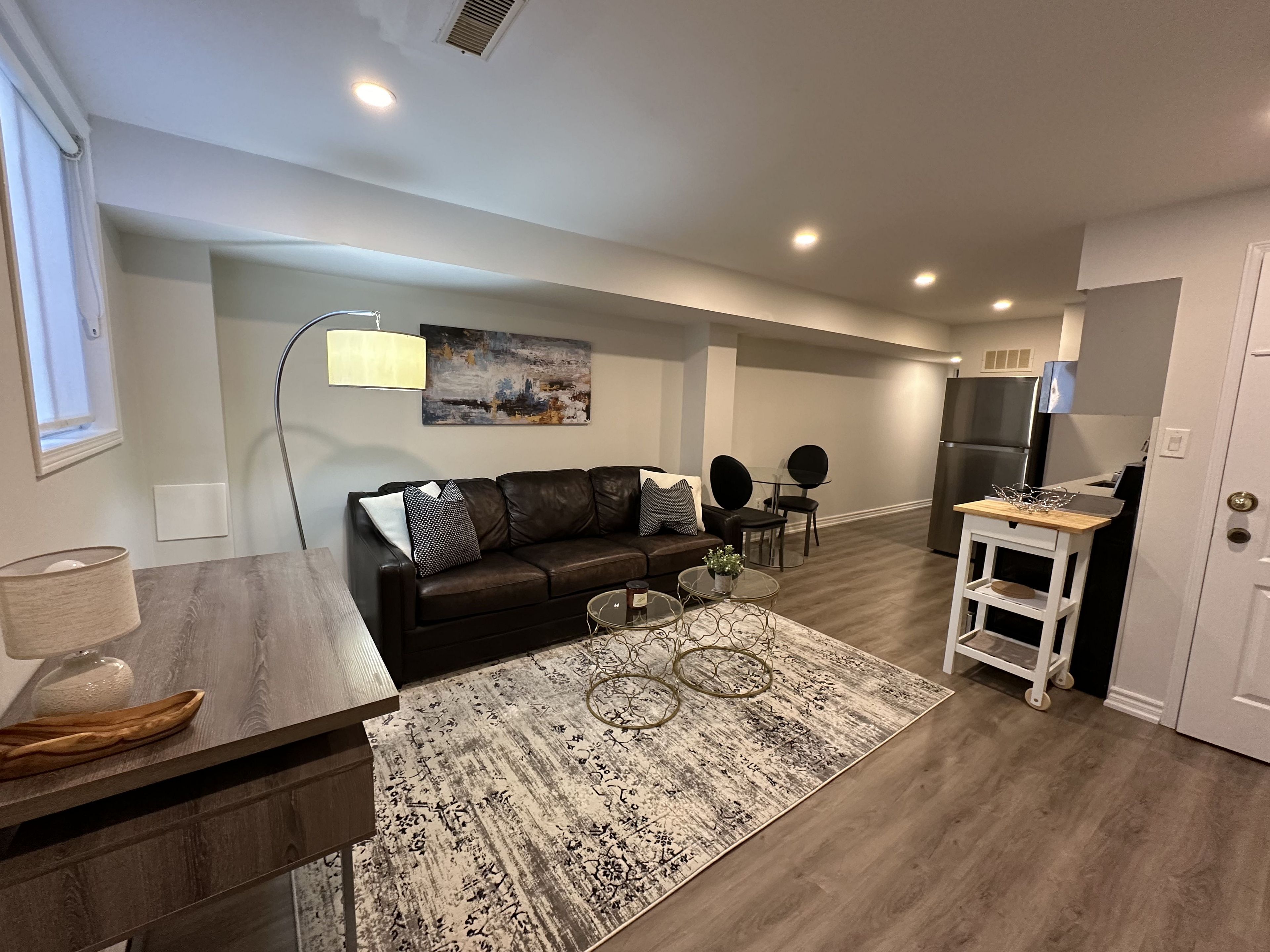 Take a look at this fully furnished executively designed basement apartment available immediately in the warm inviting leslieville neighbourhood. Experience an exceptional location packed with amenities right at your doorstep. This rental is within walking distance to various grocery stores, a community centre, the queen street streetcar, woodbine beach, lakeshore, bike paths, running trails, parks, and much more. Spanning just under 500 sq. Ft this property features a spacious primary bedroom suite w/ comfortable living room, in suite laundry, tv and dinning table. All utilities and internet are included. Outdoor street parking is available for free.