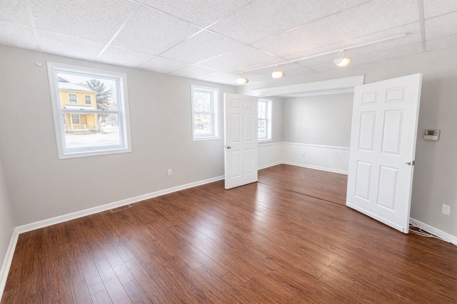Building for sale, not the business - outstanding fully occupied commercial main floor opportunity with well cared for mixed use building, perfectly situated in a thriving yet peaceful pocket of town. Just steps from the heart of the downtown business core and within easy reach of surrounding residential neighborhoods, the property offers convenience, flexibility for both commercial and residential uses. Its location makes it equally appealing to investors, business owners, and future residents. Main floor is designed for functionality and it's divided into two attractive commercial suites. One unit is home to a professional services office, while the other accommodates a medical treatment practice. Both spaces are thoughtfully arranged with reception areas, private offices, and storage, allowing for a wide variety of professional, service, or retail purposes. Their adaptable layouts provide security for current income while offering future potential for many business types. Above the storefronts, a vacant bright and spacious three-bedroom apartment with backyard access. The master bedroom offers a full ensuite bathroom and separate entrance. Flexibility makes the property not just a sound investment but also a place where someone could seamlessly combine living and working in one central location. Practical features further enhance this properties desirability. Two private parking spaces serve the residential unit, while on-street parking ensures convenience for commercial visitors. Modern updates include two natural gas furnaces and separate hydro services, ensuring efficiency and dependable utility management for multiple tenants. This properties location strikes the perfect balance whether you are expanding your portfolio, seeking steady rental income, or envisioning an ideal live/work opportunity, this mixed-use gem is one you won't want to miss.