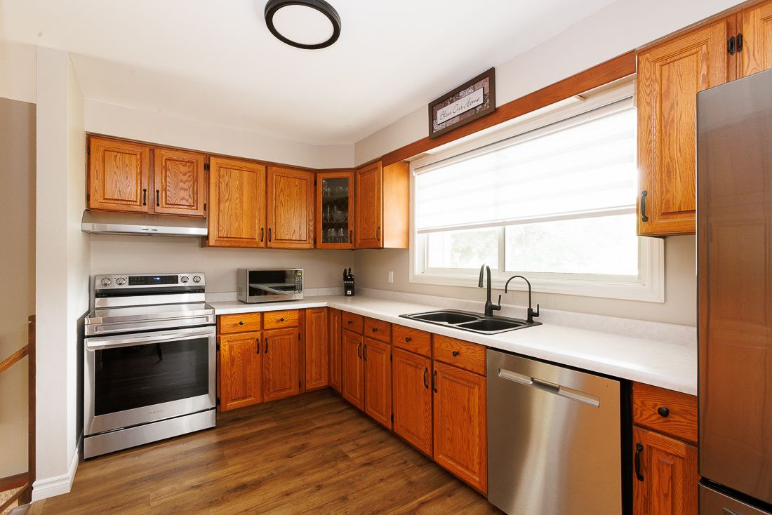 The pride of ownership can't be missed in this lovely home located in the beautiful village of bayfield. This spacious raised bungalow is perfect for a couple that likes to entertain; or for a growing family. The bright open main floor offers a generous sized living room w/ large picture window & electric fireplace; adjoining dining room; eat-in kitchen w/ newer stainless steel appliances, new matte black sink/faucet & plenty of storage. The main floor also includes the primary bedroom; 2 additional bedrooms; updated 4-piece bath w/ granite countertops & ceramic tile flooring. The lower level has a large family room w/ original stone gas fireplace, pool table(included), new carpeting & deeper windows, providing tons of natural light. The lower level also includes a 4th bedroom; bright laundry room w/ newer front load/high efficiency washer & dryer. The perfectly cared for back yard w/ wooden deck, flagstone, manicured gardens & privacy fence is a great place to relax & unwind. The attached single car garage is fully insulated w/ automatic door opener & direct access to the house. Numerous updates include: luxury vinyl flooring(including new sub floor), new modern light fixtures, new hvac system w/ high efficiency gas furnace & central air, new carpet, freshly painted throughout, new trim & interior doors, new stair treads, new window coverings, new electrical panel & all new appliances. Close to the beautiful shores of lake huron, parks, golf courses, shops, restaurants & bayfield's historic main st. Don't miss your opportunity to own this move-in ready home in the heart of bayfield!