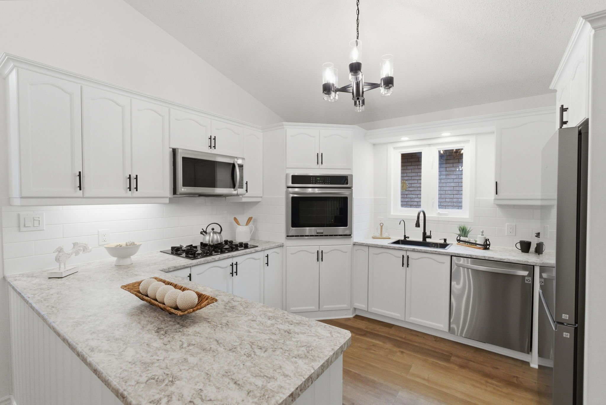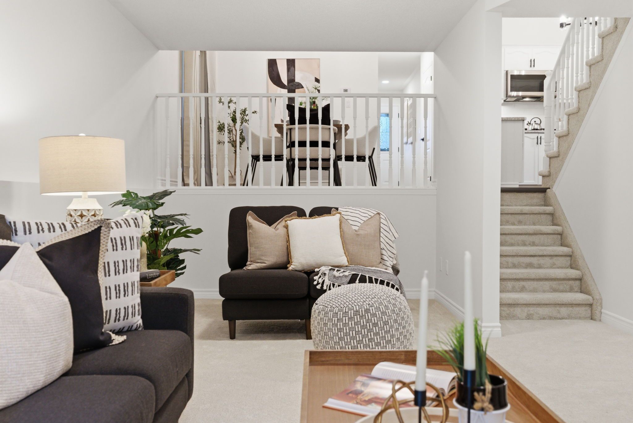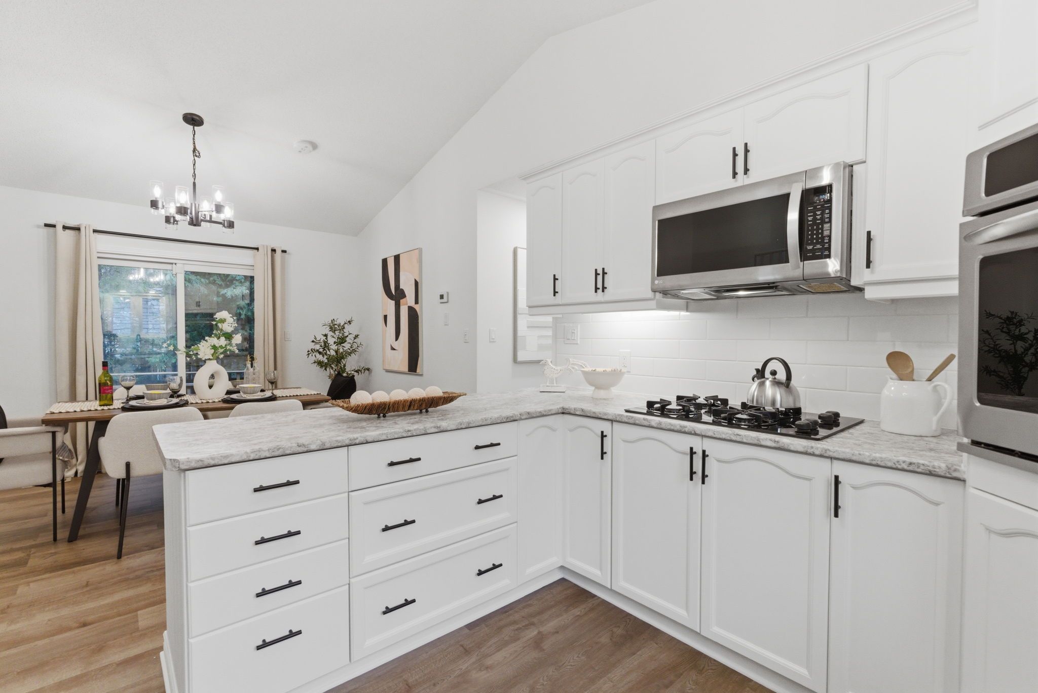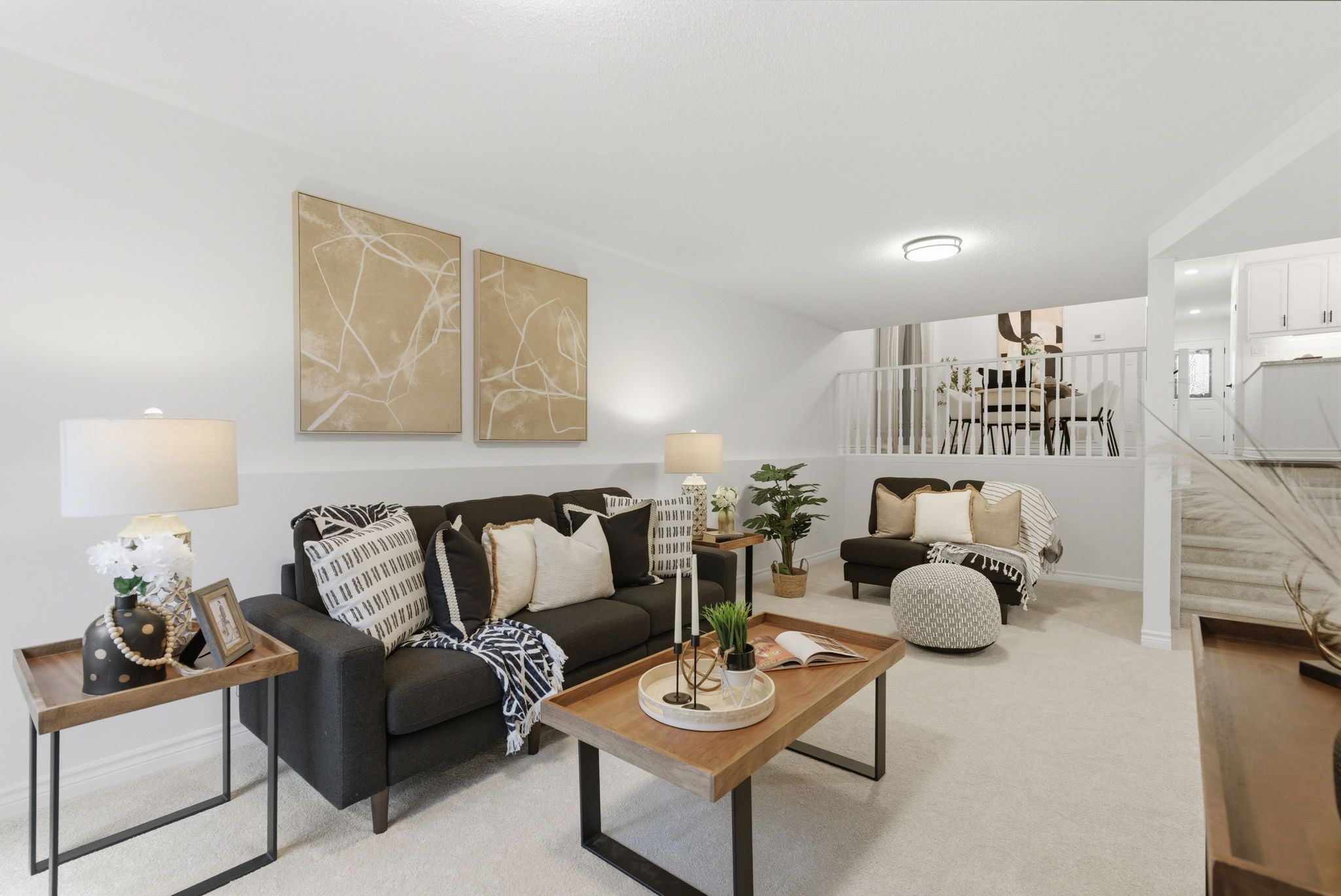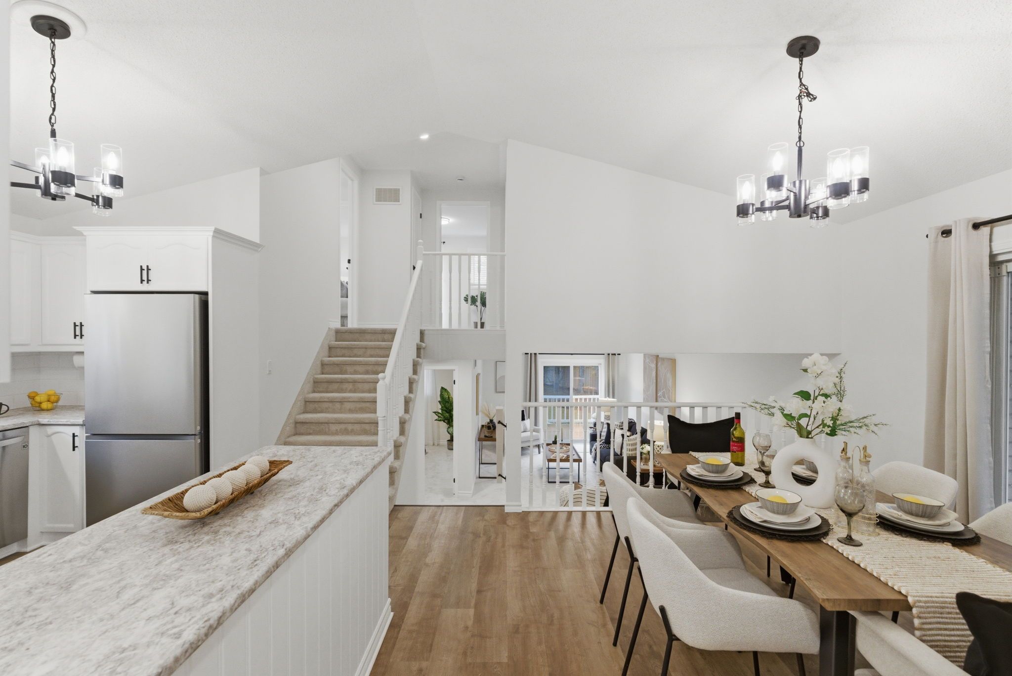 • Spacious open-concept kitchen with stainless steel appliances and ample counter space.