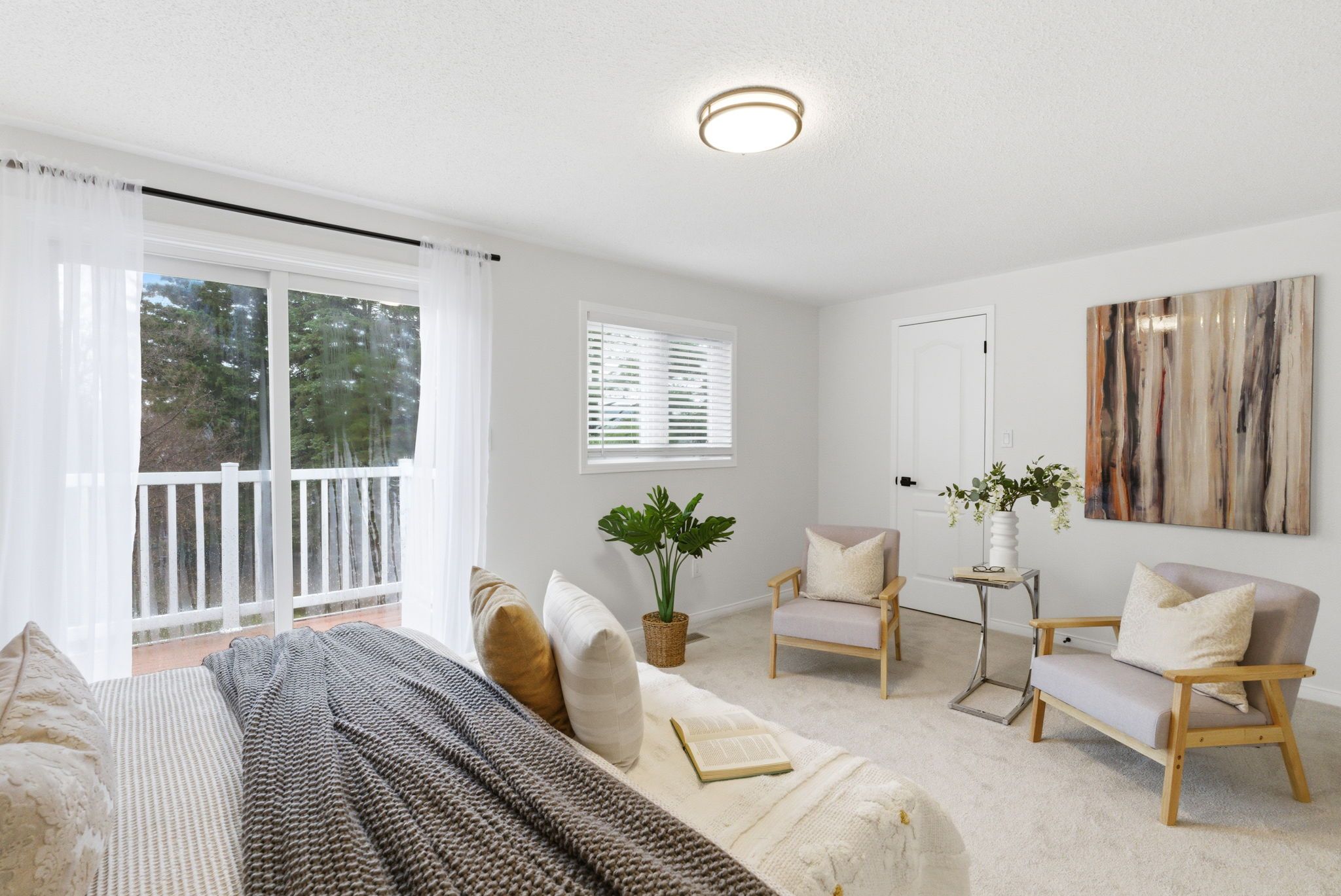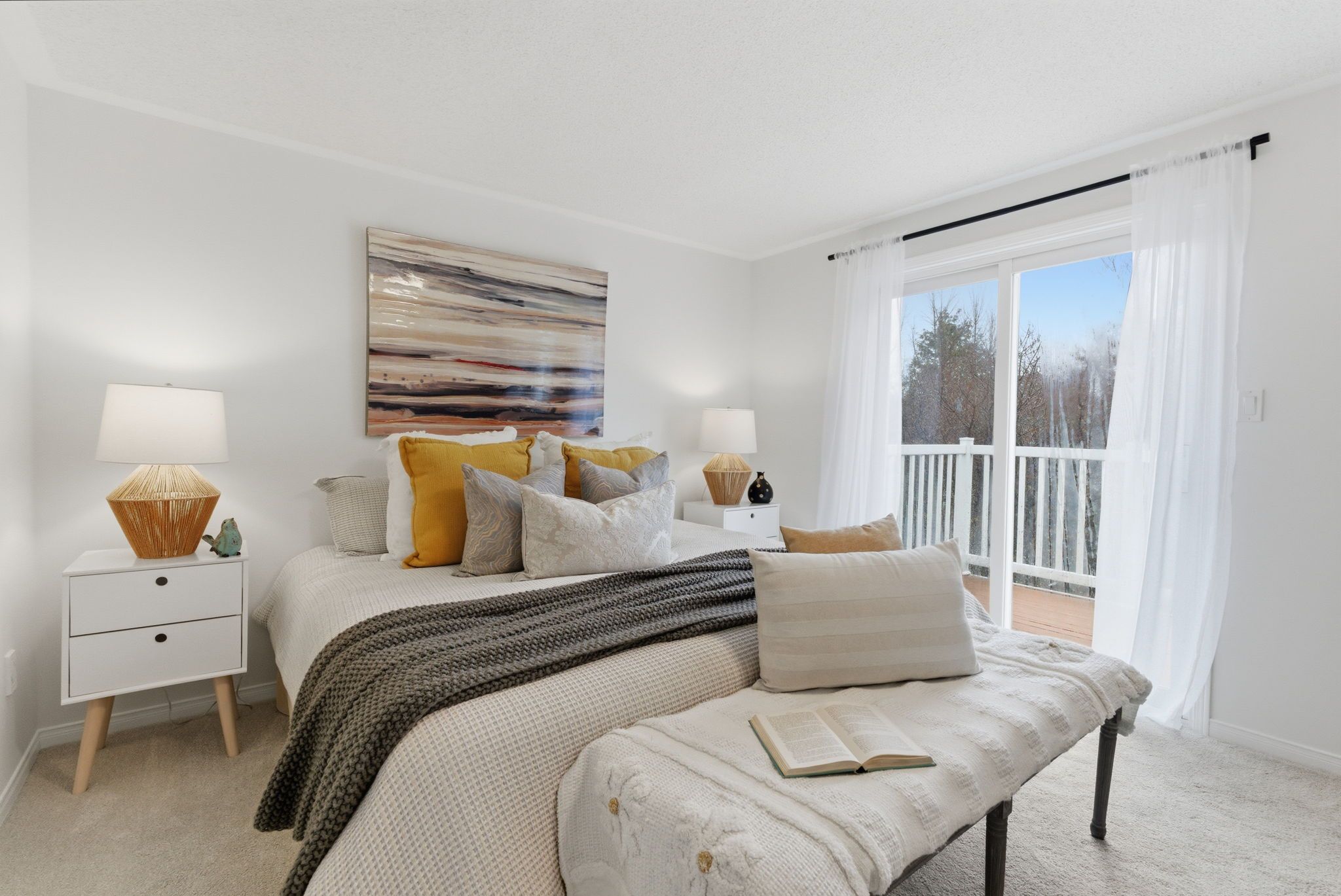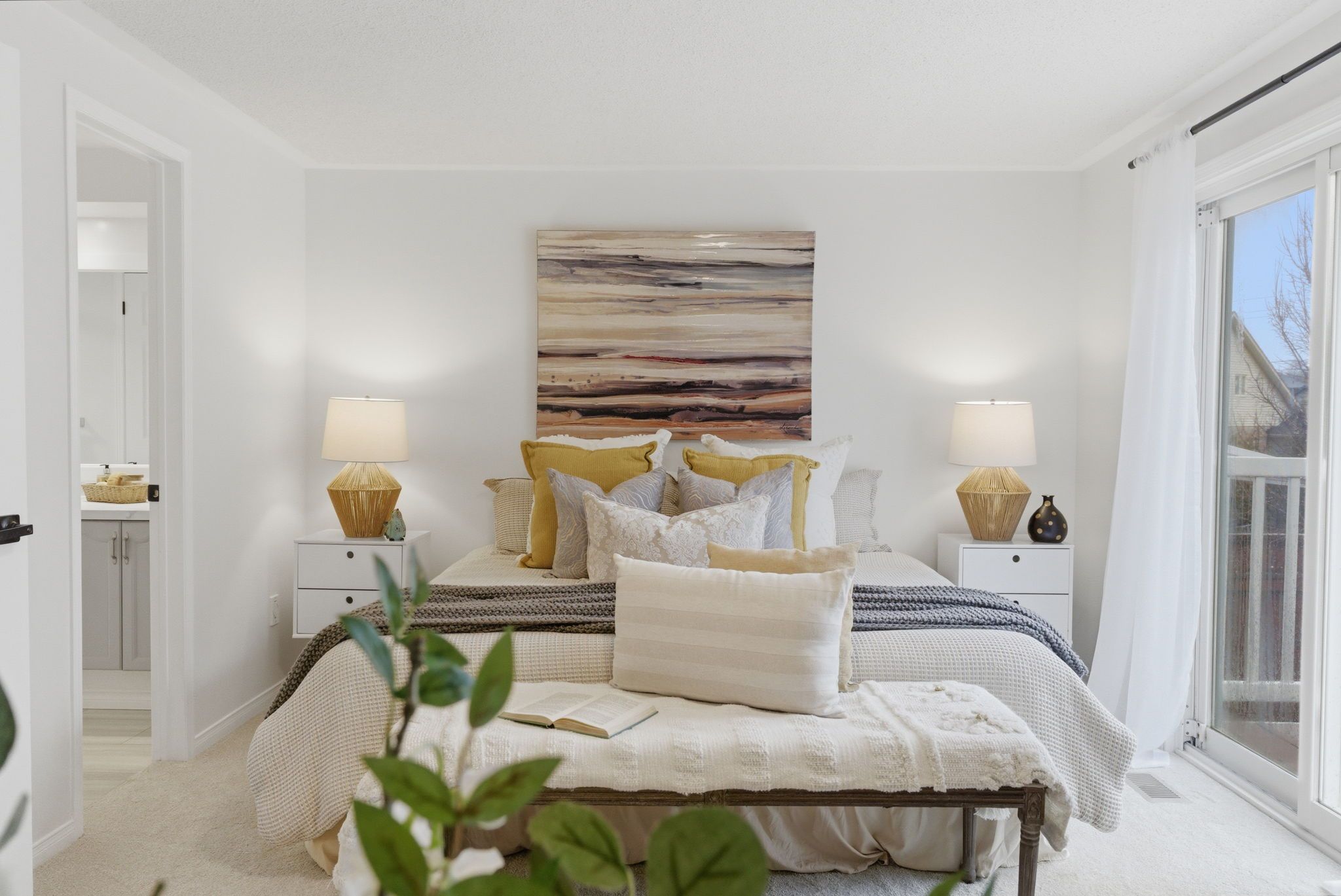 • Primary bedroom features ensuite access, walk-in closet, and private balcony.