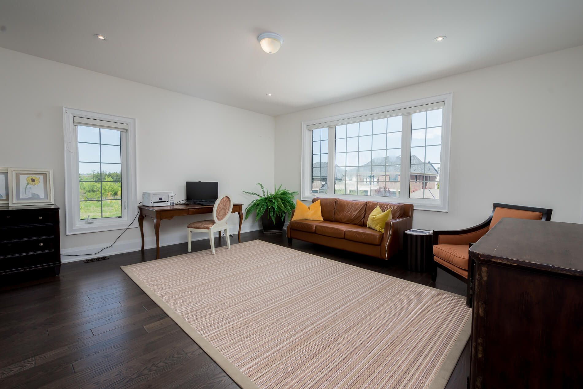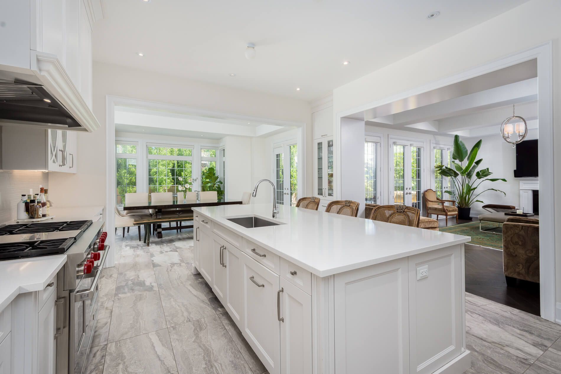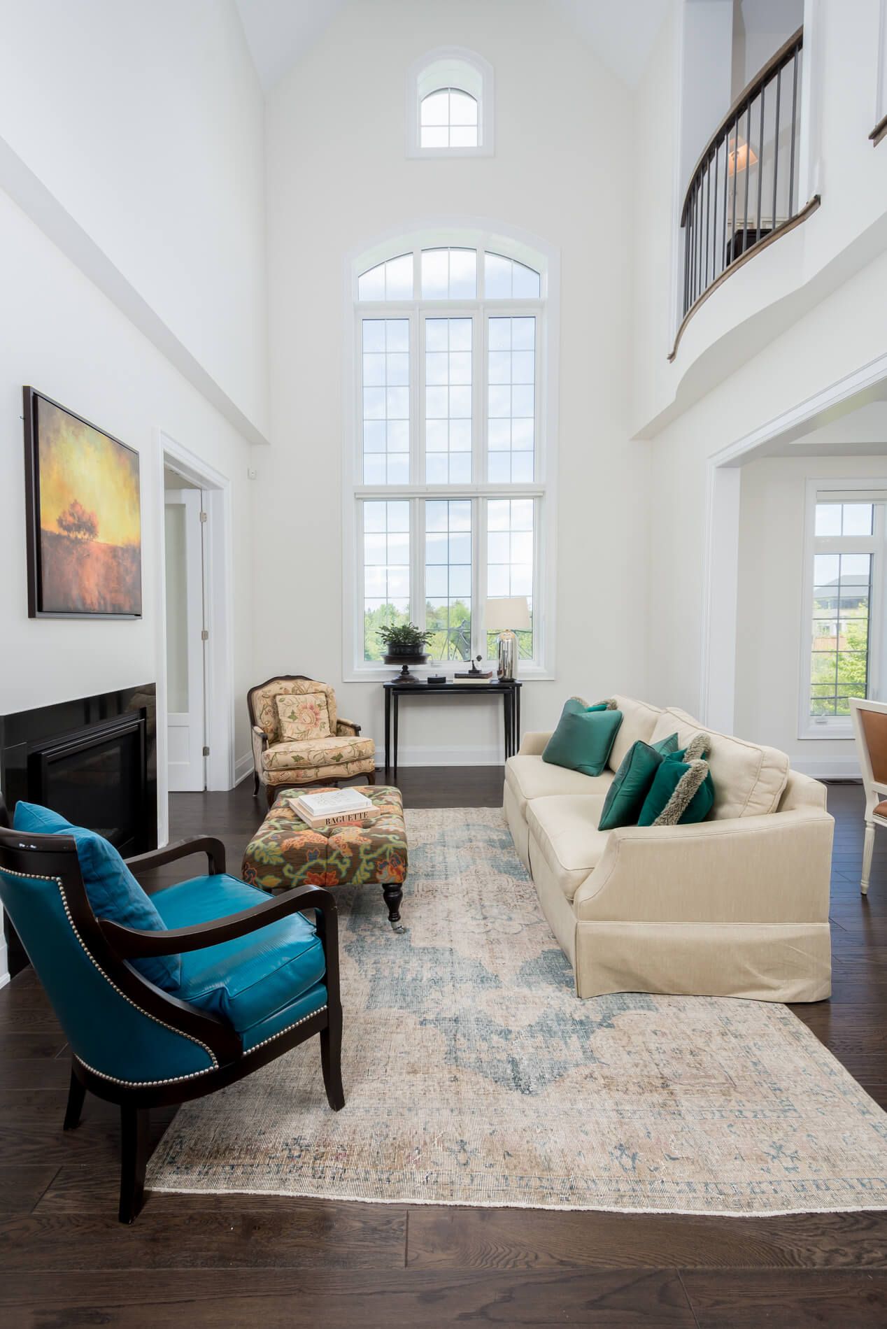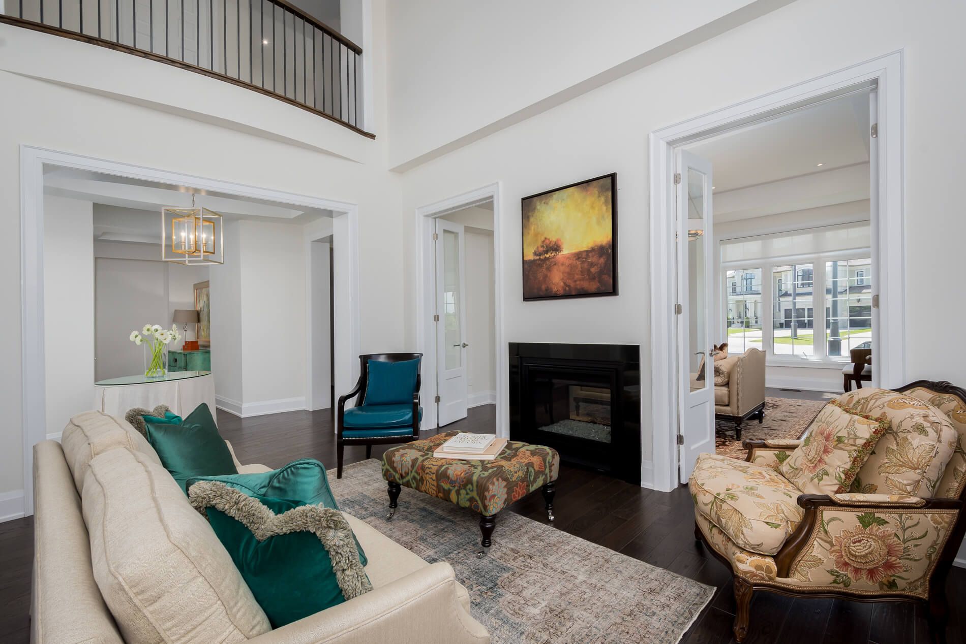 • Expansive family room with high ceilings and natural light for a welcoming atmosphere.