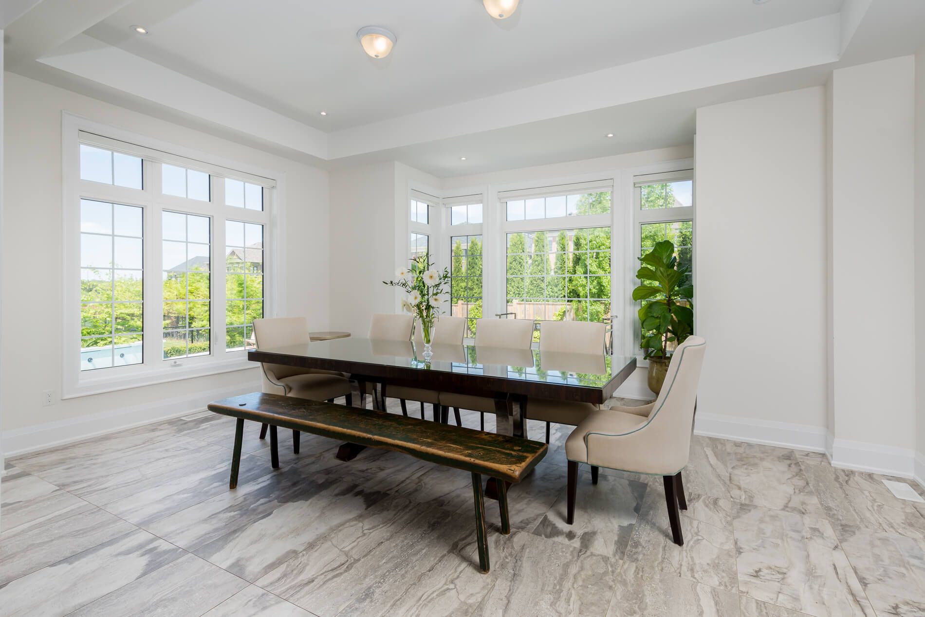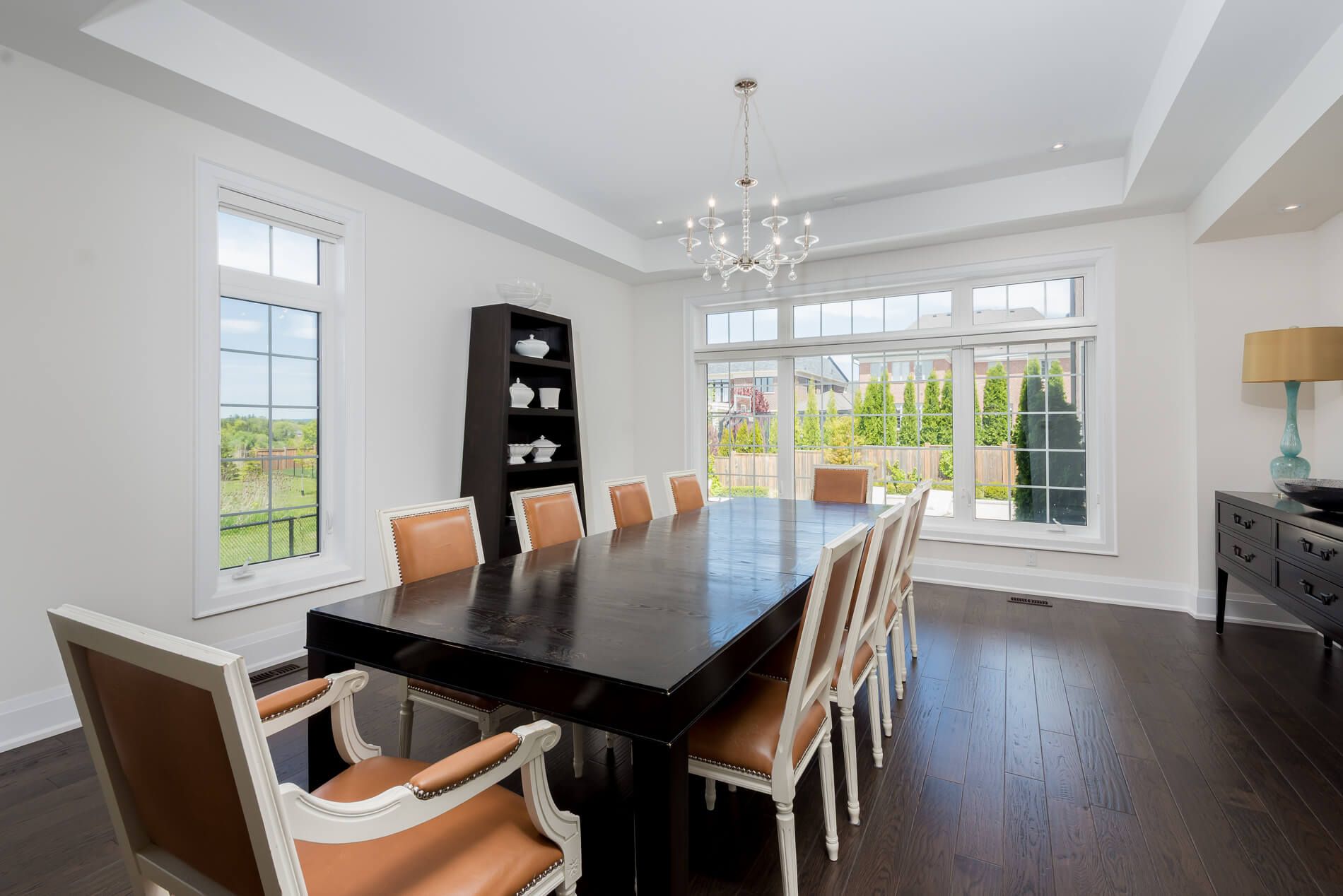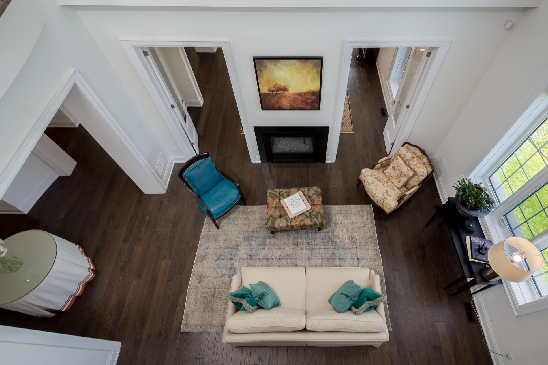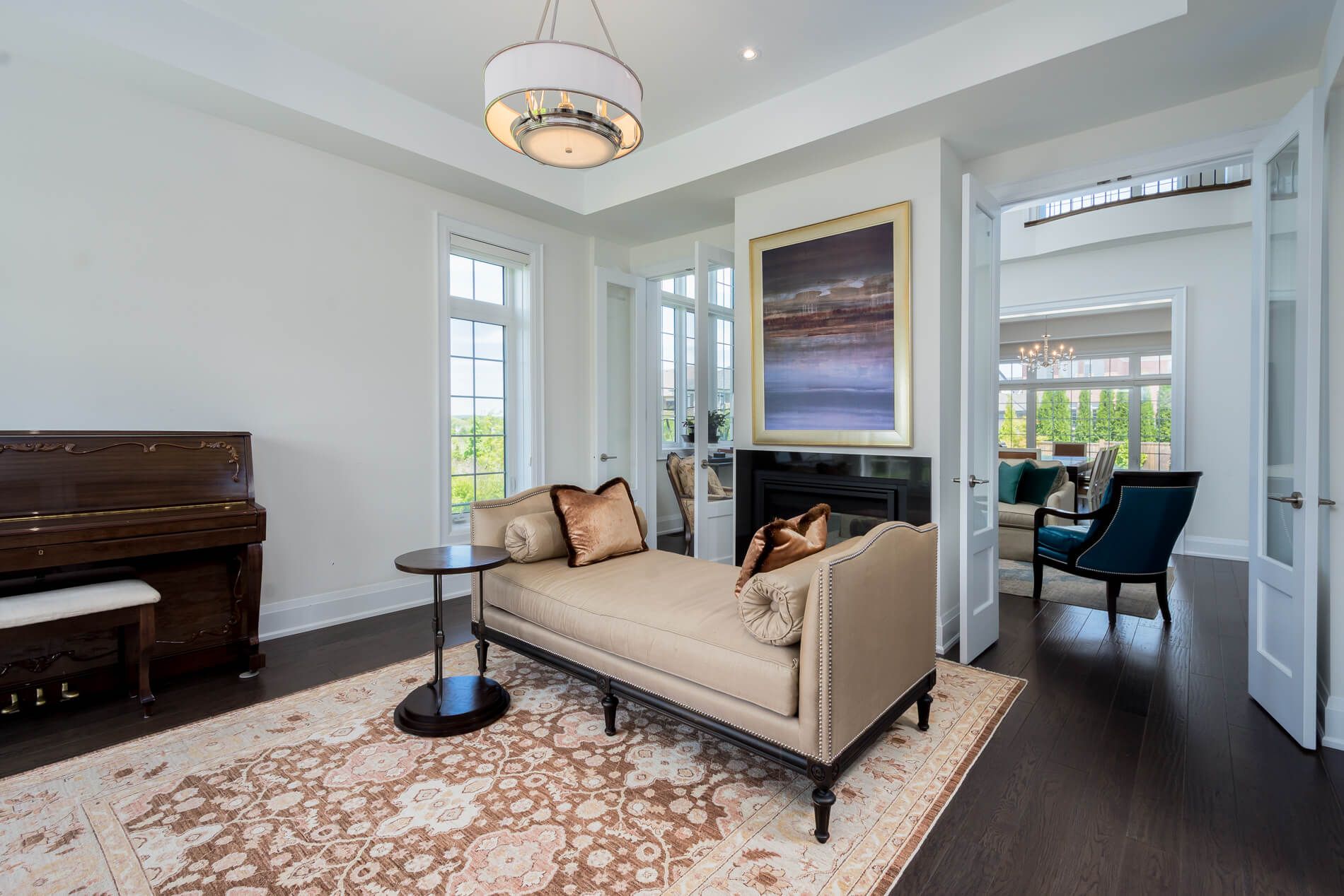 • Expansive family room with high ceilings and natural light for a welcoming atmosphere.