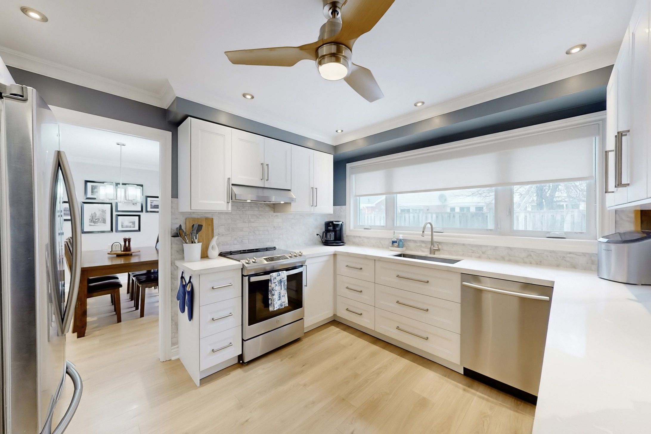 Must see! Welcome home to 49 mikado cres! This stunning 4-bedroom + 3-washroom detached masterpiece in brampton's coveted "m" section is the perfect blend of comfort and modern luxury-this is one you don't want to miss! The main level is bright and airy, featuring oversized windows that flood the space with natural light. You'll find wide-plank laminate floors, crown molding & pot lights throughout all principal rooms. At the heart of the home is a chef-inspired kitchen with quartz counters, stainless steel appliances, backsplash & a massive pantry. Relax by the wood-burning fireplace in the separate family room, offering direct access to a private, fenced backyard retreat complete with a deck, stone patio & gazebo. A stunning staircase with wainscoting & iron pickets leads to four spacious bedrooms, all featuring hardwood/parquet floors, crown molding & built-in closet organizers. The primary suite is a true escape with a walk-in closet & 3-piece ensuite. A beautifully updated 5-piece main bathroom completes the upper level. Additional highlights include a convenient main-floor laundry/mudroom with side-door access, plus direct access to the 2-car garage & 3-car driveway. The versatile, partially finished basement offers a massive rec space with endless possibilities-ideal for a potential second dwelling or custom personal use. Ideally located steps to professor's lake, chinguacousy park & top-rated schools. Minutes to bramalea city centre, hospitals, medical clinics, recreation centres & transit-offering the ultimate in convenience. Your family's next chapter starts here!