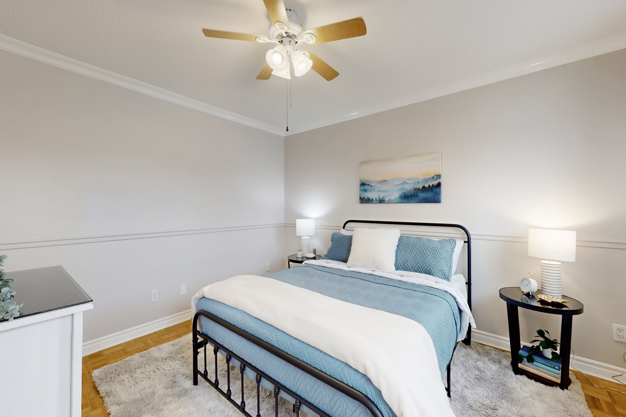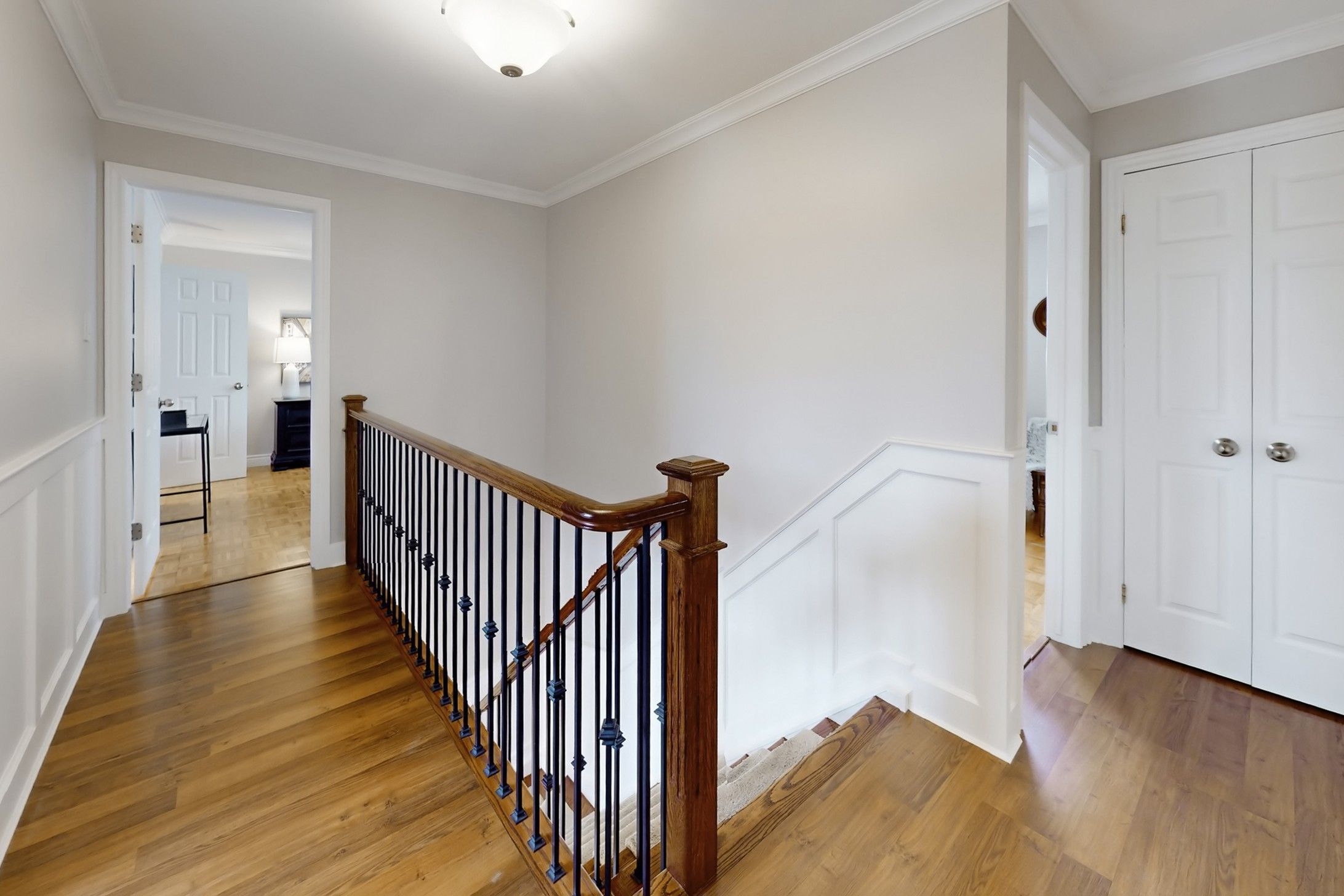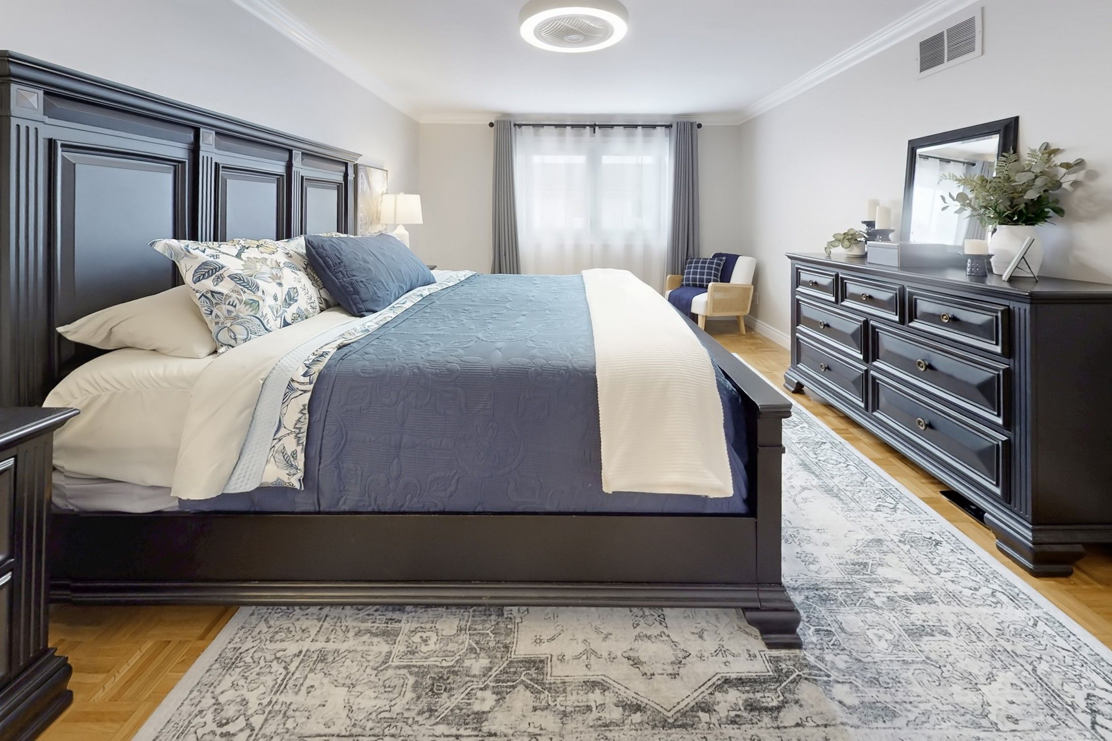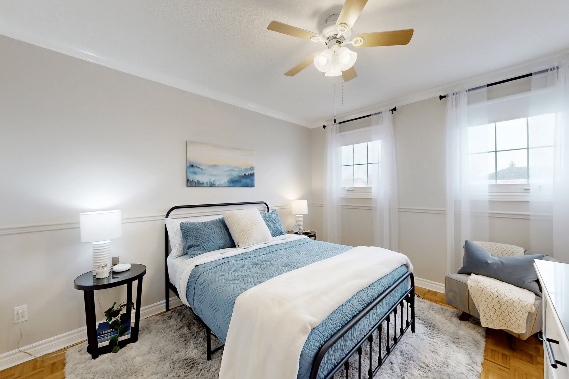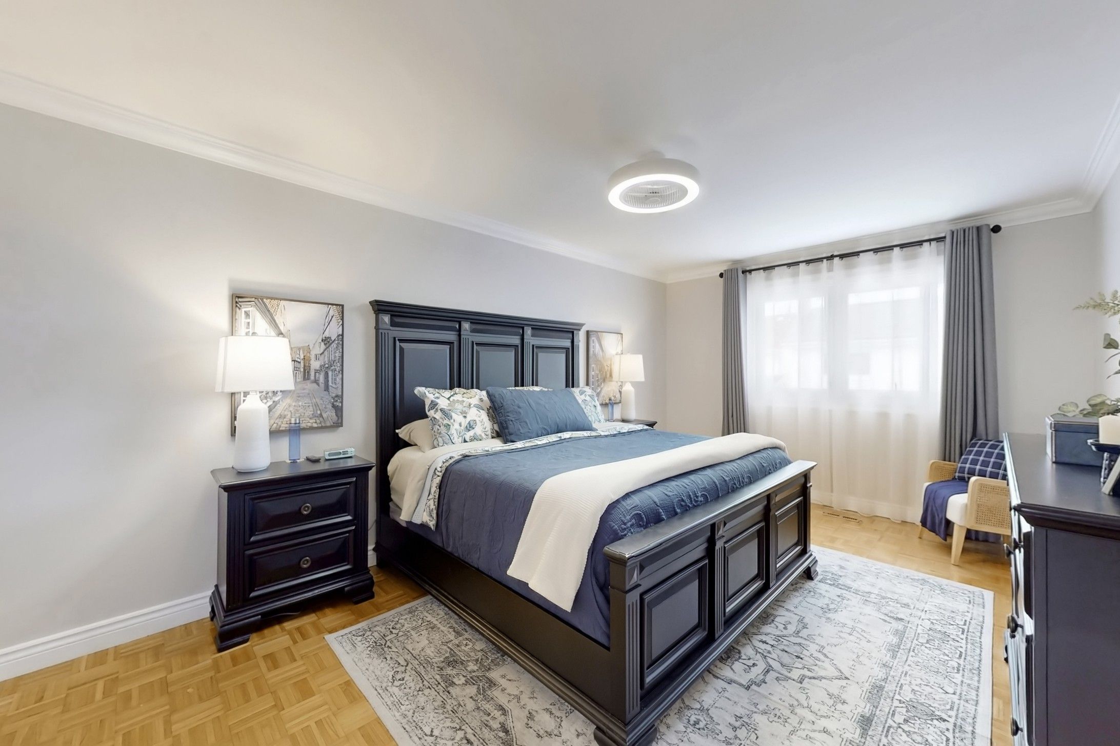 • Four spacious bedrooms with hardwood floors and built-in closet organizers.