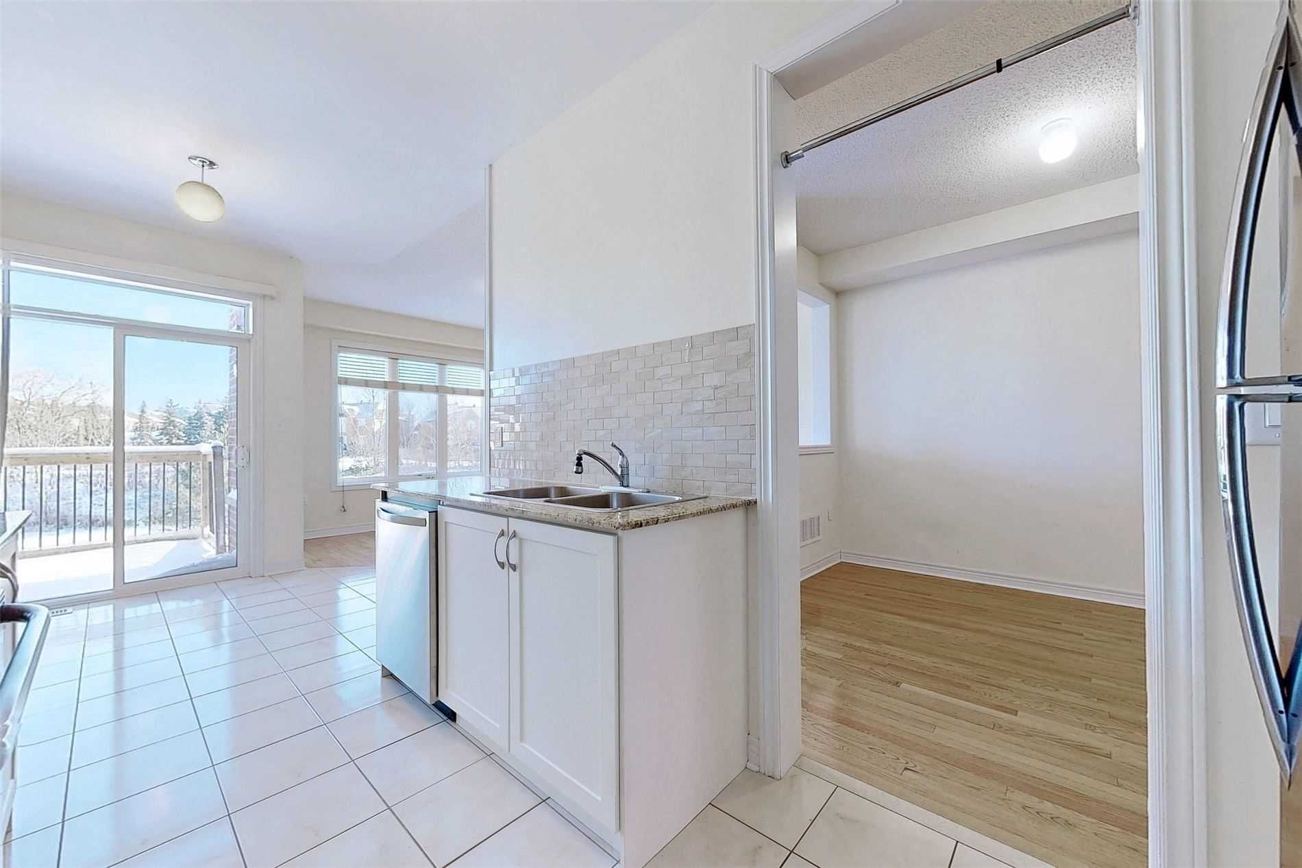 Immaculate, bright, and spacious 3-bedroom freehold townhouse located in the highly sought-after jefferson community. This exceptional 2-storey home features a convenient open-concept layout with 9-ft smooth ceilings on the main floor and elegant hardwood flooring throughout. The chef-inspired kitchen is equipped with stainless steel appliances, granite countertops, and a generous eat-in area-perfect for family living and entertaining. Sunlight fills the home, creating a warm and inviting atmosphere. The spacious primary bedroom features a luxurious 5-piece ensuite and a walk-in closet. Additional highlights include second-floor laundry and a walk-out basement overlooking a beautiful park and pond. Enjoy a private, fenced backyard with a scenic pond view, ideal for relaxing in a peaceful setting. Situated on a quiet street, this home is just steps to bathurst street, top-rated schools, parks, and all essential amenities. Ideally located steps to bathurst, parks.