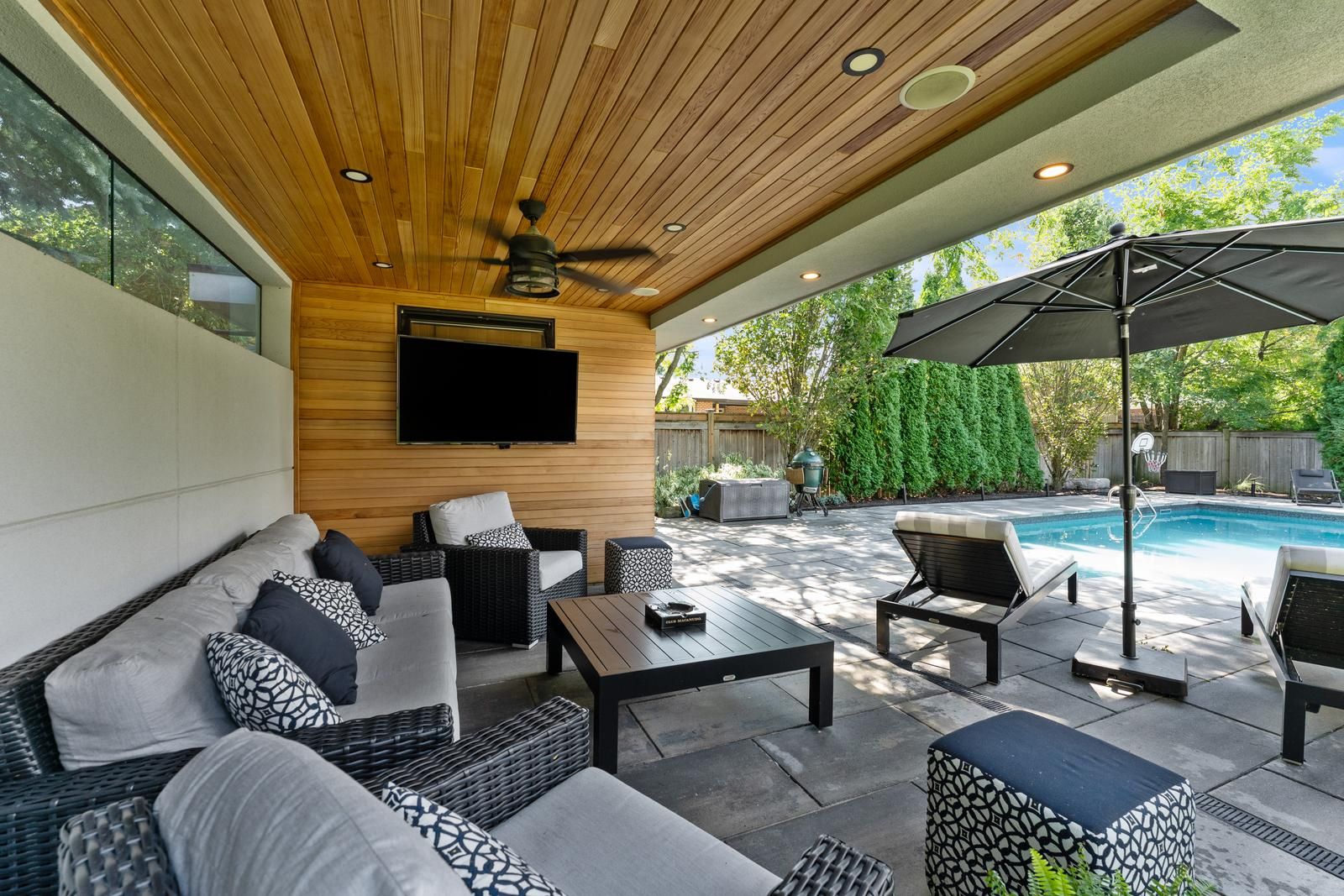 Welcome home to 49 norman drive! This modern architectural masterpiece presents a rare and unique offering blending refined luxury and clean contemporary lines in the heart of king city. The custom front opens to a bright, open concept layout featuring large custom windows, functional sightlines and oak hardwood flooring thru-out the living space. The reimagined chefs kitchen designed by muti kitchens is an entertainers delight boasting sleek custom cabinetry, a large center island with honed granite counters and a cascading waterfall. Complimented further by top-of-the-line miele appliances and an extended breakfast table area. The spacious dining area is the perfect setting for hosting dinner soirees and seamlessly flows into the outdoor loggia area, where guests can enjoy after-dinner cocktails overlooking the gorgeous backyard oasis. The large, bright living room features a beautiful, vaulted ceiling and a large, picturesque window offering stunning views of the backyard oasis. A two-sided gas fireplace adds warmth & coziness for evening relaxation. The stunning backyard oasis provides the perfect backdrop for summer entertaining with family & friends, featuring a 15x28ft inground saltwater pool and a cedar-finished cabana outfitted with a 4pc bathroom & kitchenette. The manicured landscaped grounds and loggia area offer a serene setting for al fresco dining. The primary bedroom includes access to a spa-inspired ensuite with heated floors, porcelain slab walls, floating vanities, and a zero-entry shower. The lower level provides additional living space with a large recreational room, an office and a 4-pc ensuite. Located in close proximity to numerous amenities with easy access to hwy 400 & the king city go station. Steps to beautiful restaurants/shops and top-rated schools (villanova, country day school). King valley & kings riding golf clubs & the new zancor recreational center. Your refined luxury lifestyle awaits at 49 norman dr in king city!