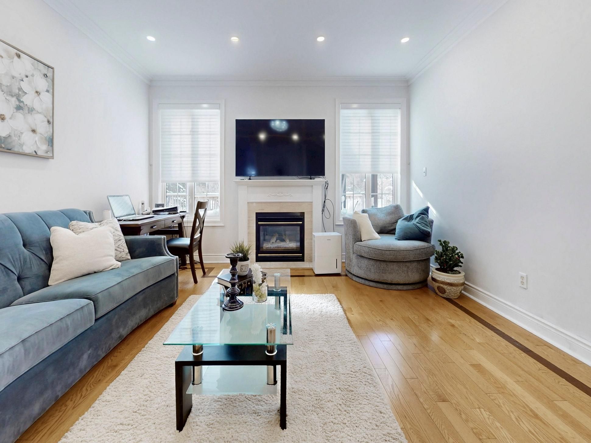 • Open layout with a formal dining room and cozy living room with fireplace.