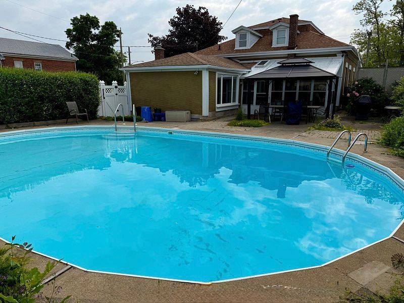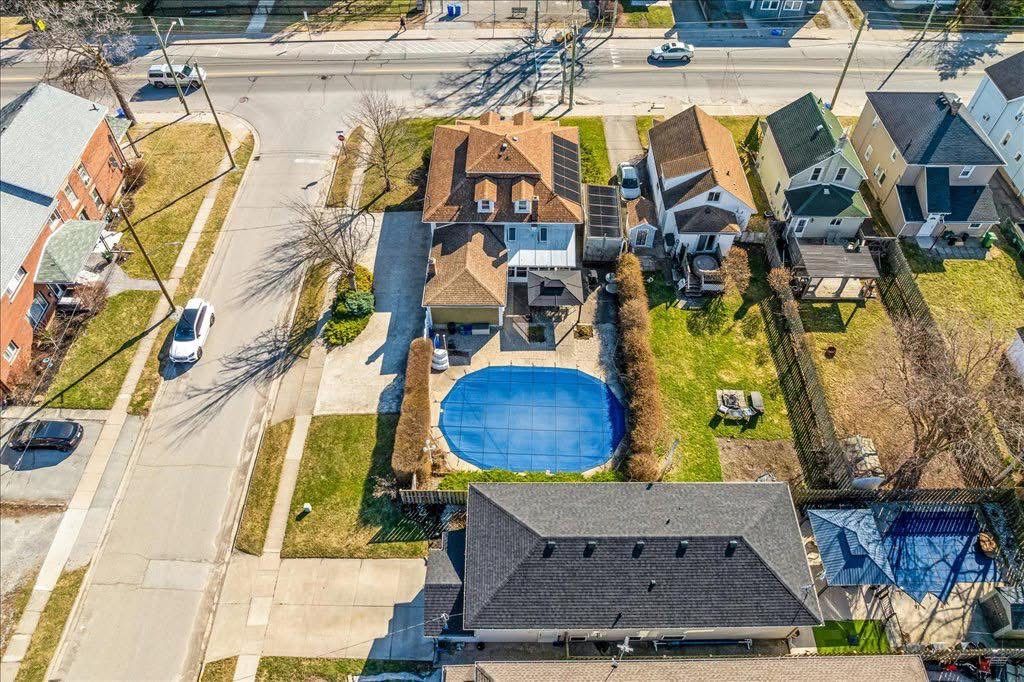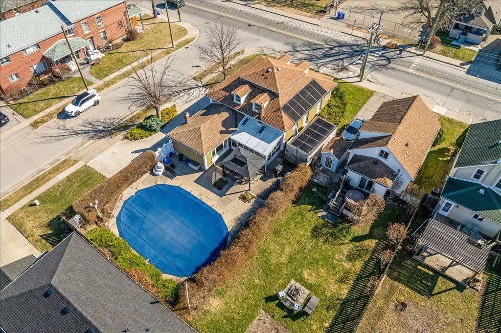 Charming 4 bedroom home in the heart of thorold! This spacious 2547 sq/ft, 1. 5 storey home offers the perfect blend of history, character, comfort and modern conveniences. Step inside to find a cozy living room with an electric fireplace (with the original wood fireplace still intact), a main floor bedroom and laundry room as well as a 4 piece bath. The separate dining room and family room provide plenty of space for entertaining, while the 3 season sunroom and enclosed front porch are perfect for relaxing year-round. On the second level you will find 3 additional generously sized bedrooms with ample storage as well as an another 4 piece bath. Step outside to your 24 by 38 foot inground pool and gazebo area, complete with solar panels for efficient heating and a new pool pump. The fully fenced backyard provides privacy and plenty of space for outdoor enjoyment. Additional features include a brand new high efficiency gas furnace, new central air unit, 200 amp service, basement workshop area, central vacuum, and plenty of storage throughout. Conveniently located close to schools, shopping and a short walk to historic downtown thorold and all amenities, this home truly has it all. Don't miss out, schedule your showing today!