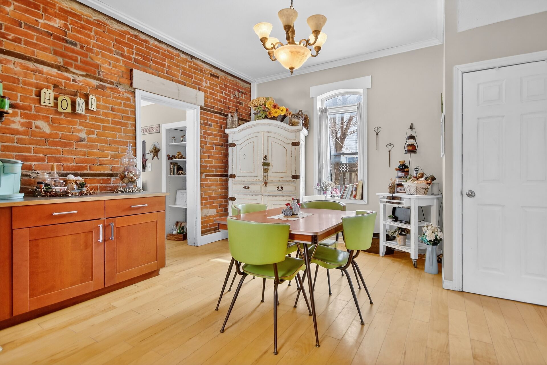 • Functional kitchen with exposed brick, great for entertaining friends and family.