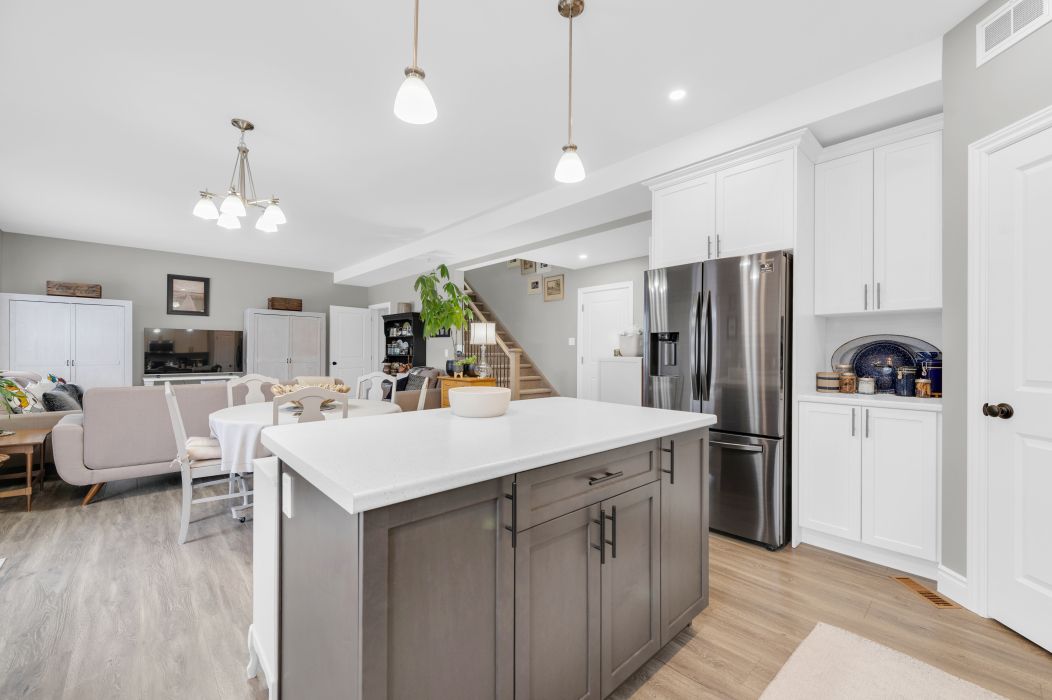 • Expansive eat-in kitchen with a center island for family gatherings.