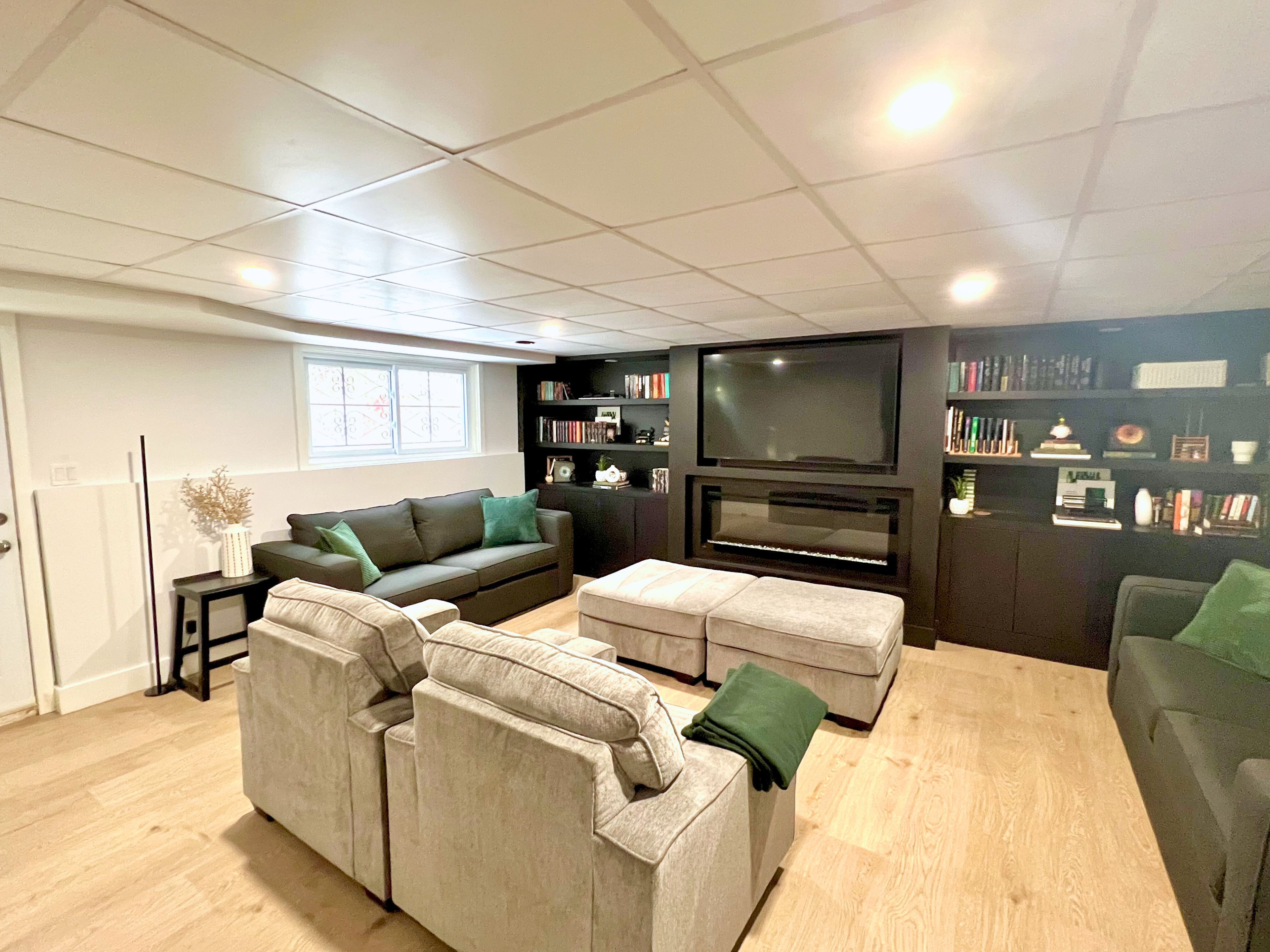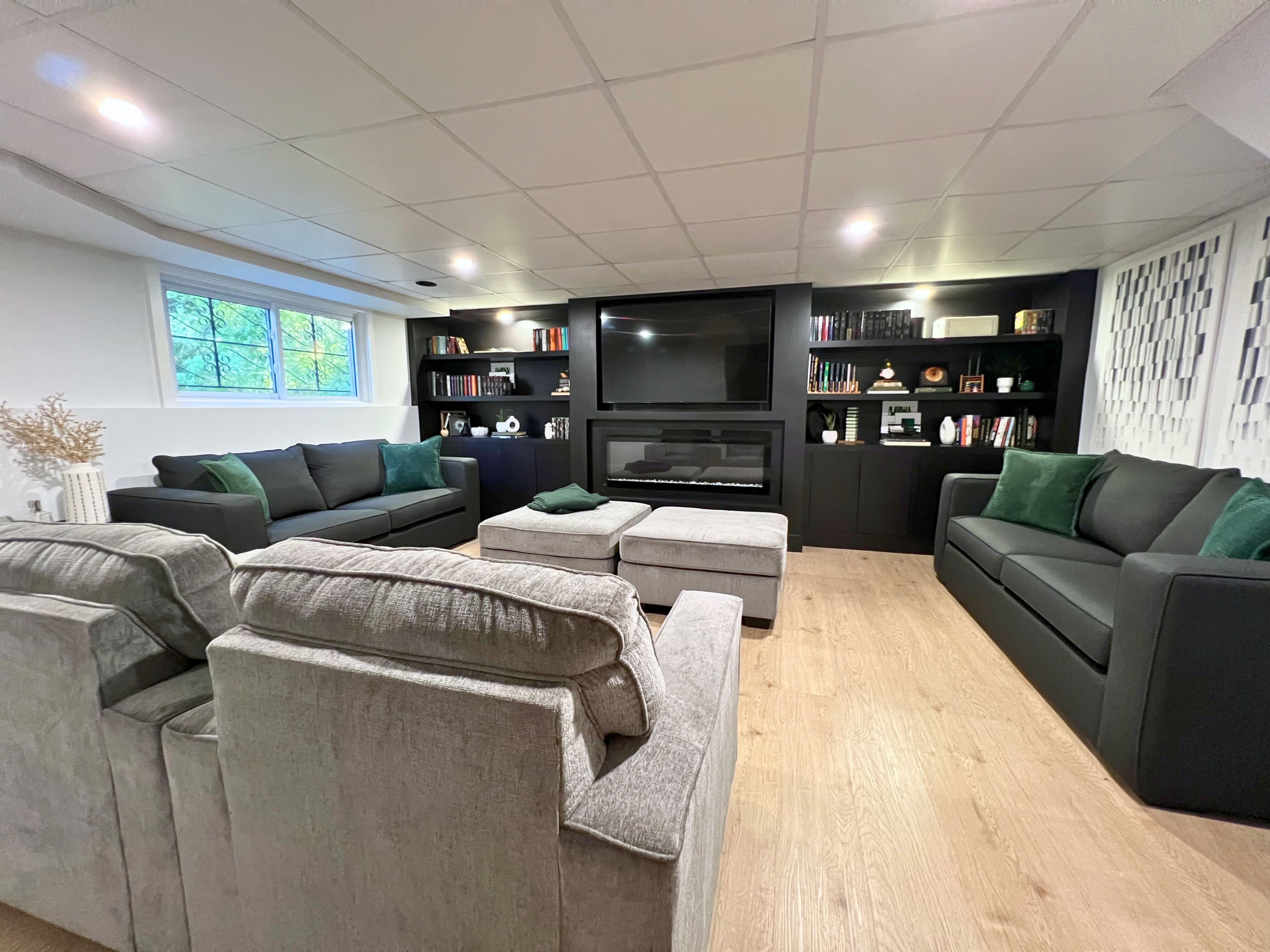 • Cozy lower-level den perfect for movie nights or home office.