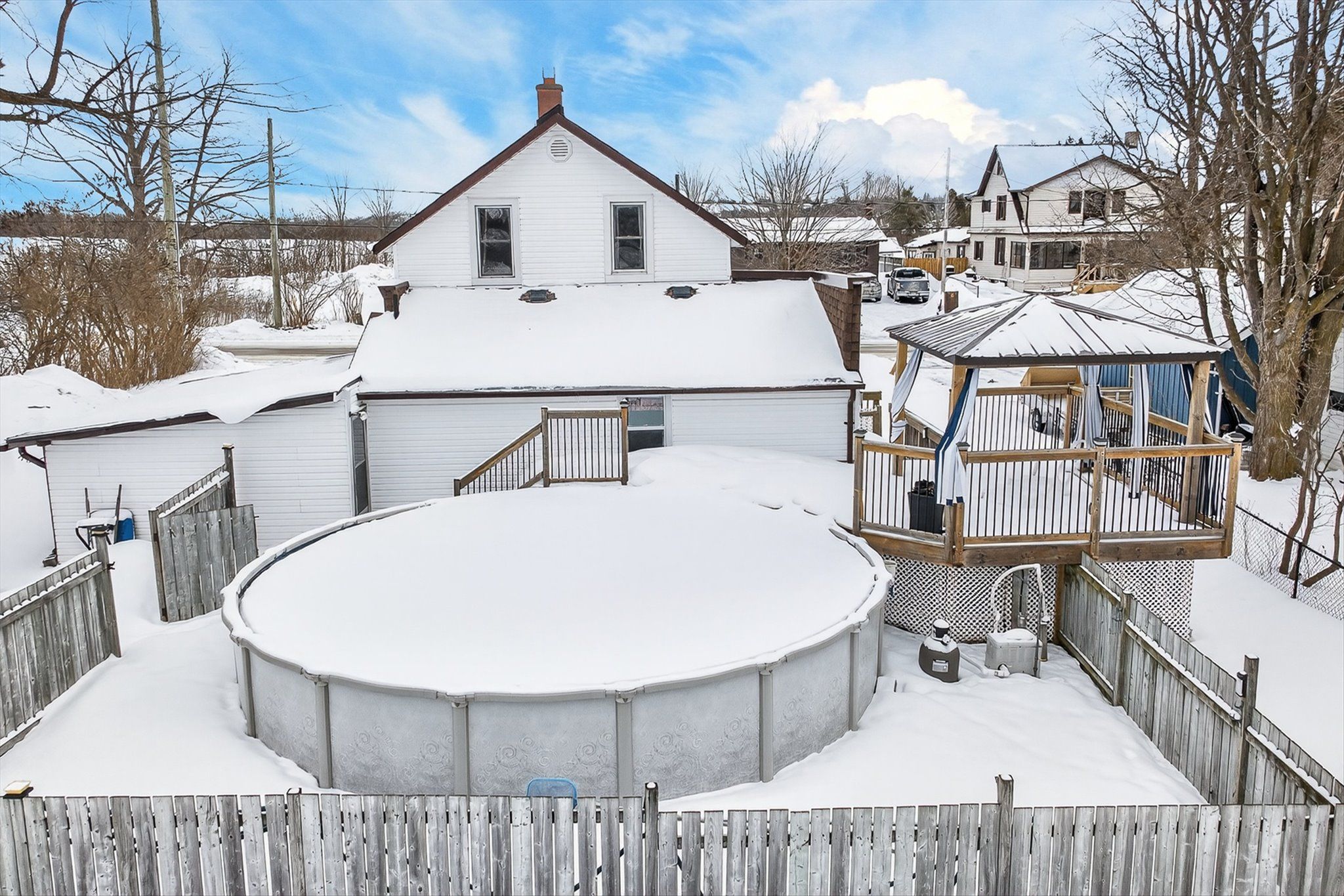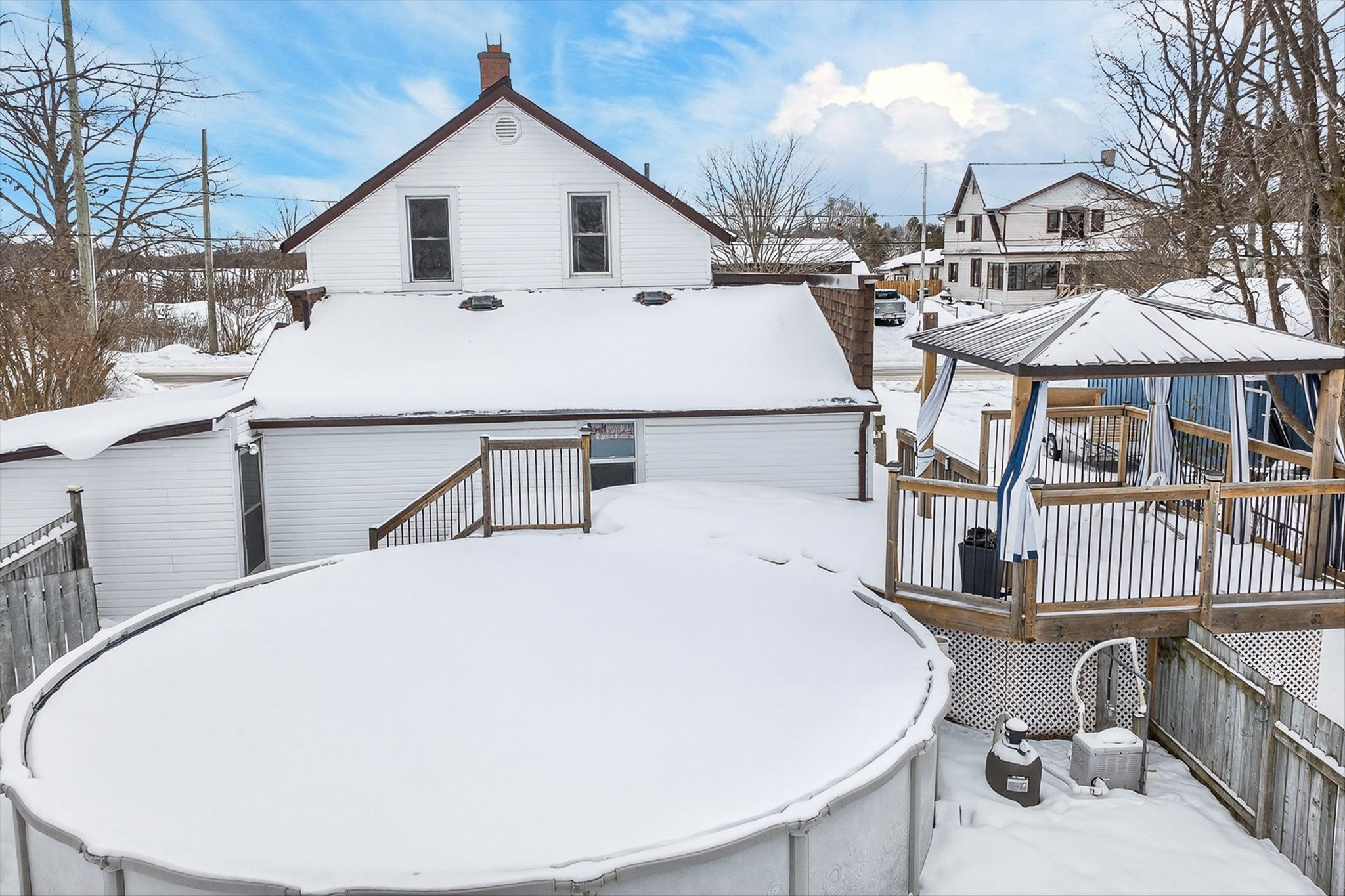 This extremely well cared for 1. 5 storey home clearly reflects pride of ownership throughout. The main floor features a mudroom, a 3 piece bathroom, convenient laundry closet, and a cozy family room complete with a natural gas fireplace and door to the deck with gazebo and private backyard. Enjoy summer days in the above ground heated pool, perfect for entertaining family and friends. Just off the living room is a recently renovated kitchen and dining area combination offering abundant cabinetry, quartz countertops, and stainless steel appliances. The home also boasts a generous sized living room and a comfortable sunroom at the front of the house, providing bright and inviting living spaces. Upstairs, you will find 3 good sized bedrooms, a storage room, and an updated 3 piece bathroom. Additional features include natural gas forced air heating, water softener, municipal sewers, carport, and paved driveway. Ideally located down the road from the amenities of omemee, including restaurants, café, grocery store, convenience stores, gym, pharmacy, lcbo, post office, library, churches, legion, public school, and other shops. Enjoy omemee beach park, currently undergoing revitalization, and take advantage of the public boat launch just two minutes away for access to miles of boating along the trent-severn waterway. A move in ready home in a welcoming community, offering comfort, updates, and lifestyle all in one. Book your private viewing today and see for yourself why this property stands out.