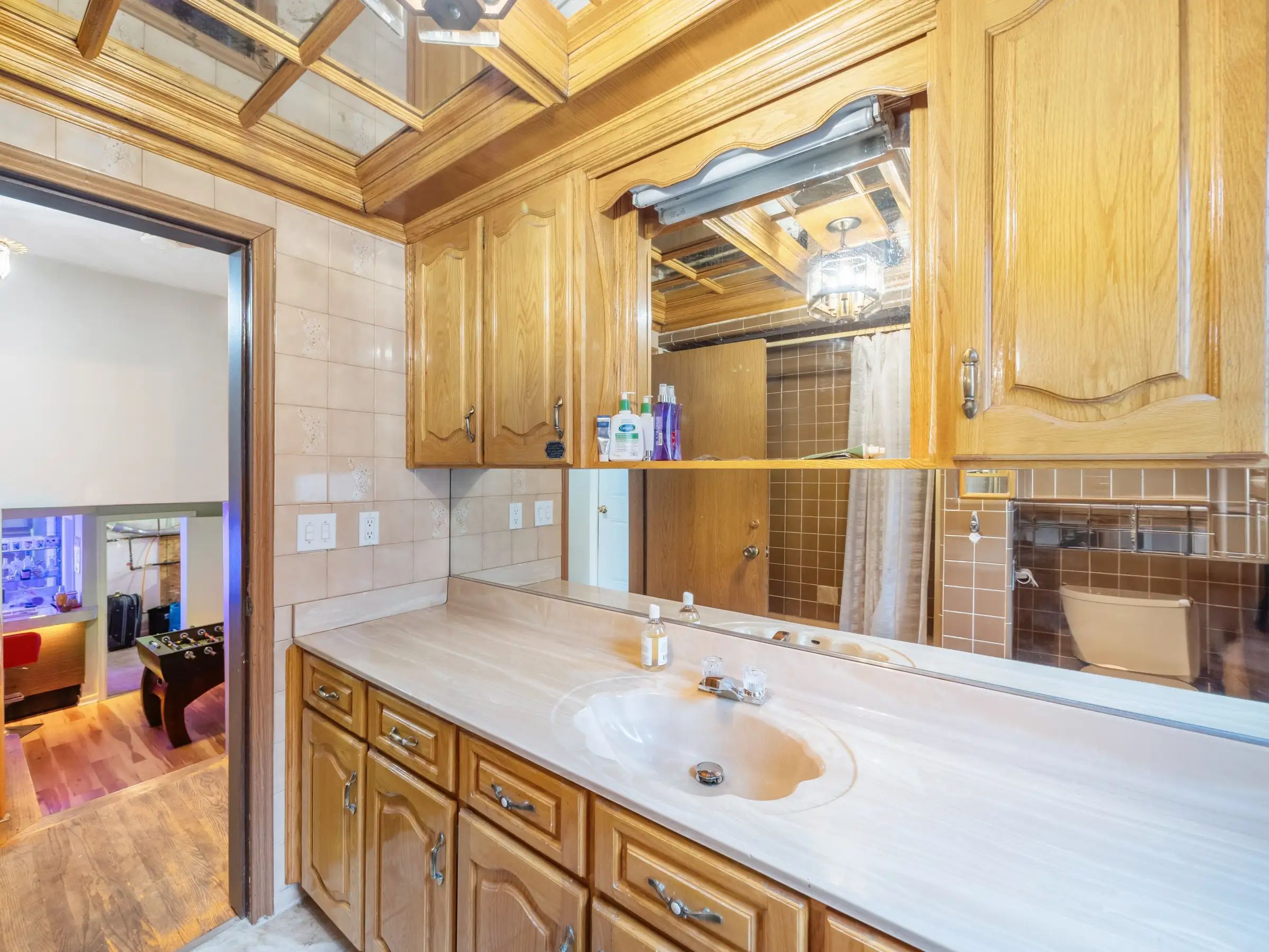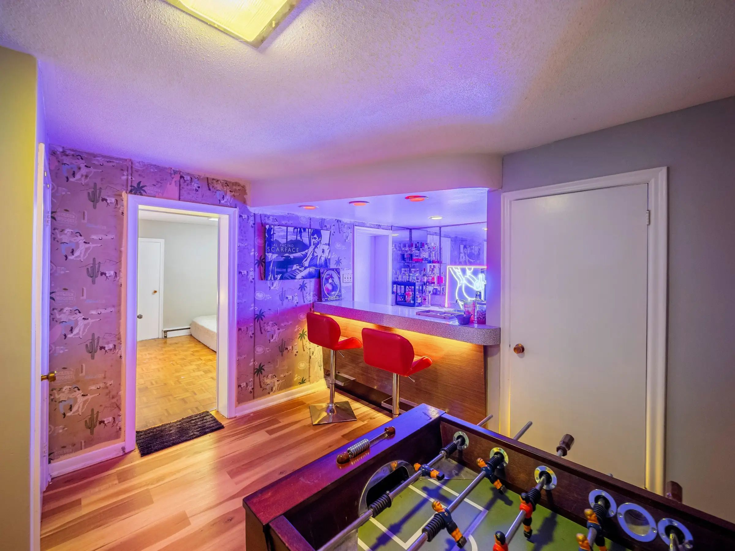 • Large basement with a 4th bedroom, laundry, and recreation room for entertainment.