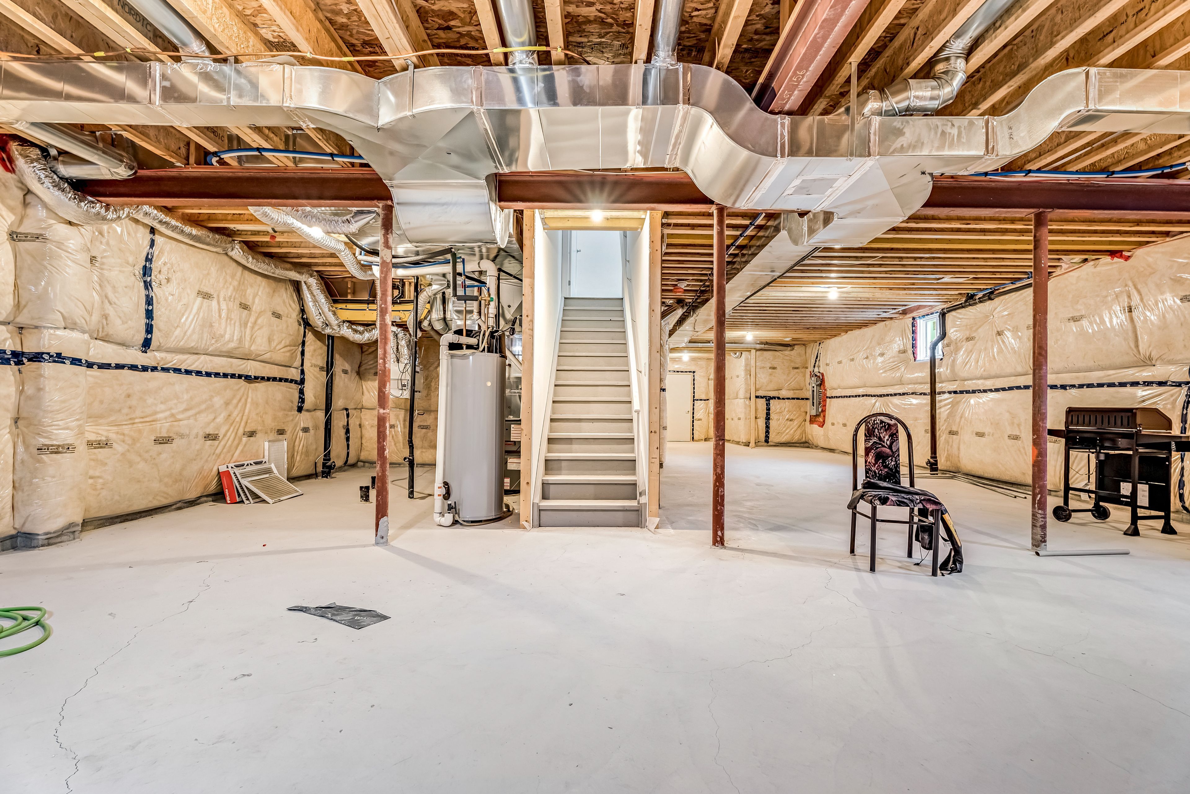 • Full basement with high ceilings, ready for customization.