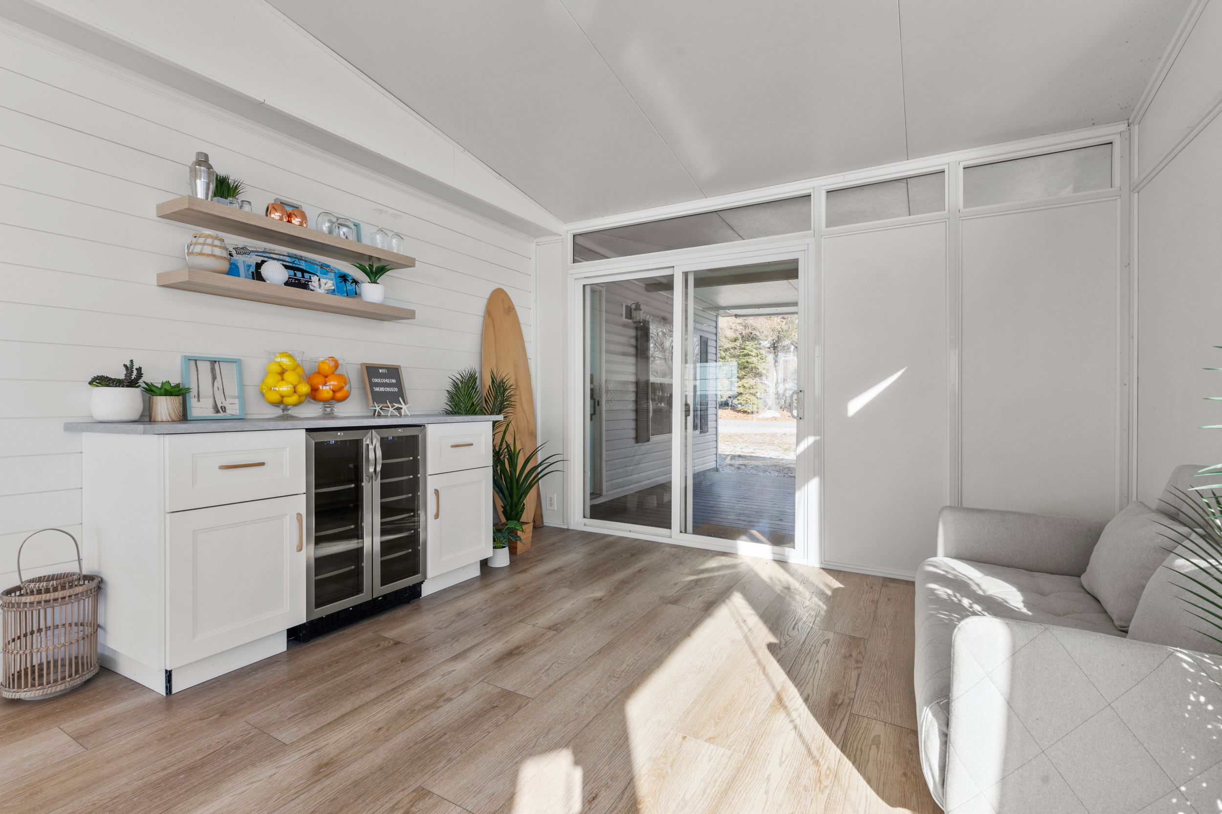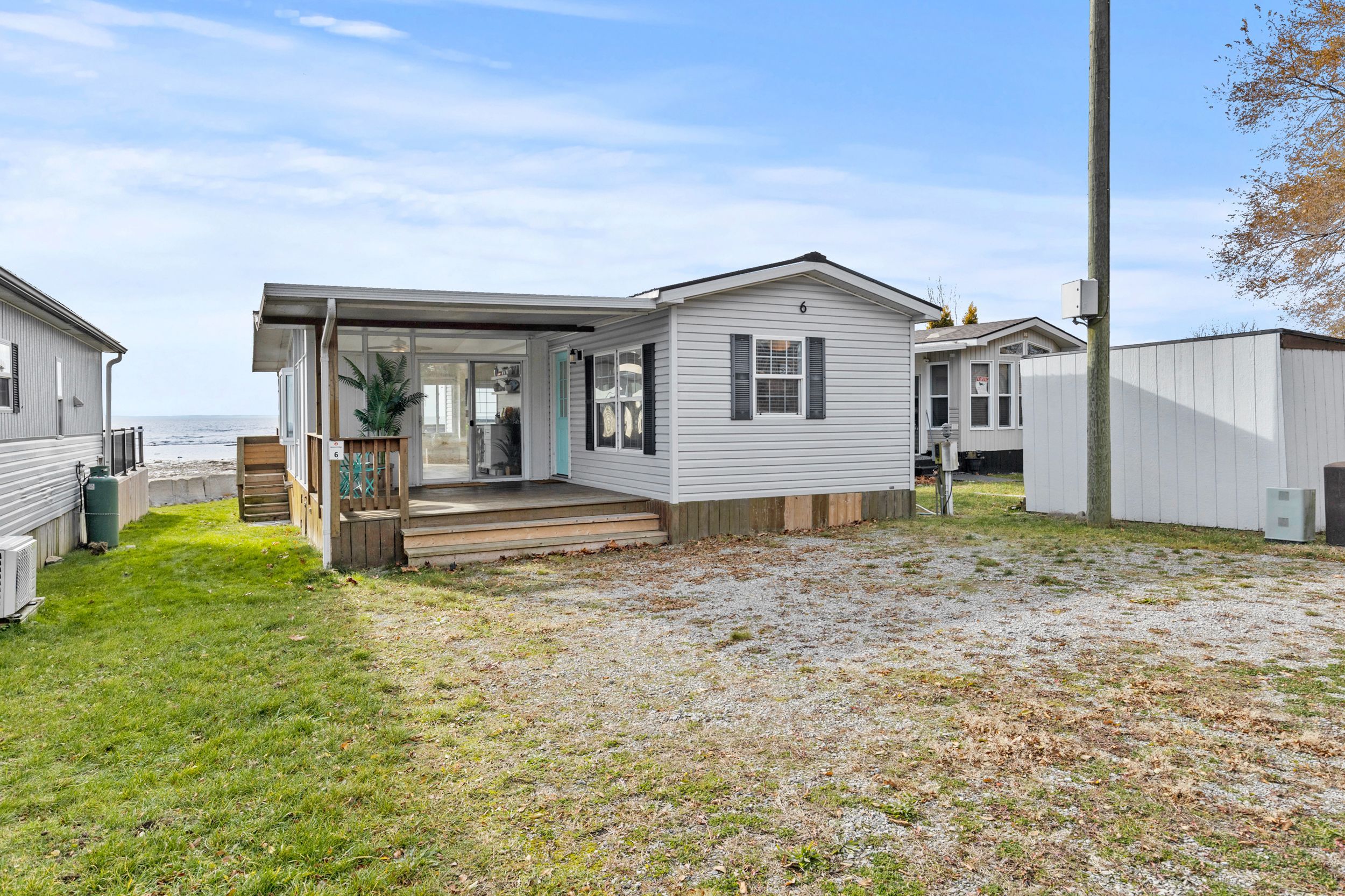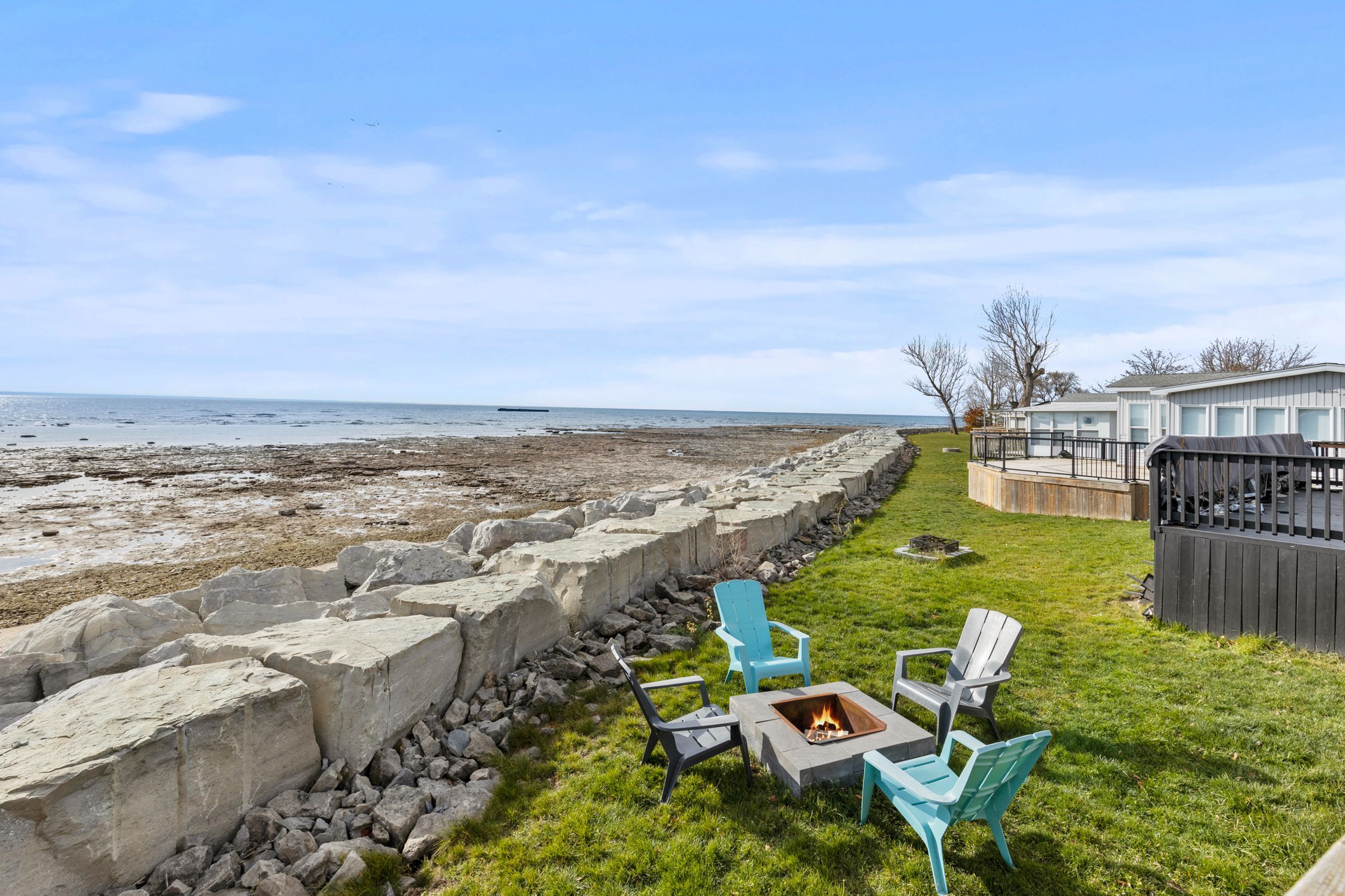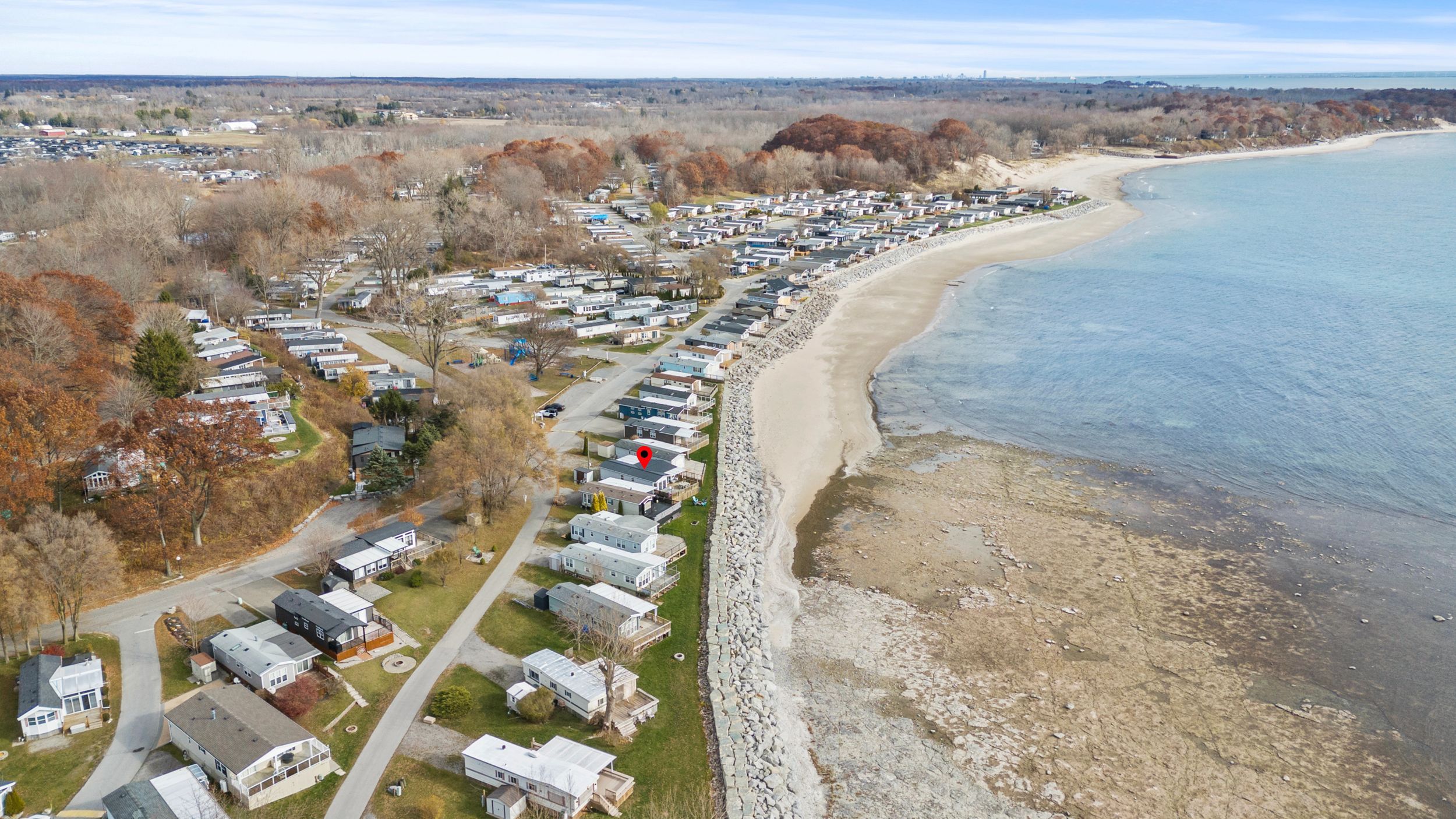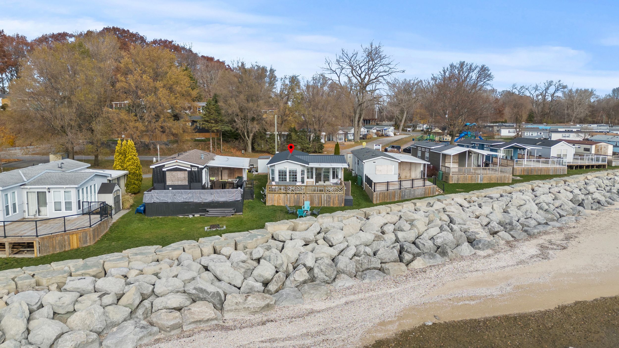 Welcome to 6 water's edge! This beautifully renovated lakefront cottage is truly move-in ready and perfect for anyone looking to enjoy effortless waterfront living. Amazing income potential of $3000+ per week! Offering 2 bedrooms, a fully updated bathroom, and a bright, open-concept kitchen/living/dining area, it's the kind of place where the whole family will love spending time together. The kitchen features an island, stainless-steel appliances, a modern hood fan, and a sleek black sink and faucet. The dining area-complete with a bar fridge-lets you enjoy meals al fresco by the lake or inside in the comfort of a bright, airy space. The living room is finished with stylish shiplap and a floating wood mantle for a relaxed, modern cottage vibe. After a sun-soaked day on the beautiful beach just steps away, unwind under the stars by the stone-paver lakeside fire pit, or take in the expansive water views from the extended back deck. The large covered front deck sets the tone the moment you arrive-welcoming, comfortable, and built for making memories. Located just 90 minutes from toronto and 20 minutes from niagara falls, sherkston shores spans 560 acres of stunning grounds with 4 km of sandy beachfront, giving you endless opportunities to explore, relax, and enjoy the outdoors. With features like a furnished interior, mini-split heating/cooling system, open floor plan, walk-in shower, washer/dryer hookups, kitchen island, and of course the premium waterfront site, resort life at the shores is truly calling.