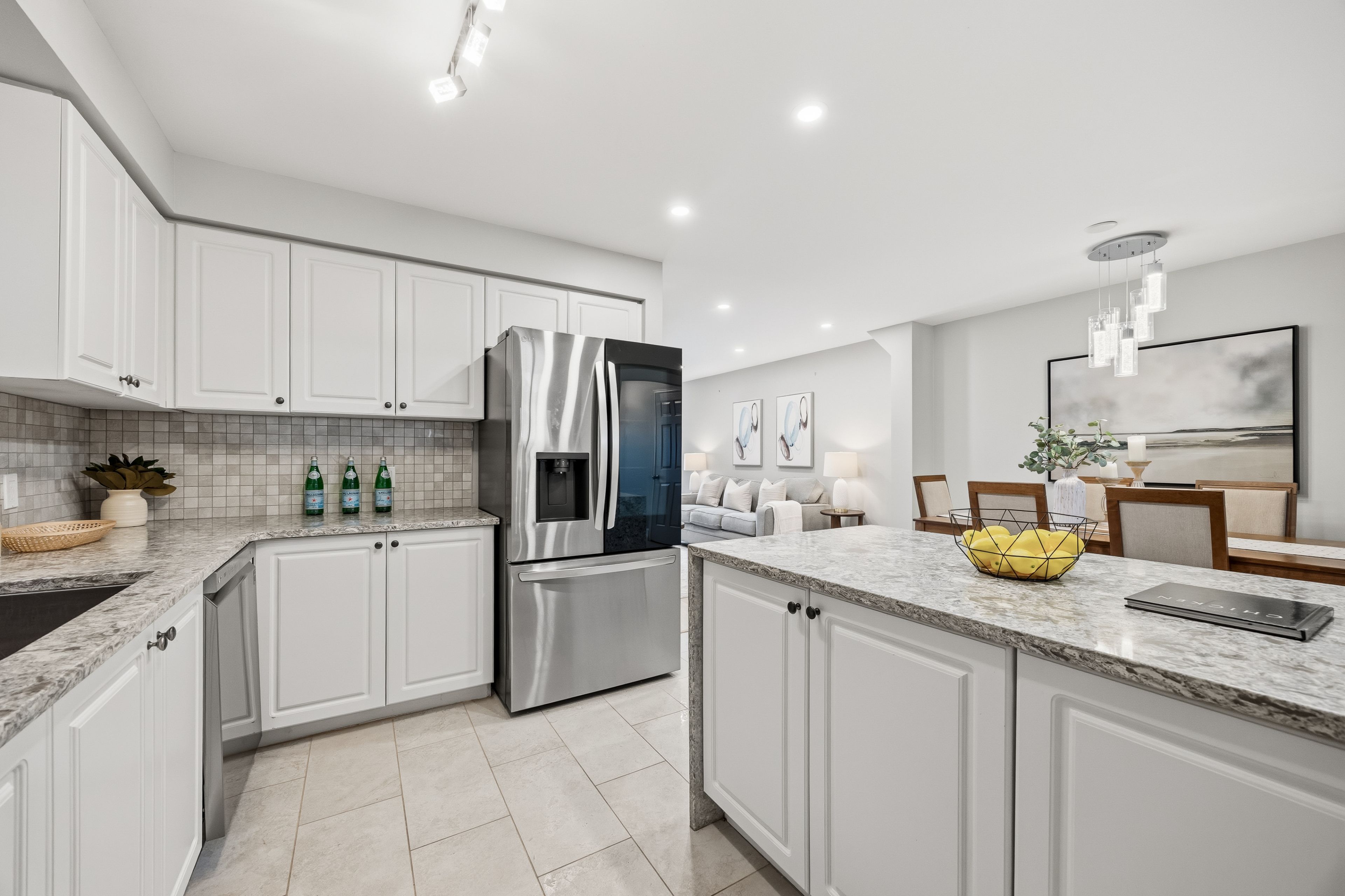 • Granite and quartz countertops with high-end appliances in the kitchen.