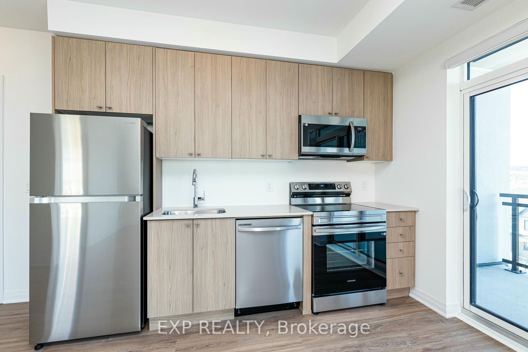 • Modern kitchen featuring quartz countertops and stainless steel appliances.